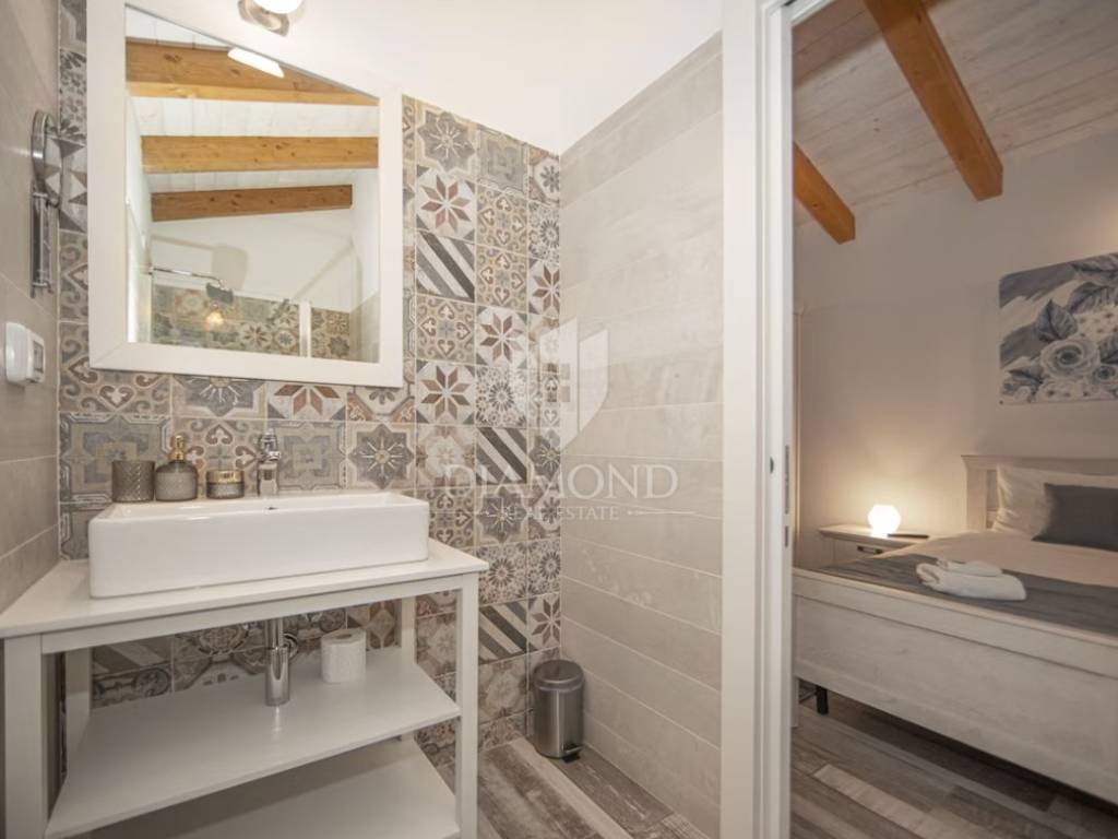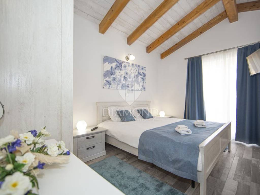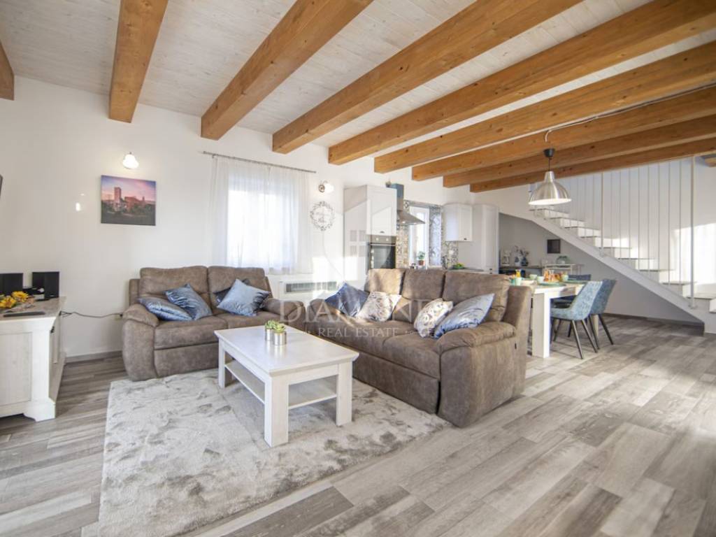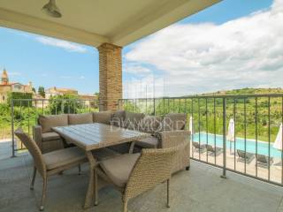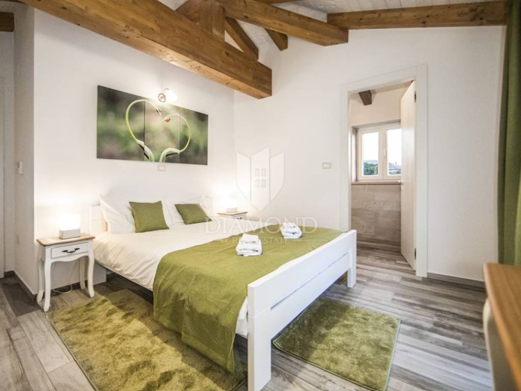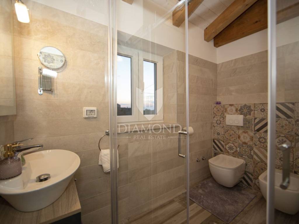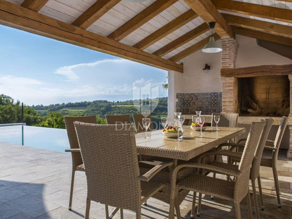 L'immobile viene venduto in fase chiavi in mano (pavimenti finiti, servizi igienici, senza mobili). La villa si trova nell'incantevole cittadina istriana di Momiano, e nelle immediate vicinanze della proprietà si trovano rinomati ristoranti, cantine, passeggiate, piste ciclabili, negozi e vari altri servizi. Considerando la posizione attraente e tranquilla con una bella vista, la proprietà è ideale per vacanze, turismo, ma anche per uso abitativo.