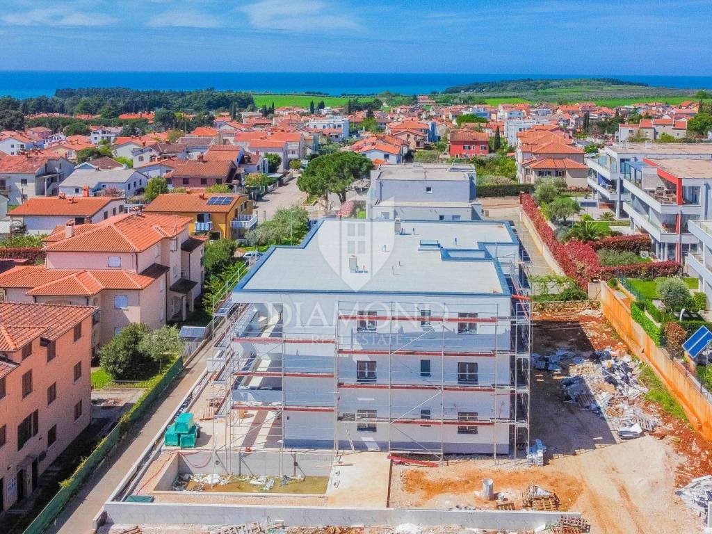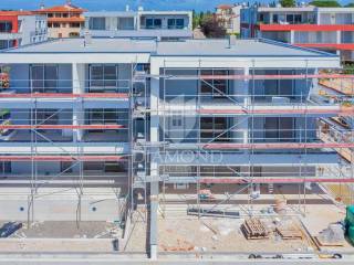 L'appartamento si trova al 1° piano di un moderno edificio nuovo. La superficie totale dell'appartamento è di 91,81 m2. È composto da un soggiorno con cucina a vista e sala da pranzo, 2 camere da letto con accesso a una terrazza in comune e una camera da letto ha il proprio guardaroba, bagno, toilette per gli ospiti e corridoio. Dal soggiorno si accede a un'altra terrazza coperta con vista sul mare. L'appartamento ha 1 posto auto di fronte all'edificio. L'appartamento è costruito con materiali di qualità con riscaldamento elettrico a pavimento e aria condizionata. La carpenteria è in PVC, i pavimenti sono in ceramica e laminato e l'isolamento è in polistirolo espanso da 10 cm.