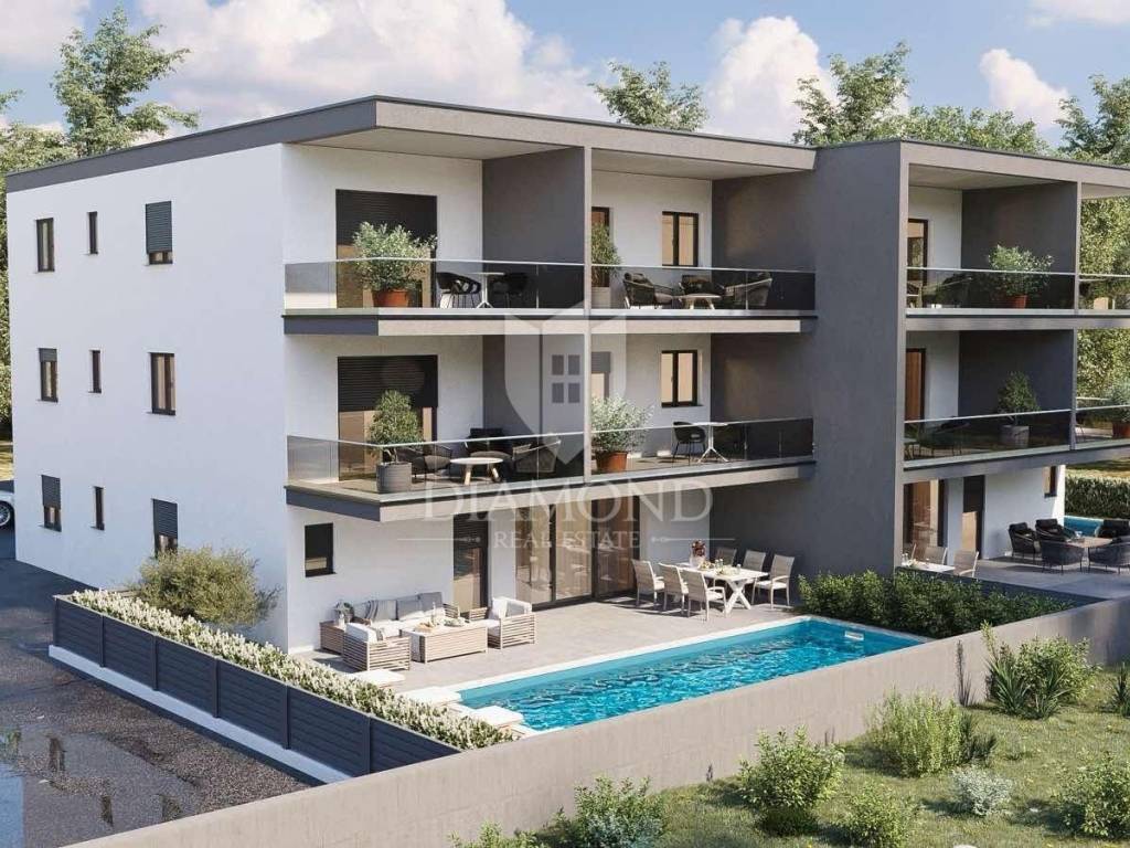 Questo moderno appartamento con vista mare si trova in un'ottima posizione, a soli 750 metri dal mare e dal centro di Novigrad!
