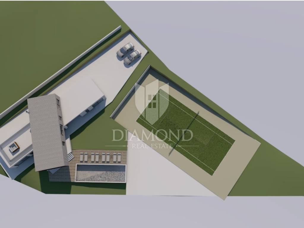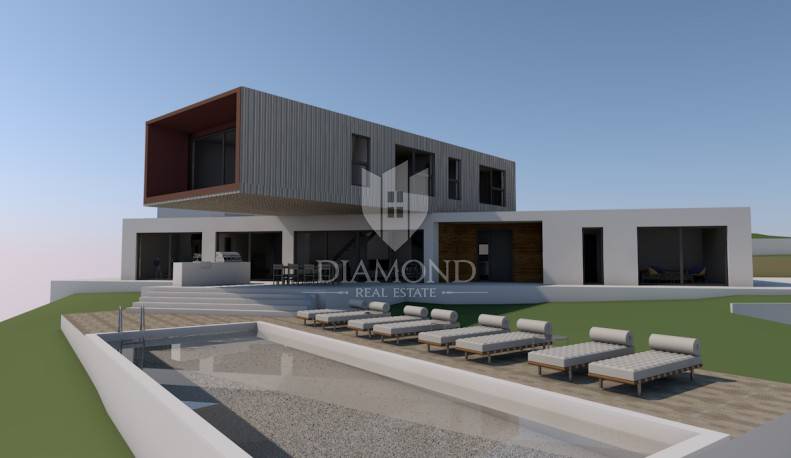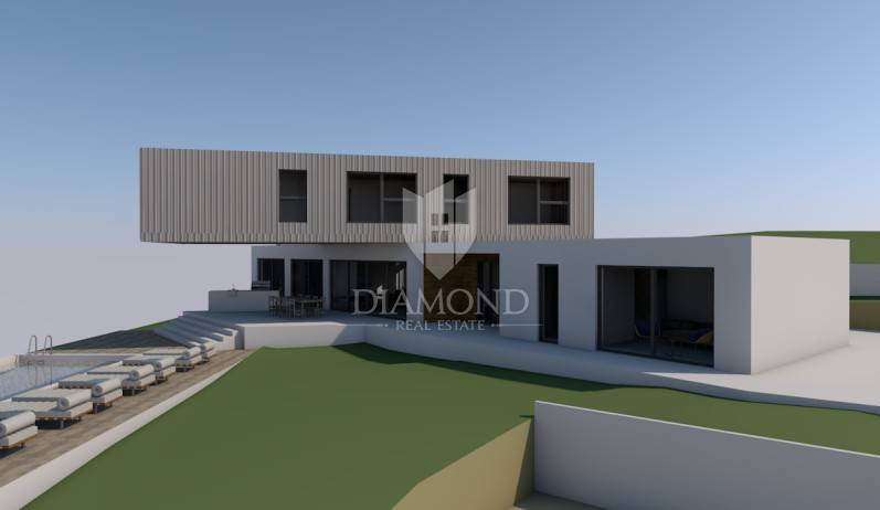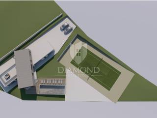 L'area del terreno edificabile è di 2122 m2. Lo scopo del terreno è residenziale. L'elettricità è sulla terra e l'acqua è vicina. C'è una strada di accesso paesaggistica e asfaltata al terreno stesso. Il terreno offre una vista aperta sul bellissimo paesaggio istriano. Insieme al terreno è in vendita anche un progetto concettuale per la costruzione di una villa moderna con piscina e campo da tennis.