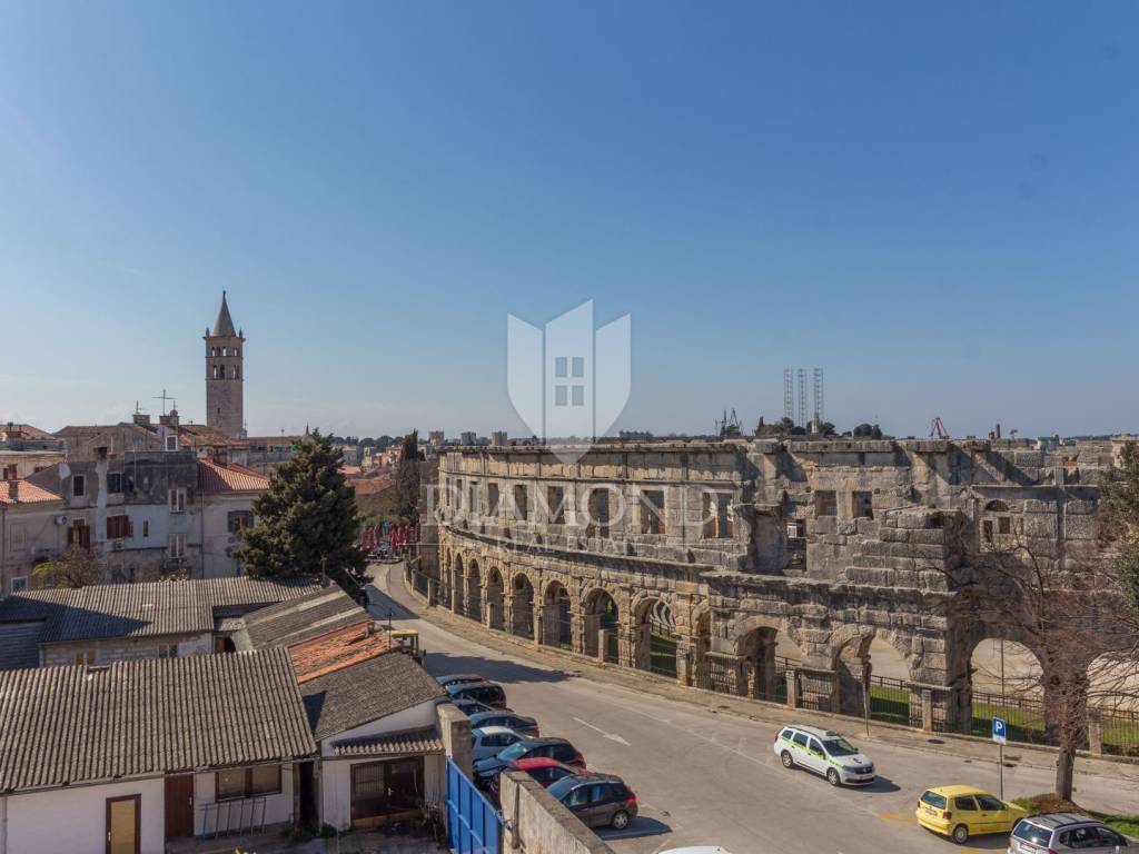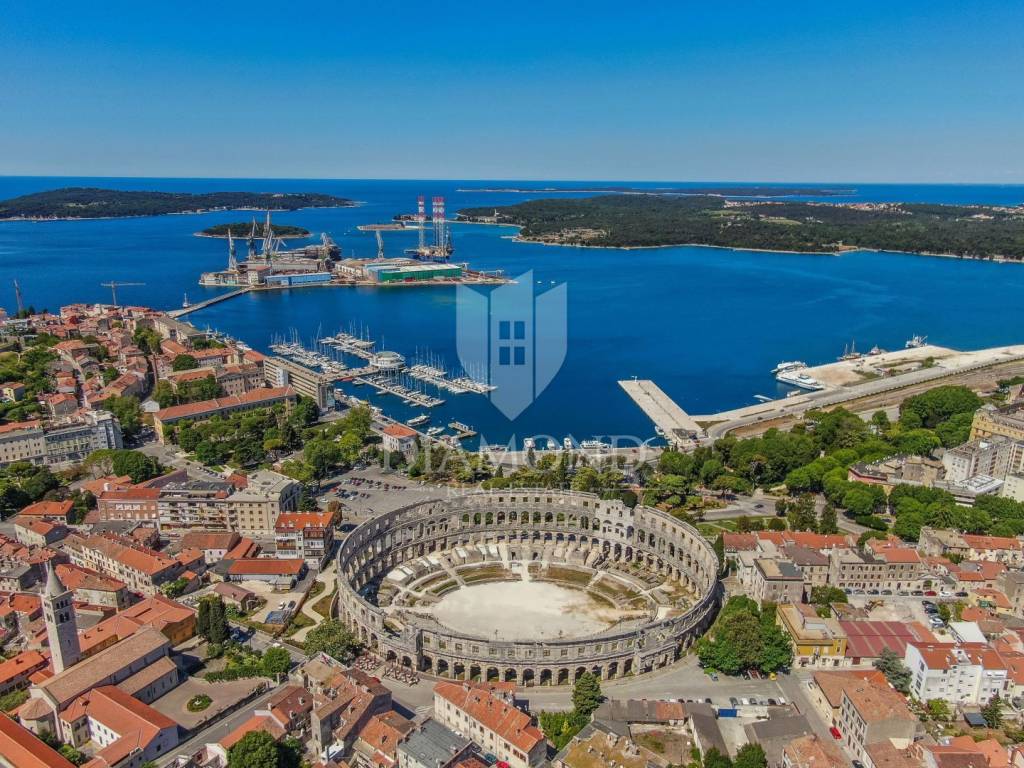 Quando si descrive Pola, ricca di attrazioni turistiche e storiche, non viene mai omesso il suo magnifico anfiteatro. Proprio vicino all'Anfiteatro è in vendita un appartamento spazioso, ideale per convertirlo in due appartamenti e fare turismo. Il mare dista meno di 400 metri, mentre tutti gli altri servizi sono raggiungibili in pochi minuti a piedi.