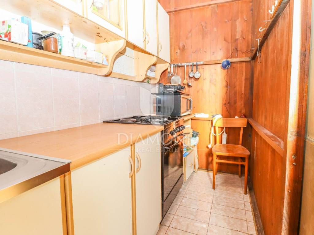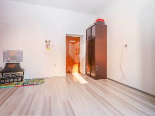 L'appartamento si trova al primo piano di un edificio più antico, misura circa 100 mq. Per la sua disposizione e le sue dimensioni, ha un grande potenziale per la conversione in due appartamenti in affitto. L'appartamento è composto da due soggiorni con cucina, tre camere da letto di cui due ristrutturate, un bagno ed un terrazzo che il futuro proprietario potrà sistemare a suo piacimento. Il tetto è stato ristrutturato lo scorso anno. L'appartamento ha anche un ripostiglio e 1/3 del cortile. C'è un parcheggio pubblico di fronte all'edificio.