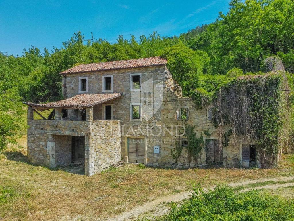 In realtà sono 2 case collegate tra loro. Una casa si estende al piano terra, al 1° piano e al 2° piano, mentre l'altra si estende al piano terra e al 1° piano. Le case richiedono un adattamento completo. La casa offre una splendida vista sul bellissimo paesaggio verde istriano.