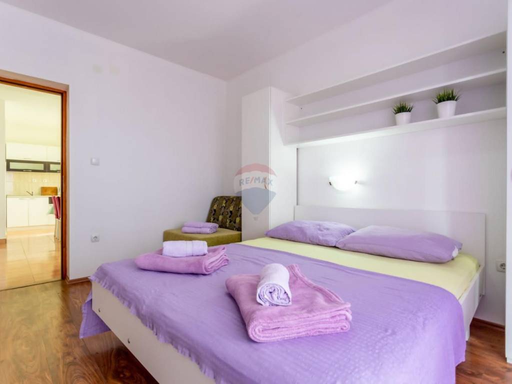 La casa si trova in una zona tranquilla e ha una bellissima vista sul mare.