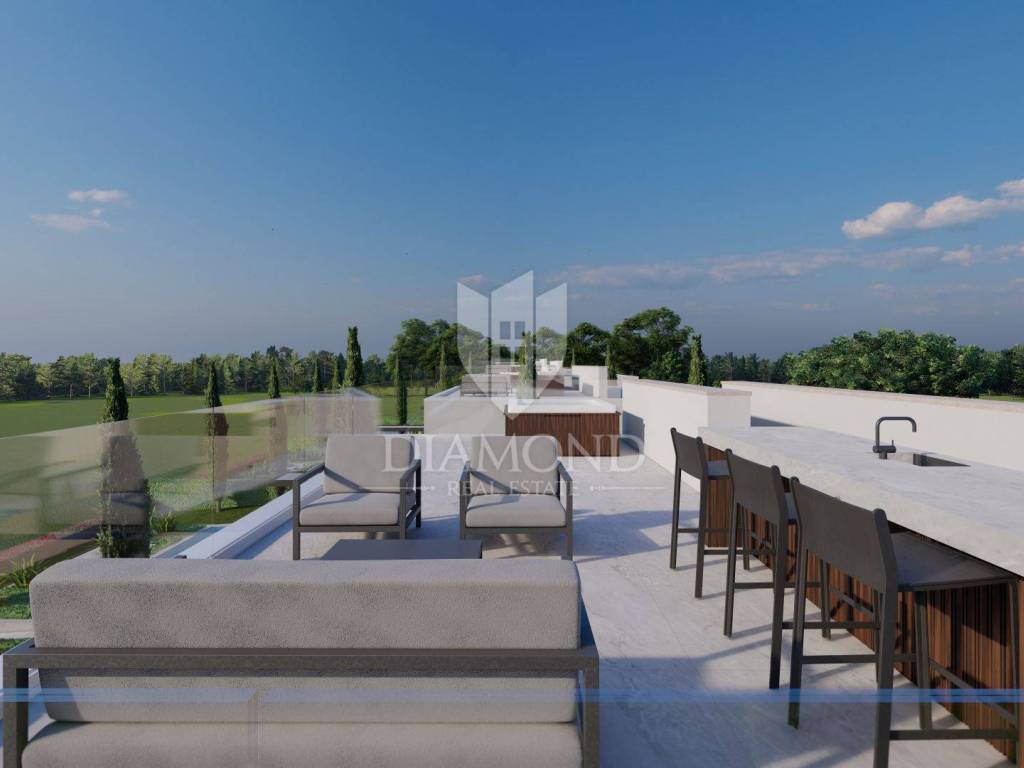 Questa imponente villa si sviluppa su un ampio terreno di 864 m2, offrendo ampio spazio per una varietà di attività e strutture all'aperto. In uno stile moderno ed elegante, questa villa offre un elevato standard di vita. La sua superficie netta totale è di 204 m2 e si estende su due piani. L'ingresso ci introduce in un open space dove si uniscono soggiorno, sala da pranzo e cucina. Questo concetto di open space crea un ambiente spazioso e luminoso. Al piano terra si trovano anche una sauna con doccia, una camera da letto con proprio bagno che garantisce privacy e comfort, un locale tecnico e una lavanderia con ripostiglio, e un wc esterno con ingresso separato che aggiunge praticità all'ambiente. spazio. Un'elegante scala conduce al primo piano, dove si trovano tre camere da letto, ciascuna con il proprio bagno, garantendo privacy e comfort. Un ulteriore locale al primo piano può essere utilizzato come palestra o sala giochi, adattabile alle esigenze del proprietario. Poi saliamo al secondo piano fino alla terrazza sul tetto, che rappresenta una vera oasi. È dotato di terrazza solarium, bar e vasca idromassaggio, offrendo uno spazio incredibile per il relax e il divertimento. La vista del mare da questa terrazza è speciale. Dal soggiorno si accede ad un ampio terrazzo che comprende un solarium con vista sulla natura e sul mare. C'è una piscina sulla terrazza che arricchisce ulteriormente l'esperienza di rilassarsi e godersi la vita all'aria aperta. Una tettoia con cucina estiva e una terrazza scoperta offrono lo spazio perfetto per mangiare all'aperto, intrattenersi e trascorrere del tempo con la famiglia e gli amici a bordo piscina. C'è un pozzo del fuoco nella parte inferiore del cortile, creando un'atmosfera romantica per le riunioni serali. Una doccia di design con acqua calda aggiunge un tocco lussuoso allo spazio esterno, offrendo ristoro e divertimento. La villa viene venduta completamente arredata con mobili di alta qualità, fornendo una casa completamente attrezzata e pronta per il nuovo proprietario. La costruzione della villa è stata curata nei minimi dettagli e concretamente, utilizzando materiali di alta qualità e una particolare attenzione agli aspetti estetici e tecnici. Tutti i servizi necessari per la vita e la città di Parenzo con le sue spiagge distano solo 5 km. La villa è inclusa nel sistema IVA, quindi l'importo viene calcolato con IVA. Il completamento previsto della costruzione è alla fine di gennaio 2024. Questa moderna villa con piscina su un ampio terreno è la casa ideale per coloro che apprezzano il lusso, il comfort e la vita in armonia con la natura. È l'opzione perfetta per la vita familiare e per fuggire dall'ambiente urbano.