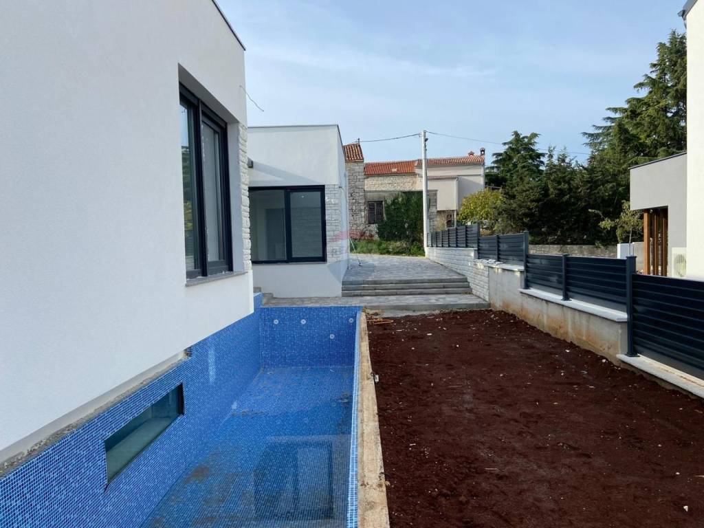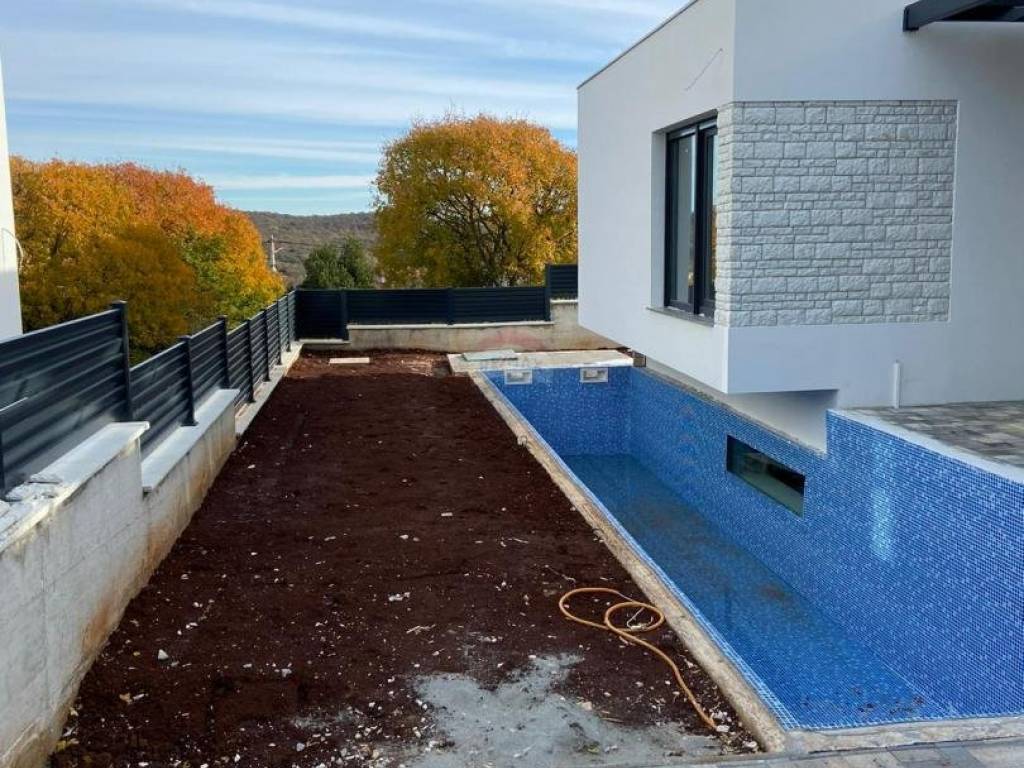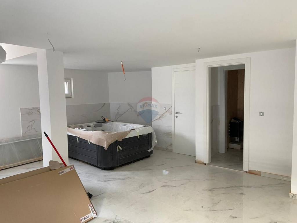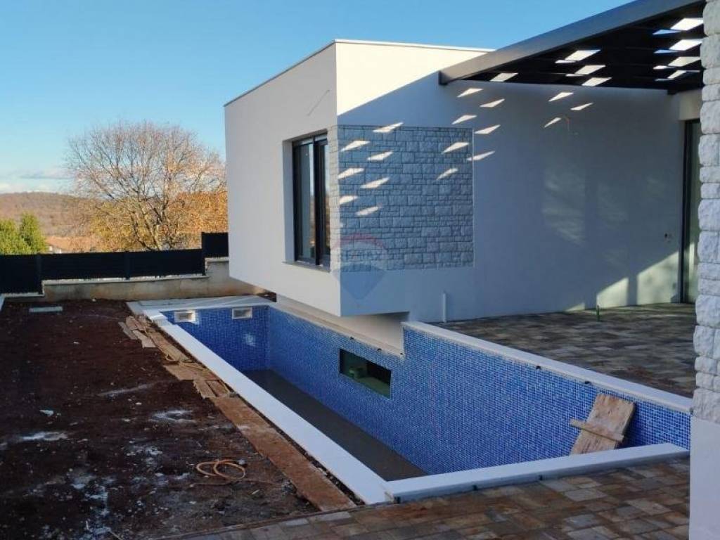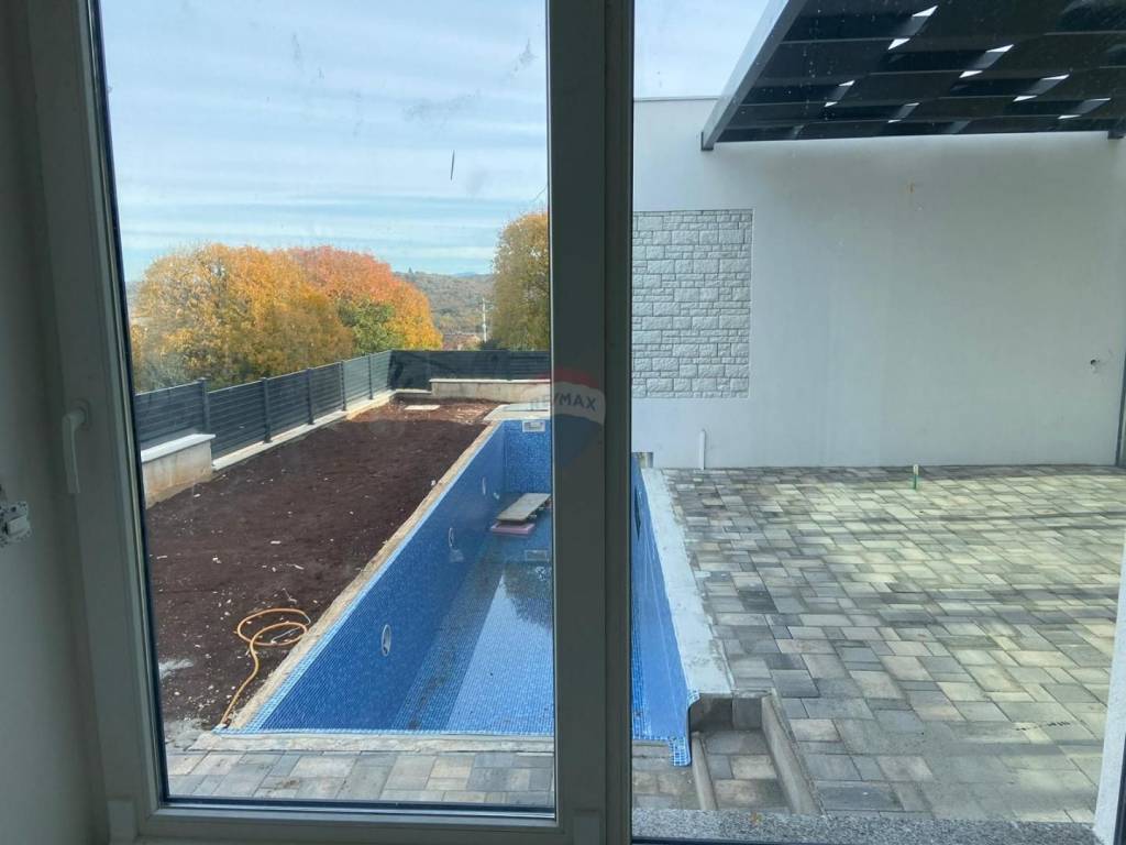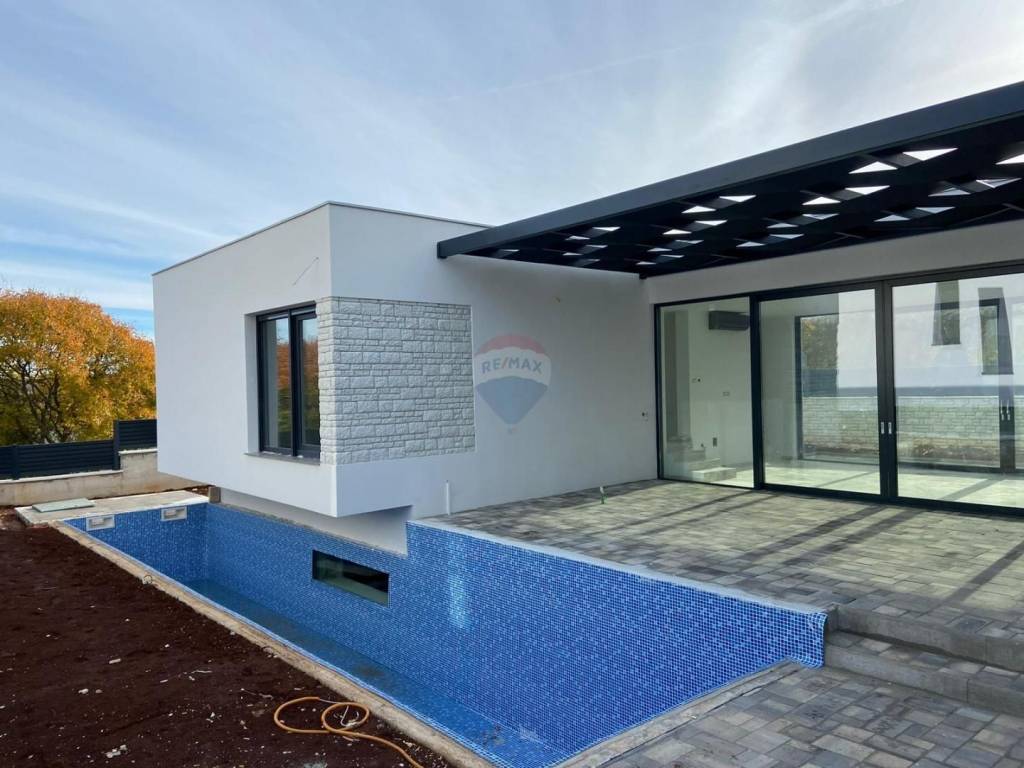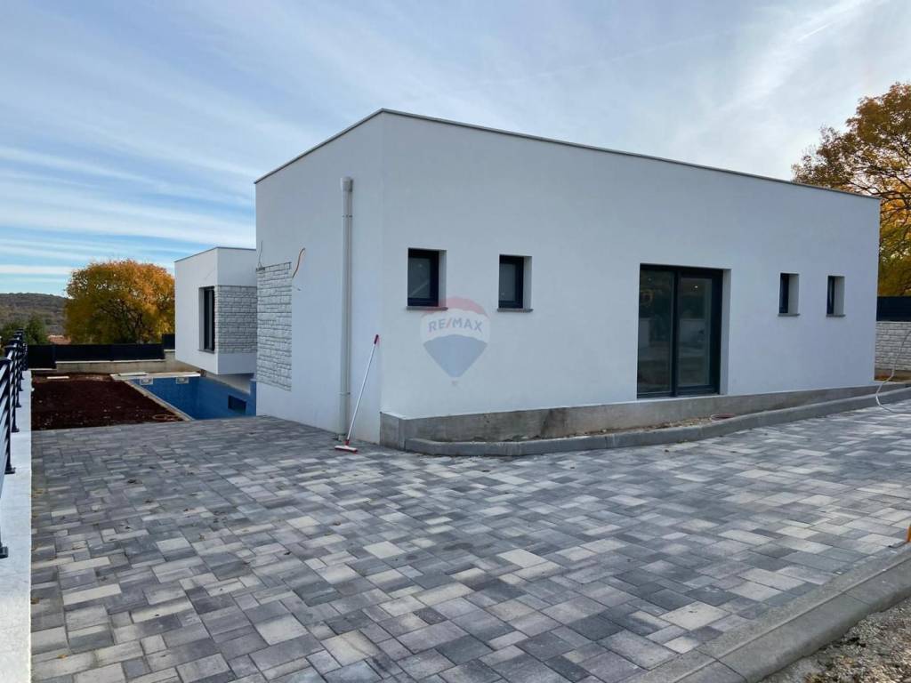 RE/MAX Real Estate Center offre questa casa moderna con una superficie totale di 218 m2, che si trova su un terreno di 388 m2. La casa è stata progettata in modo tale che tutte le stanze importanti per la vita si trovino sullo stesso piano. Si compone di una zona giorno aperta dove si trovano la cucina, il soggiorno e la sala da pranzo. Poi abbiamo 4 camere da letto con 4 bagni. Dal soggiorno si accede alla terrazza e alla piscina. La piscina sarà parzialmente vetrata e visibile al piano interrato, dove troveranno posto la palestra, la sauna e vari servizi per il relax. La casa dispone di 3 posti auto. Per il riscaldamento sono installate pompe di calore e aria condizionata. La casa è finita e pronta per abitarci!