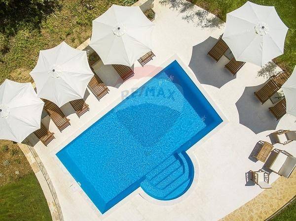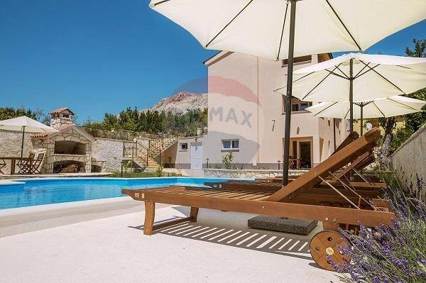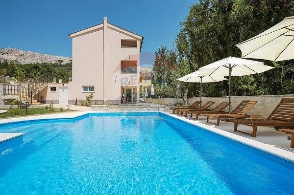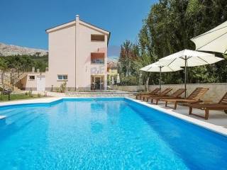 BAŠKA- VILLA sa sedam apartmana Novouređena villa s prekrasnih pet jednosobnih i dva dvosobna apartmana. Kvalitetna gradnja i moderan namještaj pružaju ugodan odmor. Prekrasna u kamenu uređena okućnica od 1.300m2. U sredini okućnice smješten je bazen i sunčalište za potpunu relaksaciju i opuštanje uz knjigu . Za one koji vole roštiljati na raspolaganju je vrti kamin. Dovoljno parkirnih mjesta.Spremište. Uredna dokumetacija. Baška je jedna od naših najpoznatijih turističkih destinacija, poznata je po dugoj šljunčanoj plaži, biserno čistom moru, uređenim šetnicama i prekrasnom krajoliku.