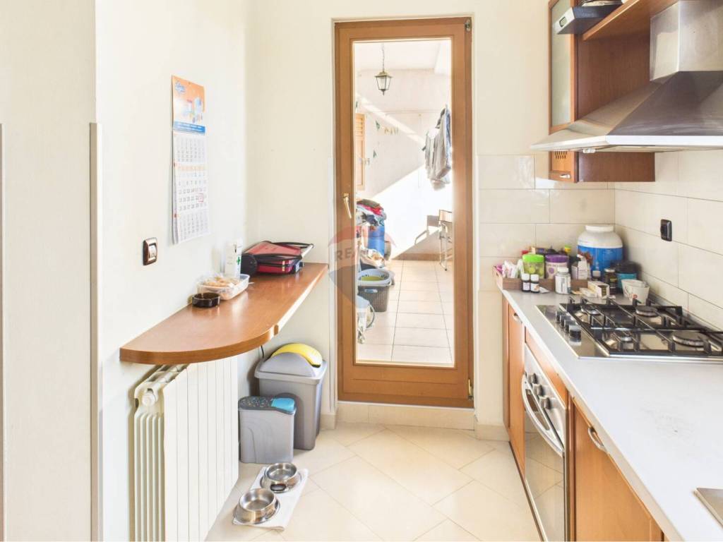 L'appartamento è composto da un corridoio, tre camere da letto, un bagno, un soggiorno, una cucina e una terrazza esposta a sud. L'immobile viene venduto completamente arredato.