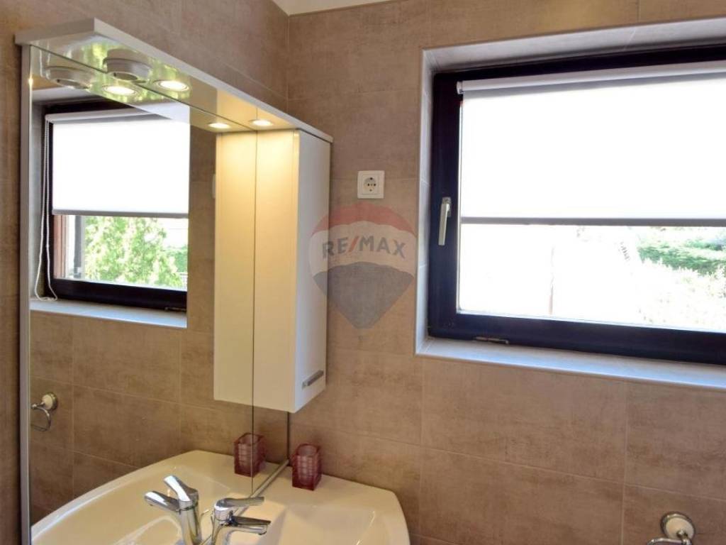 Al piano terra c'è un appartamento con due camere da letto, bagno, bagno, corridoio, soggiorno e sala da pranzo e uscita su una spaziosa terrazza.