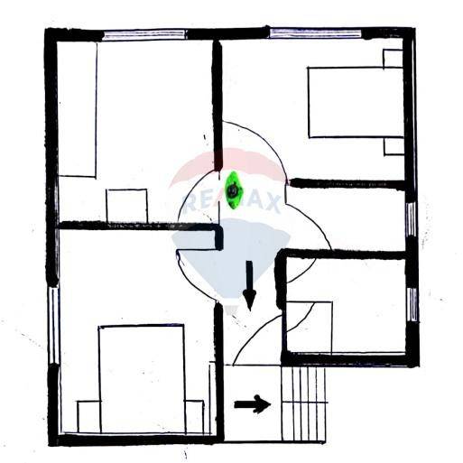 Al primo piano si trova il secondo appartamento che ha un ingresso separato ed è composto da due camere da letto, bagno, wc, corridoio, soggiorno con sala da pranzo e terrazza orientata a sud-ovest.