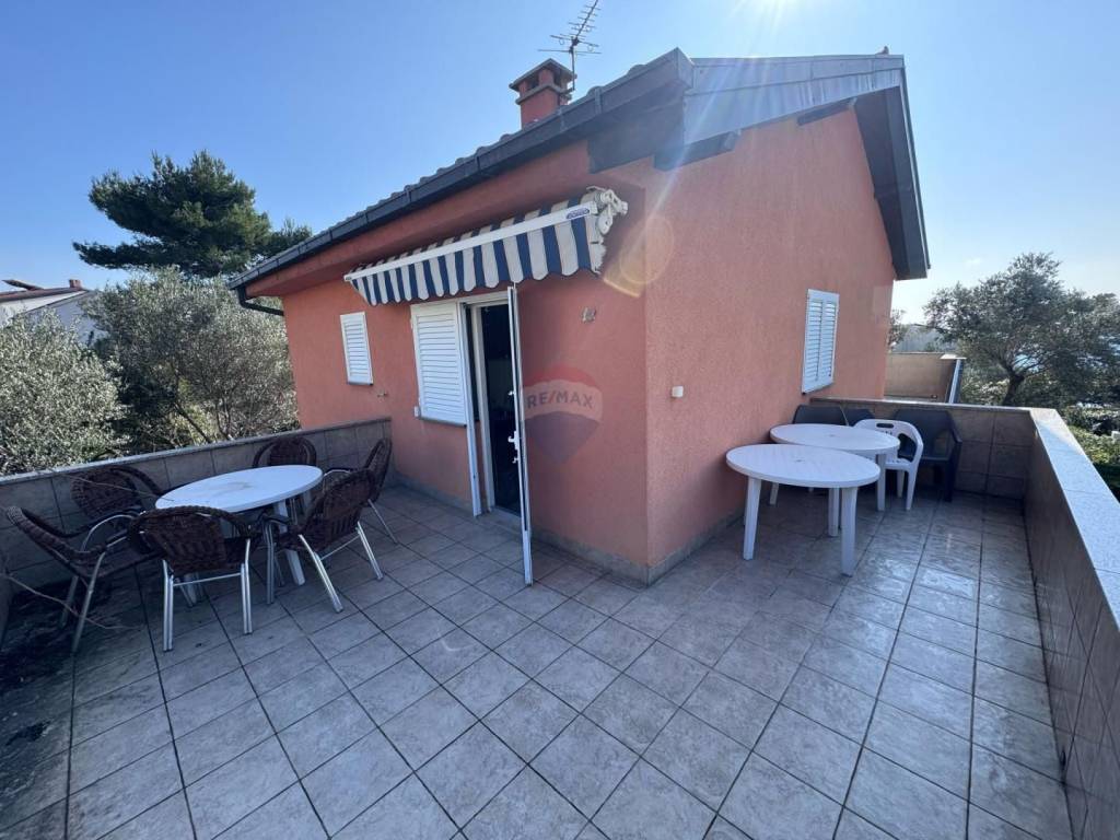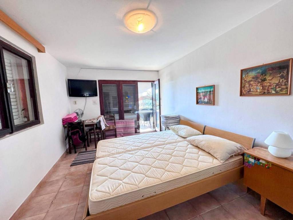 In vendita casa indipendente in posizione eccezionale, a soli circa 100 metri dalla spiaggia. La proprietà si trova su un terreno di circa 550 m² e dispone di una superficie abitabile totale di 160 m², distribuita su piano terra e primo piano. Al piano terra si trovano due monolocali di 35 m² ciascuno, ideali per l’affitto turistico o per ospitare amici e parenti. Al primo piano si trova un ampio appartamento di circa 70 m² composto da due camere da letto, soggiorno con zona pranzo, cucina, bagno e due terrazze – una sul lato est e una sul lato sud della casa. La proprietà dispone inoltre di una cantina di 15 m² e di un giardino curato con possibilità di parcheggio per due o tre auto. Grazie all’eccellente posizione vicino al mare, alla distribuzione funzionale degli spazi e all’ambiente ben curato, questa casa rappresenta un’ottima opportunità sia come residenza per le vacanze sia come investimento nel turismo.