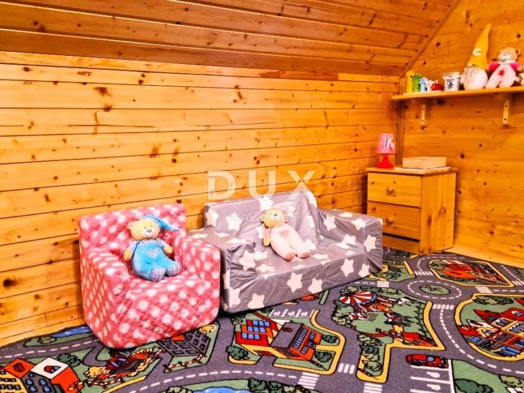 This is not just a house, but a place of gathering, laughter and slow mornings. The space is designed to effortlessly accommodate two or three families, with children, friends or guests who come and stay longer than they planned. On two floors, among warm wooden details, there are bedrooms where you can easily fall asleep, bathrooms that offer comfort, a kitchen from which the smells of homemade lunches spread and a large living room where the crackling of wood in the stove accompanies conversations until late at night. Children have their own world, filled with play, while adults find time for billiards, darts or simply good company.