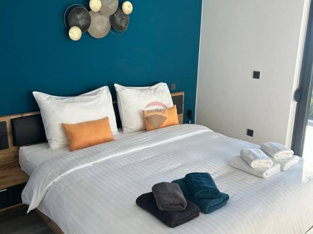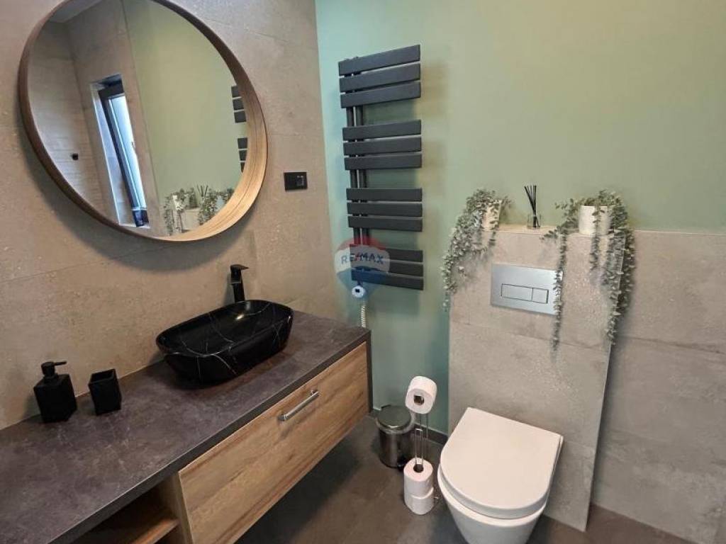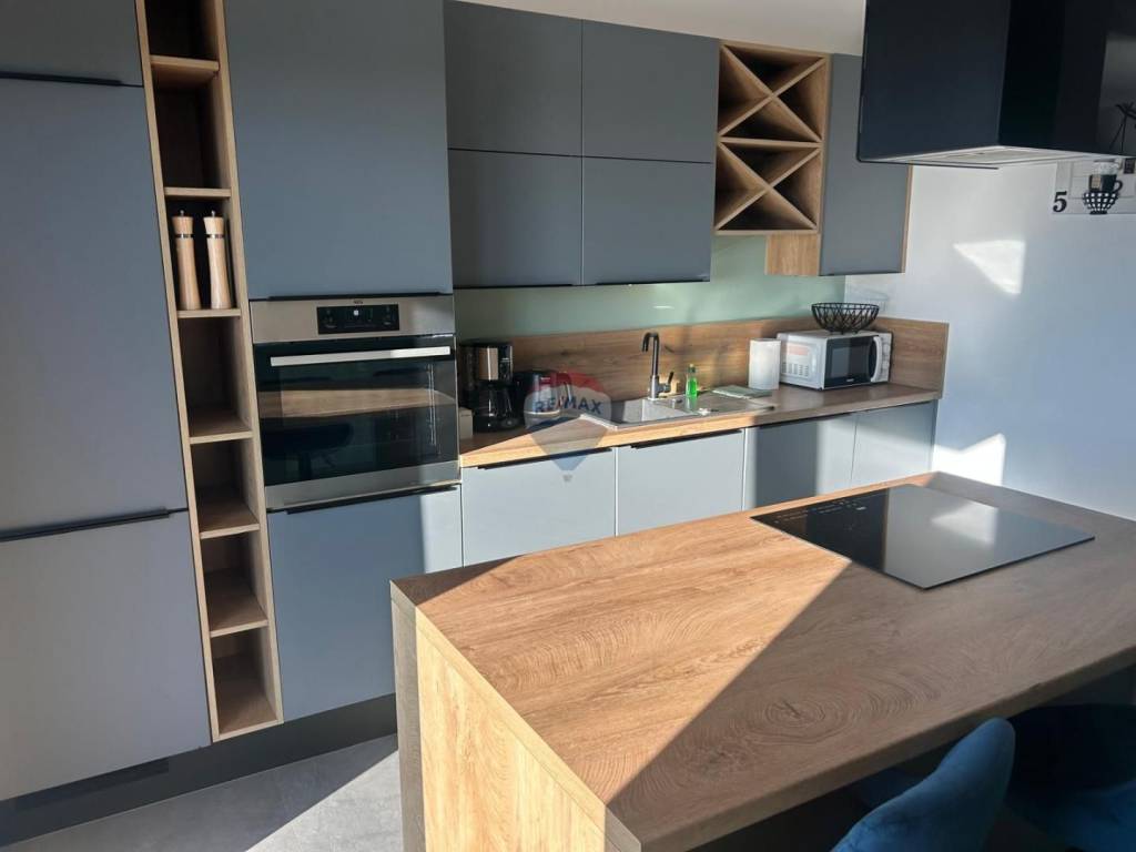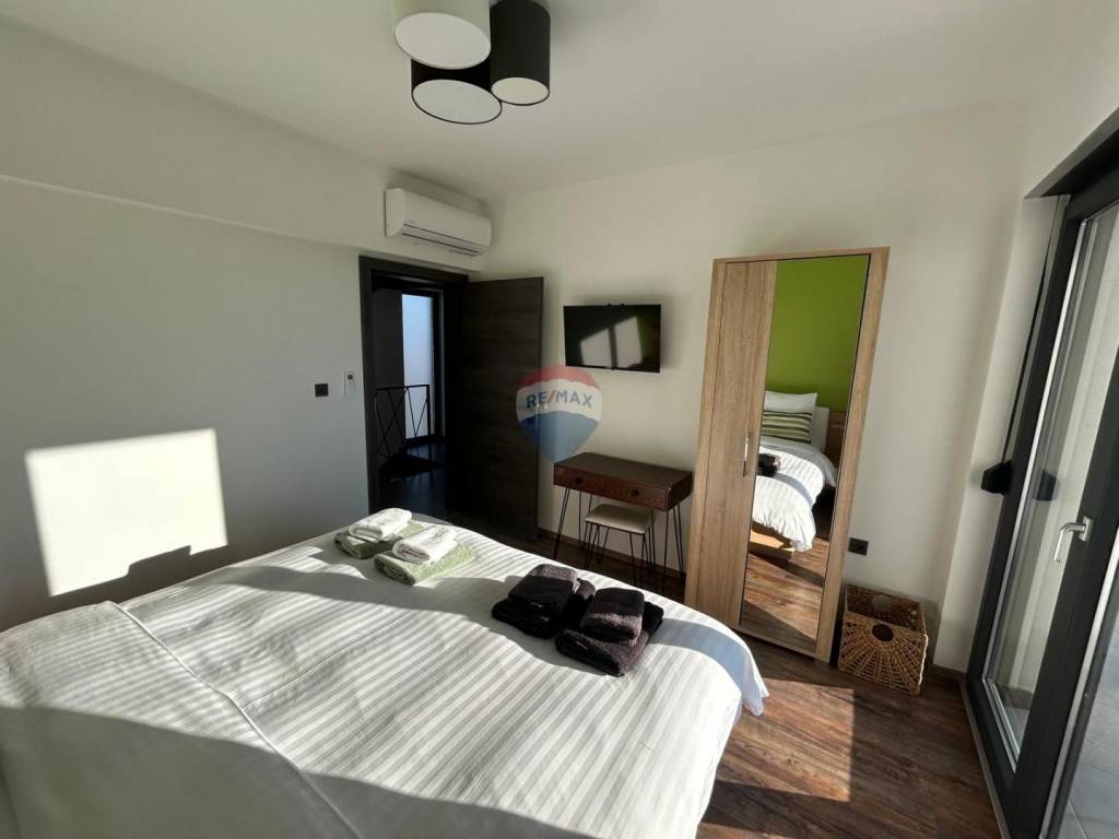 Il riscaldamento e il raffrescamento sono garantiti da climatizzatori e riscaldamento a pavimento in tutta la casa. Le camere da letto sono rifinite con laminato, mentre le altre superfici sono pavimentate con piastrelle. La casa è completamente arredata e viene venduta nello stato attuale. L’esposizione sud-ovest garantisce abbondante luce naturale grazie alle ampie superfici vetrate.