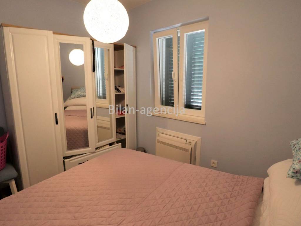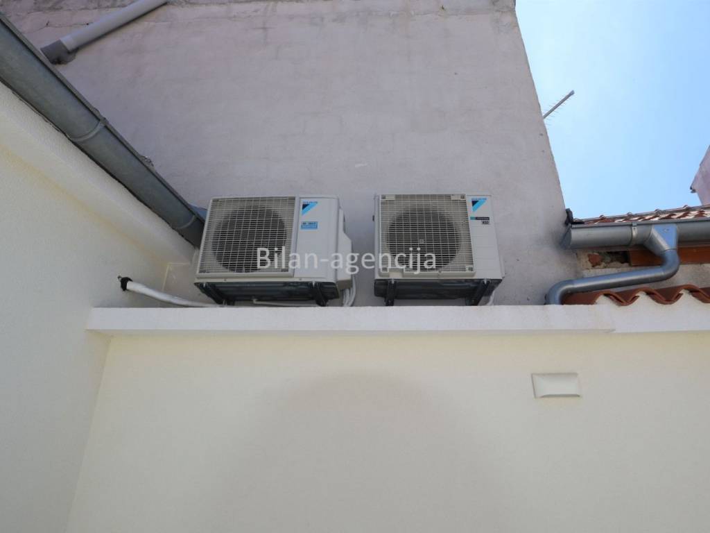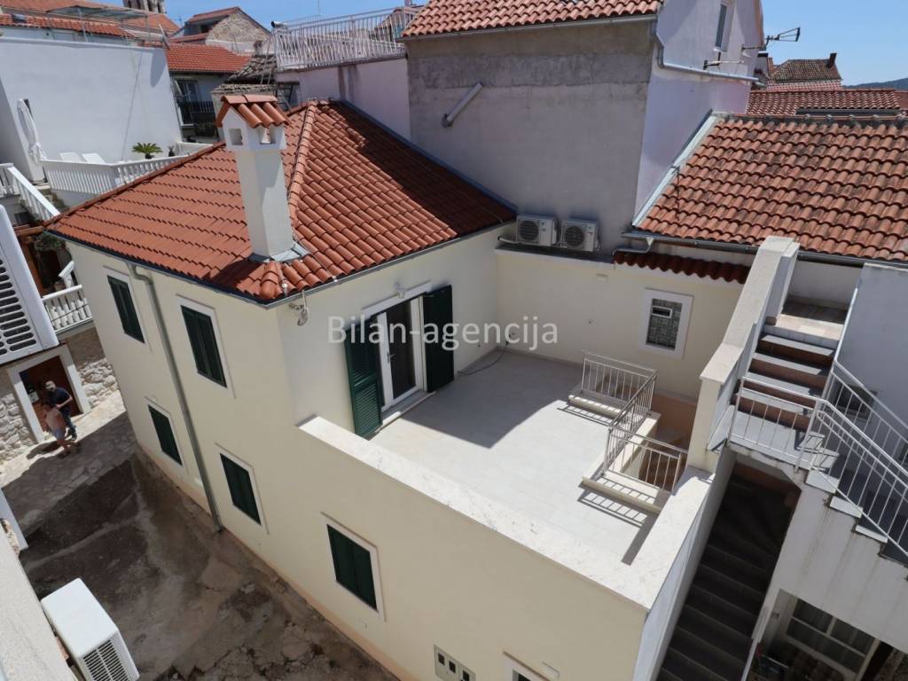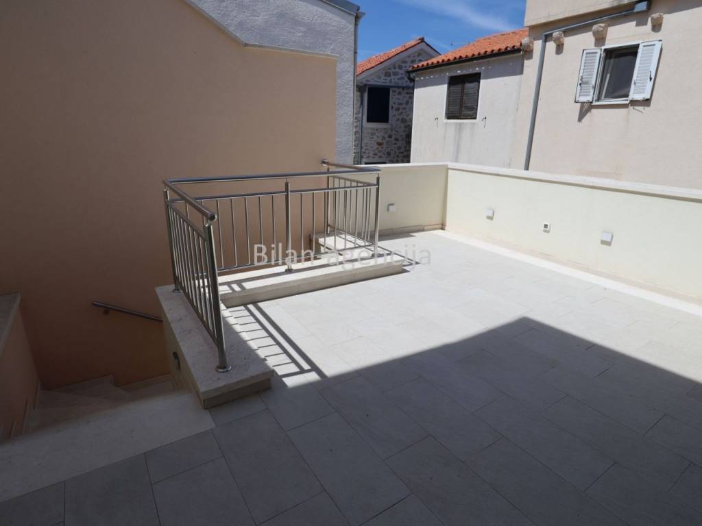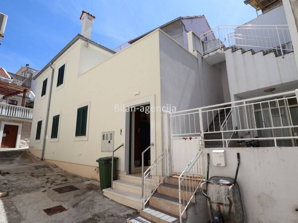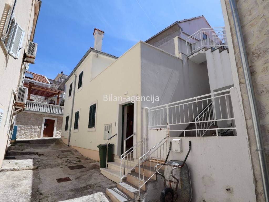 House for sale in the center of Betina on the island of Murter. 500m from the sea. It consists of a ground floor and a first floor. They can be used as two separate apartments. On the ground floor there is one apartment with a bedroom, kitchen - dining room - living room, bathroom and storage, with a total area of 55.35 m2. On the first floor there is an apartment with a total area of 62.29, with one bedroom, bathroom, kitchen - dining room - living room and a nice spacious terrace.