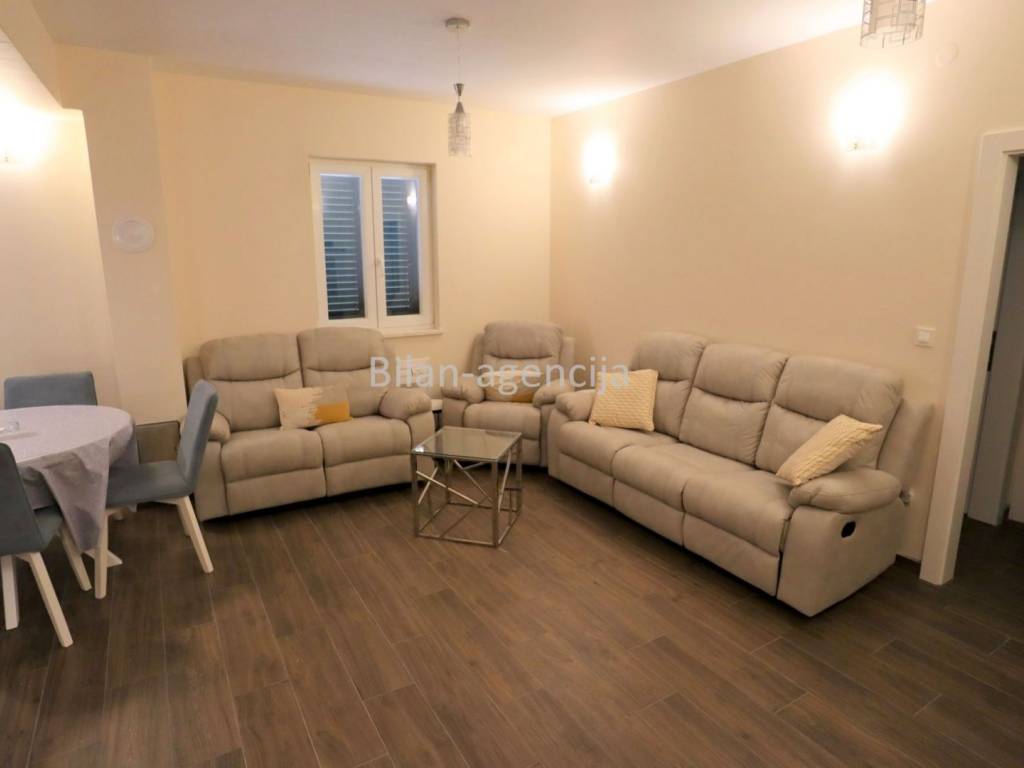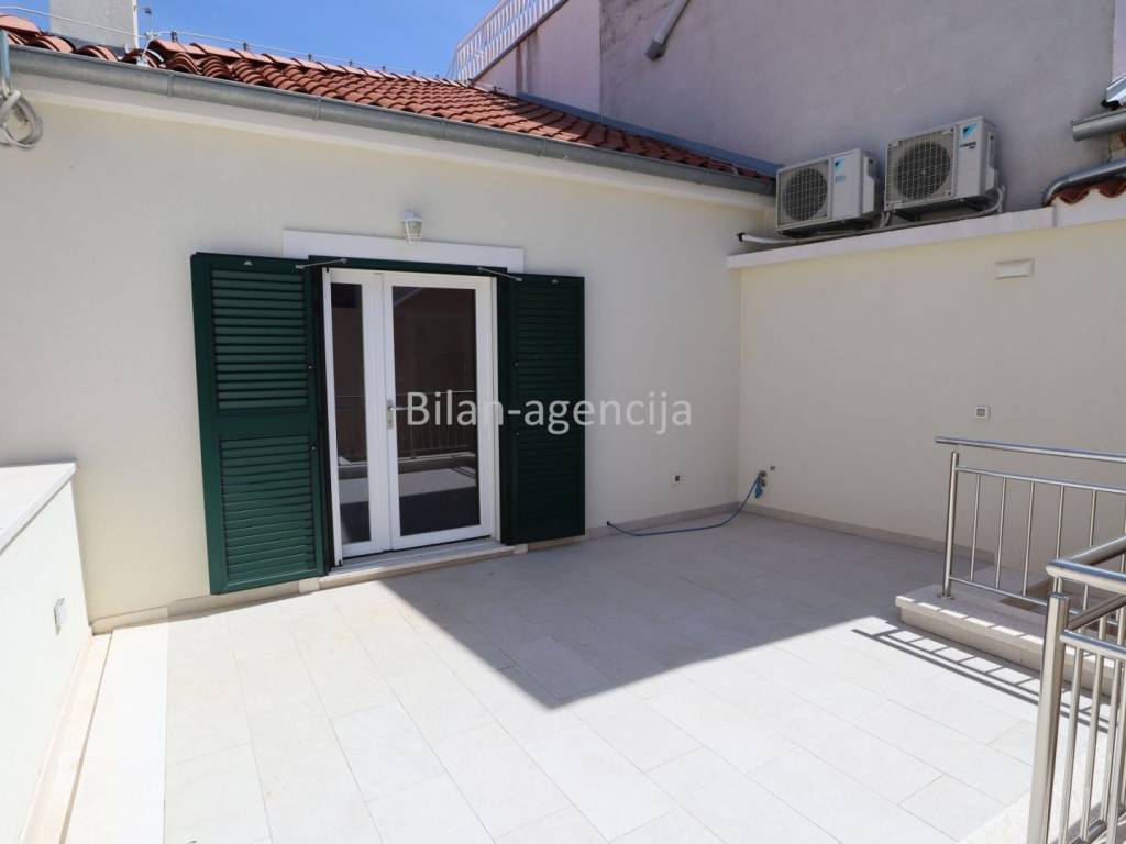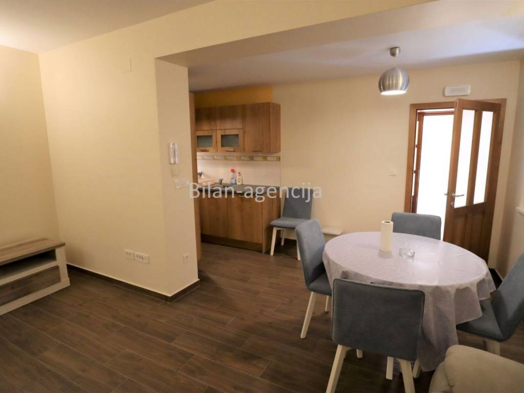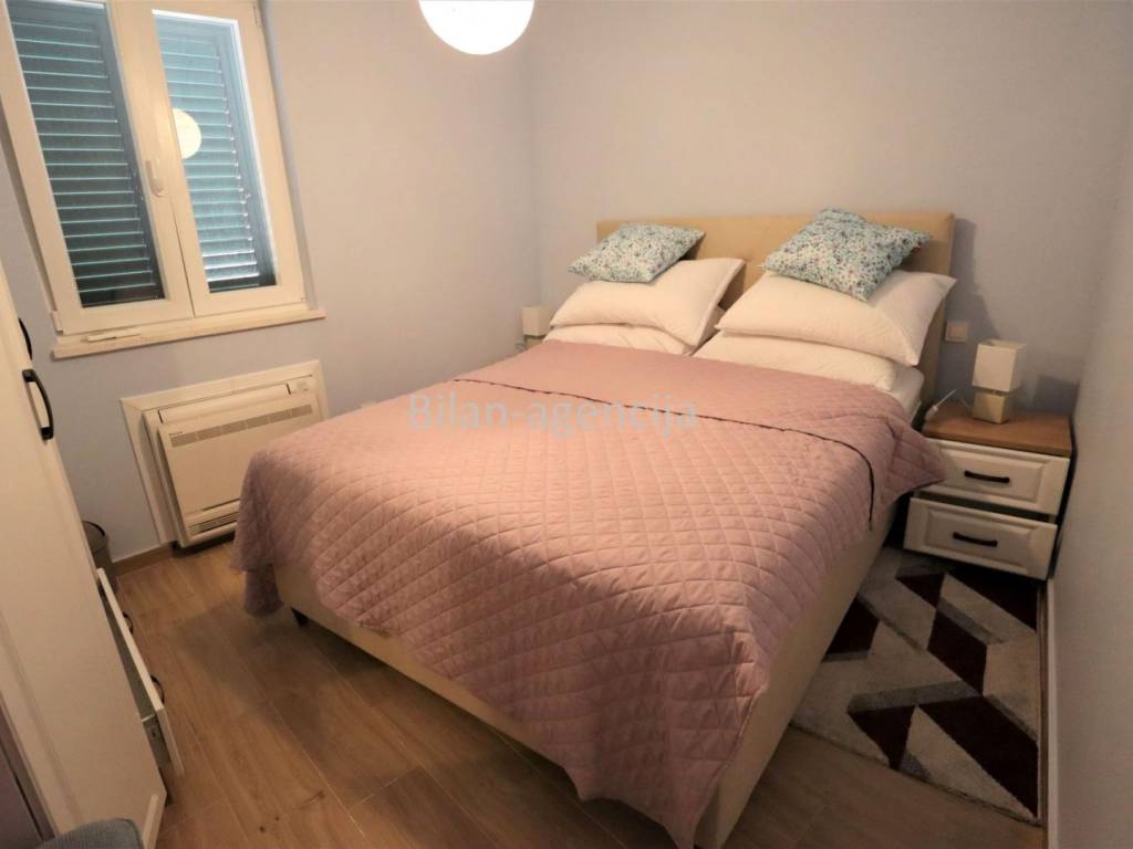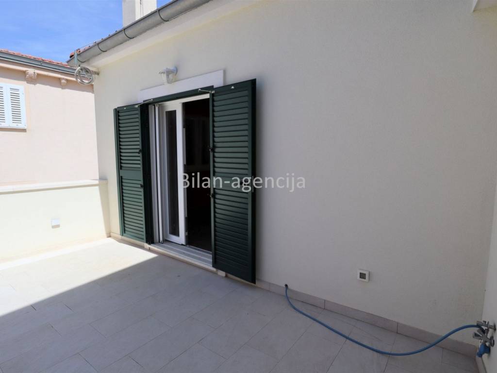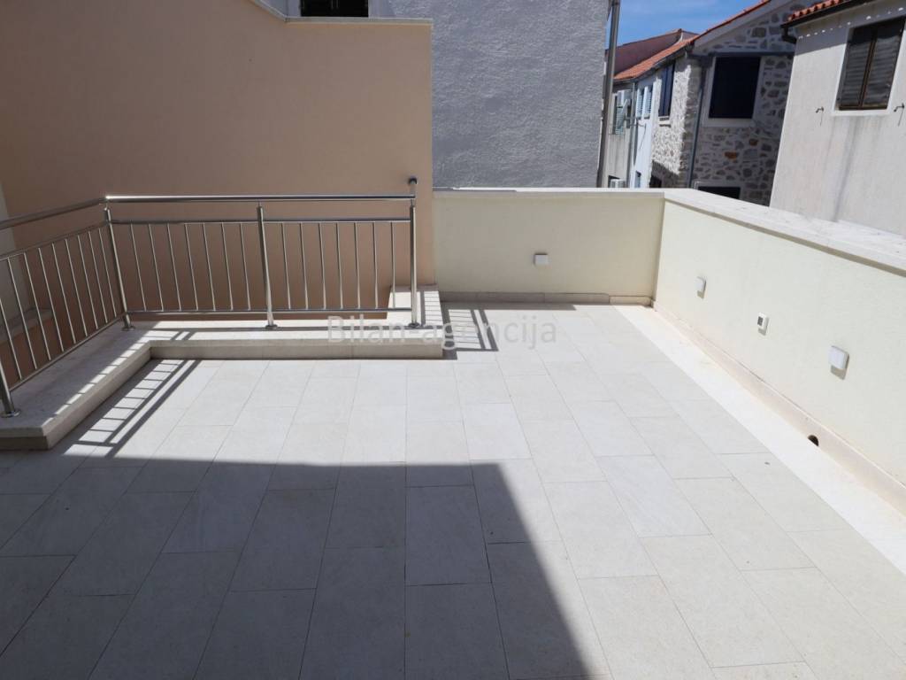 House for sale in the center of Betina on the island of Murter. 500m from the sea. It consists of a ground floor and a first floor. They can be used as two separate apartments. On the ground floor there is one apartment with a bedroom, kitchen - dining room - living room, bathroom and storage, with a total area of 55.35 m2. On the first floor there is an apartment with a total area of 62.29, with one bedroom, bathroom, kitchen - dining room - living room and a nice spacious terrace.