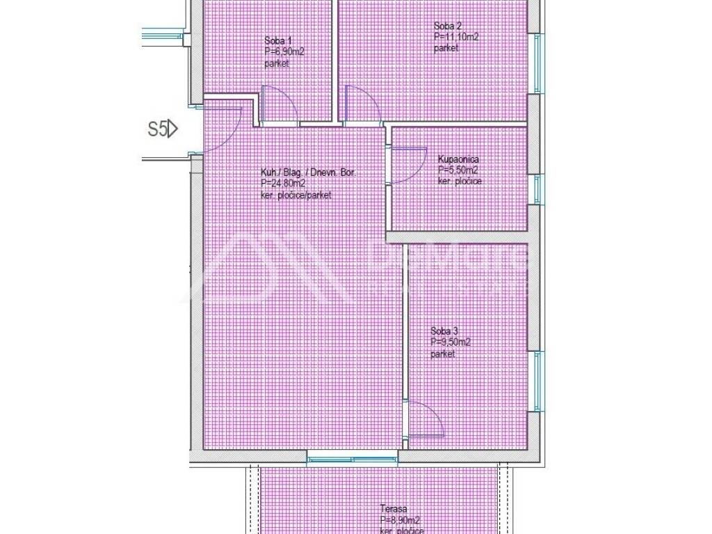 1 . FLOOR - Apartment S5 with three bedrooms and a terrace