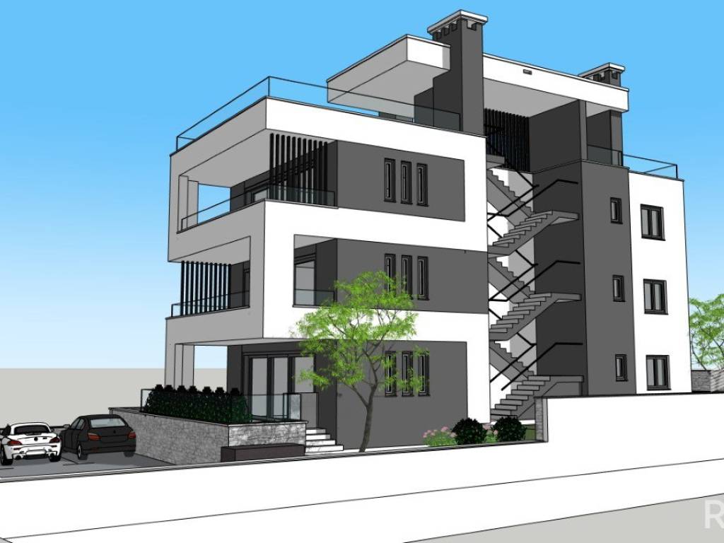 The apartments will be located in a small residential building with three floors, with one apartment per floor, each offering an open panoramic view of the sea and islands.