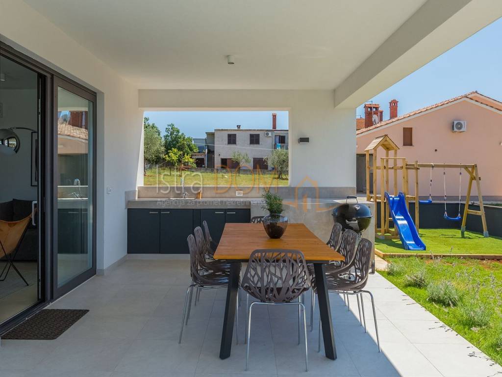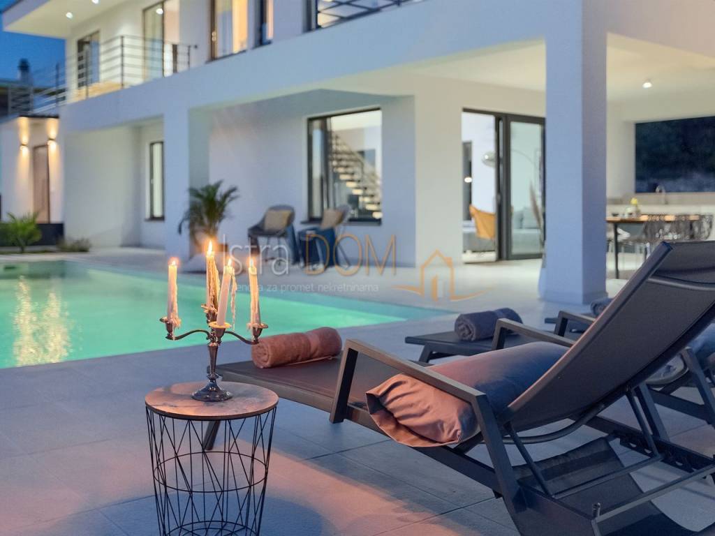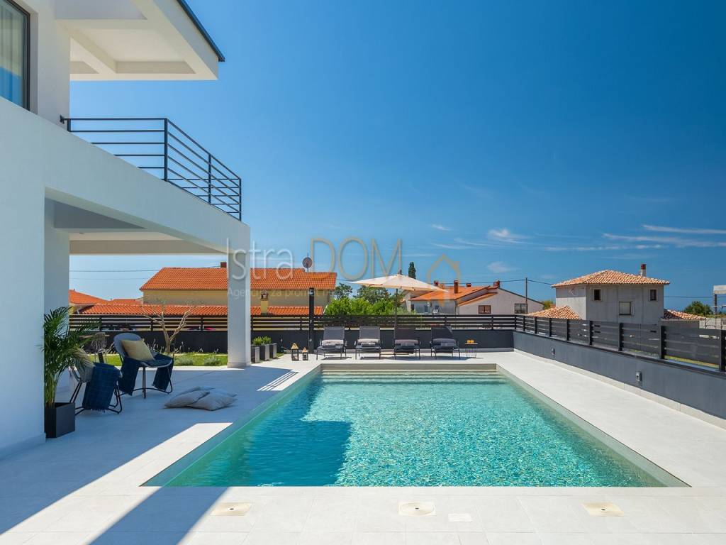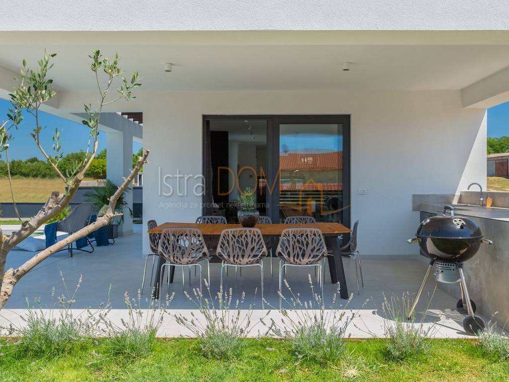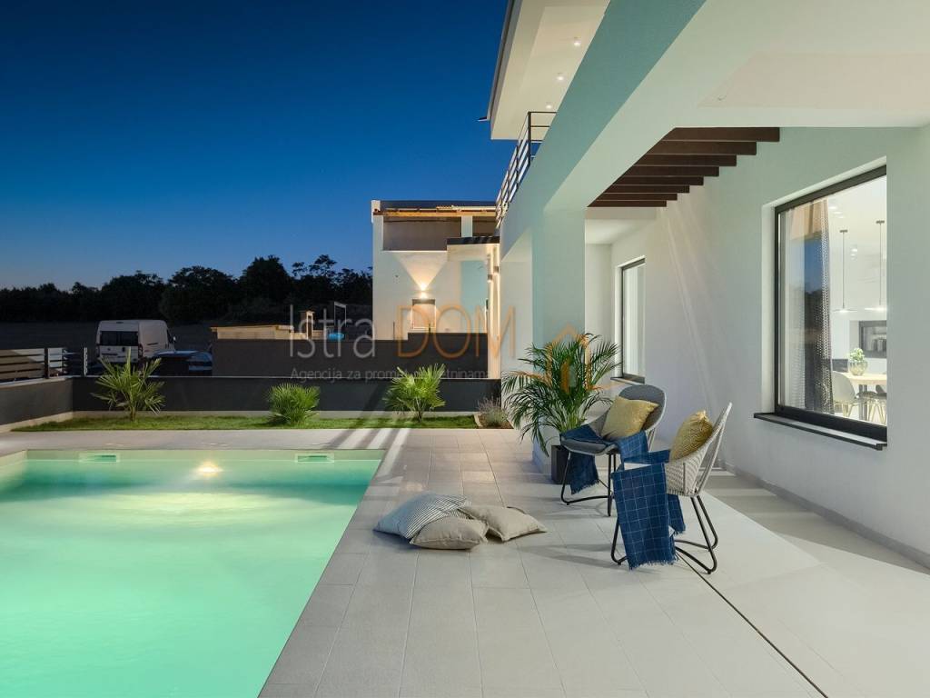 Stiamo vendendo questa bellissima villa di lusso situata in una posizione tranquilla a Gallesano. Questa moderna villa, dotata di una grande dose di lusso, è stata progettata con cura, tenendo conto di ogni dettaglio.
