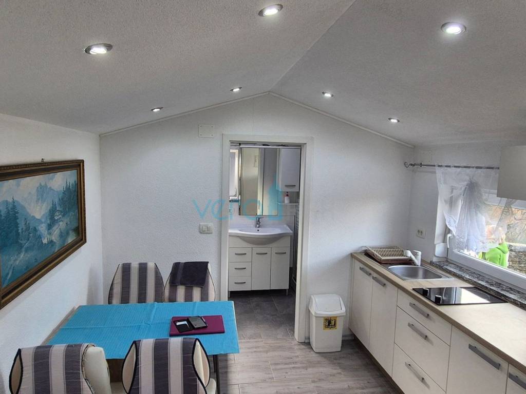 Istria, Buje, ampia periferia, casa a piano terra di 60m2, in una posizione attraente al confine della zona edificabile. Si compone di cucina con sala da pranzo, bagno, soggiorno al piano terra e camera da letto nel seminterrato. Riscaldamento/raffreddamento tramite condizionatore. Completamente arredata e attrezzata, viene venduta così com’è. Sono stati utilizzati materiali di alta qualità nella costruzione. Il terreno di 680m2 è arricchito da piante mediterranee, ben curato, così come l’accesso alla casa e la terrazza coperta. Posizione tranquilla della casa, ma comunque vicina a tutti i servizi, è il principale punto di forza di questa simpatica proprietà, completata dall’ambiente naturale circostante. Immobile ideale per investimento o uso personale.
