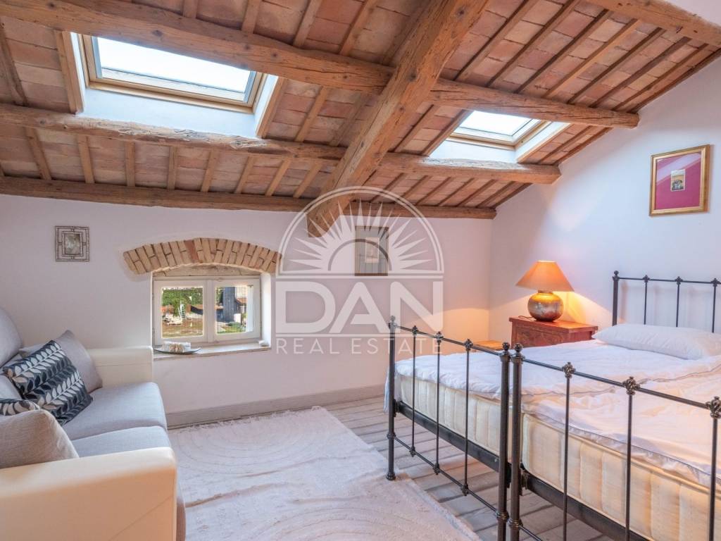 In un tranquillo villaggio vicino a Parenzo e alle splendide spiagge si trova questa affascinante casa in pietra con una superficie abitabile complessiva di 150 m² e un giardino di 100 m². L’immobile si sviluppa su tre piani ed è stato completamente ristrutturato con particolare attenzione alla conservazione dello stile mediterraneo originale e del fascino rustico. Ogni dettaglio è stato accuratamente scelto per mantenere l’autenticità e il calore dell’architettura tradizionale istriana.