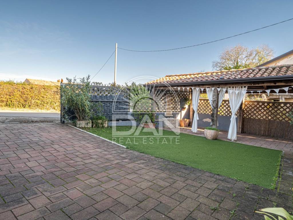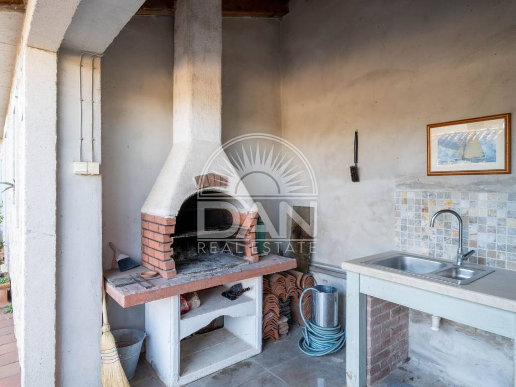 Il riscaldamento è garantito da una stufa a legna, mentre i climatizzatori assicurano il raffrescamento e il comfort durante tutto l’anno. Nel cortile recintato si trovano una cucina estiva con camino barbecue, una zona pranzo coperta ideale per ritrovi all’aperto, un posto auto e uno spazio per conservare la legna.