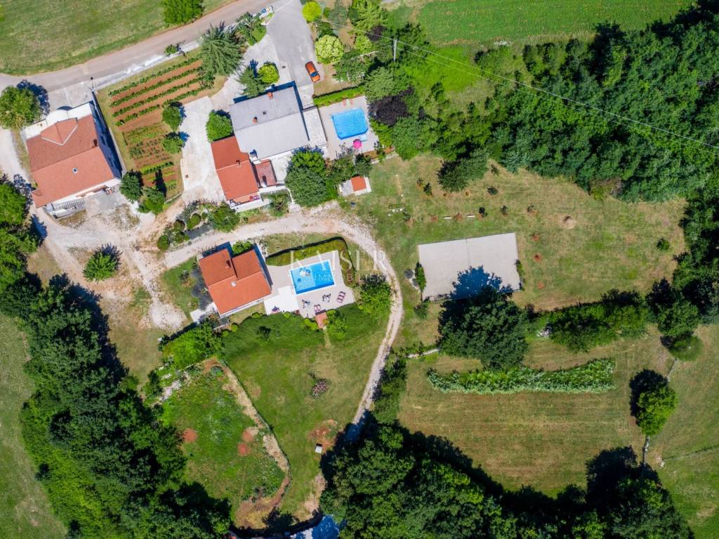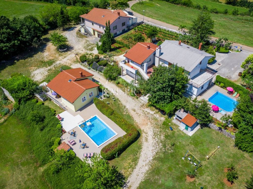 Kaiser Immobilien presenta un complesso immobiliare familiare composto da 2 case con piscine e 1 edificio commerciale - residenziale, immerso nella natura; aree boschive e verdi. Si estende su una superficie di circa 10.000 mq, ed è composta da: 1. Casa indipendente, fabbricato su due piani di circa 280 mq con 3 garage (circa 83 mq), composta da 3 appartamenti; - piano interrato: taverna con camino (circa 36 mq), locale caldaia e legnaia (circa 10 mq) - piano terra: appartamento di circa 112 mq; cucina, sala da pranzo, soggiorno, 3 camere da letto, 2 bagni, aria condizionata, wi-fi, terrazzo semicoperto. - 1° Piano: appartamento di circa 100 mq; cucina, sala da pranzo, soggiorno, 2 camere, 1 bagno, ripostiglio, balcone coperto, terrazzo, wi-fi. - 1° Piano: appartamento di circa 65 mq; cucina, sala da pranzo, soggiorno, 2 camere, 2 bagni, aria condizionata, terrazzo. Accanto alla casa si trova una piscina con una superficie di 43 m2, una profondità di 1,3 m, numerosi posti auto, parchi paesaggistici e dintorni, un vigneto (4 filari di vite, circa 387 m2), un seminativo di circa 180 mq. 2. La casa indipendente è un edificio ad un piano, con una superficie di circa 70 mq, costruito nel 2008. - piano terra: cucina, sala da pranzo, soggiorno, 2 camere, 2 bagni, ripostiglio, terrazzo coperto (circa 20 mq), 2 condizionatori, wi-fi, barbecue. Accanto alla casa si trova una piscina con una superficie di 8m x 5m, una profondità di 1,3m, 2 posti auto coperti, parchi paesaggistici e dintorni, un pozzo (serbatoio per acqua potabile) di 5m x 5m x 3m. Tra la prima e la seconda casa familiare si trova un'area sportiva e ricreativa (circa 600 mq); campo da beach volley, altalene, altalene e barbecue in muratura e più avanti terreno urbanizzato. Nella valle sottostante la 2° casa familiare sono stati realizzati strutture per animali domestici, stalle, garage per macchinari (circa 132 mq) e spazi destinati agli animali (nella proprietà vivono asinelli, oche e galline). 3. Fabbricato commerciale-residenziale, superficie di circa 280 mq, situato su un terreno di 576 mq - seminterrato: 140 mq; open space, 1 wc, ampio parcheggio (possibilità di accesso per camion) - piano terra: circa 189 mq; 3 locali, disimpegno, 1 wc, 3 bagni, cucina, ampio terrazzo coperto, 4 condizionatori, ampio parcheggio. La struttura è dotata di permesso d'uso. La tenuta è trafficata e molto ben collegata (vicino all'Epsilon istriano), in uno splendido paesaggio verde, un luogo tranquillo ideale per una famiglia numerosa o un complesso già predisposto per l'affitto (appartamenti classificati con piscine) con adeguate strutture sportive e ricreative e un proprio spazio commerciale che consente l'apertura di un'attività o un ulteriore affitto. È adatto anche per l'ecoturismo. Posizione: nel pieno centro della penisola istriana; distanza dal mare - 20 km vicinanza all'Istrian epsilon - 3 km Pola (aeroporto) - 39 km Rijeka - 72 km Zagabria - 230 km Lubiana - 181 km Venezia - 261 km Vienna - 565 km Budapest - 571 km Per ulteriori informazioni e visite turistiche , contattateci con fiducia - Dean Luić, cellulare: +385992140008, E-mail: dean@kaiser-immobilien.hr