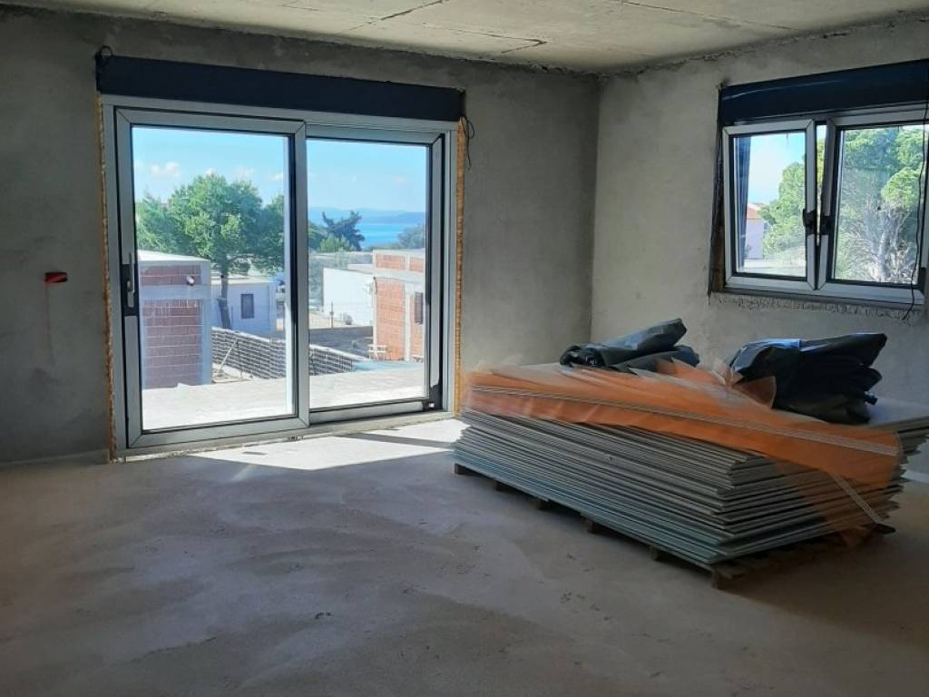 For sale is a 68 m² apartment located in Pakoštane, within a house that includes two apartments on the upper floor. The property is part of a newly built development, and the apartment is currently in shell construction (roh-bau), allowing the buyer to finish it according to personal preferences.