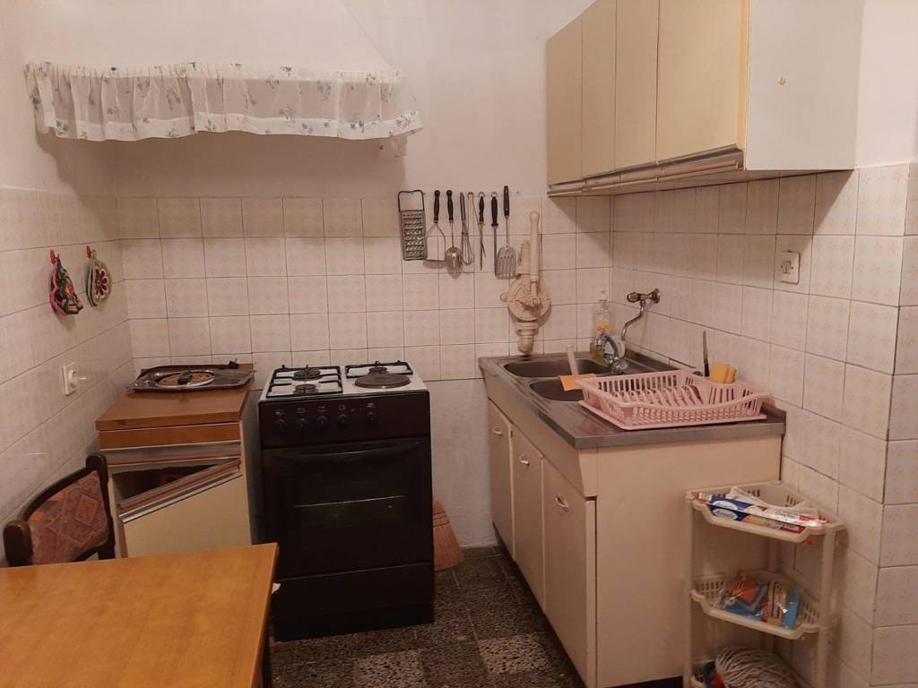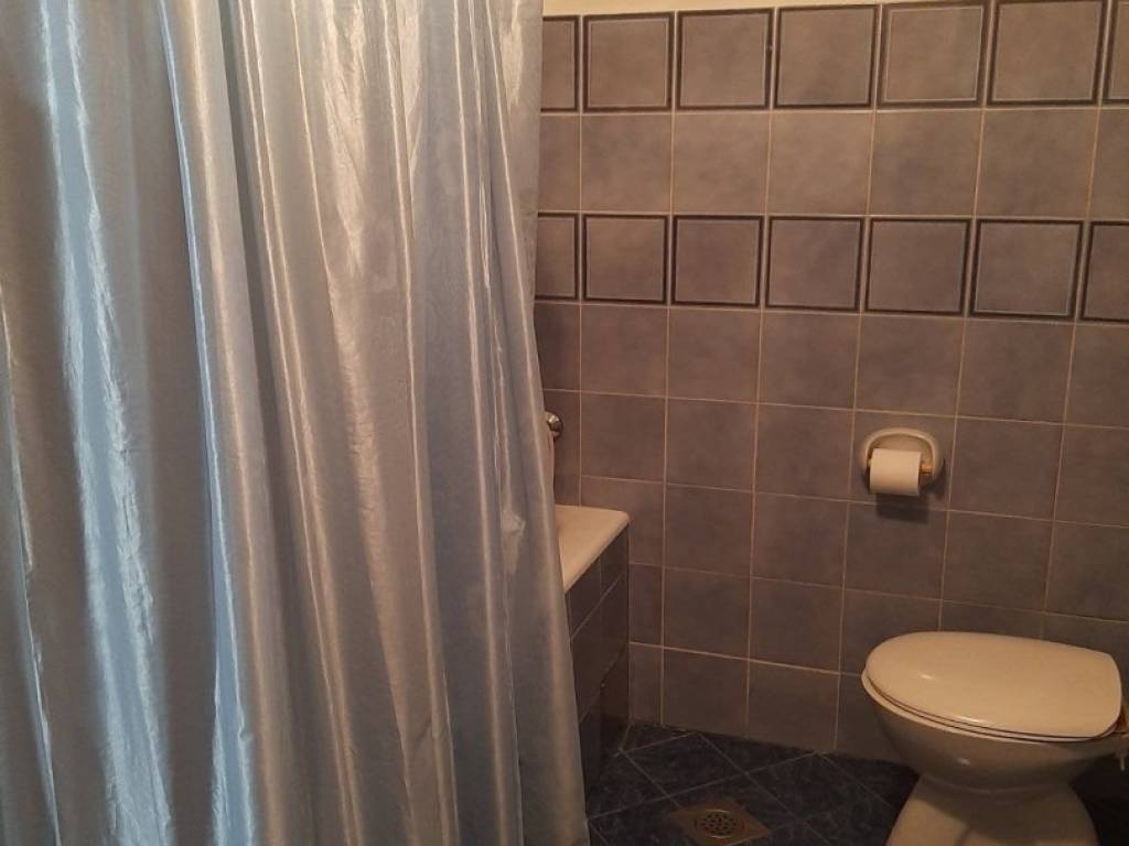 The living space is functionally distributed across three floors. The ground floor of approx. 110 m² includes a living room, one spacious bedroom, two kitchens (smaller and larger), a bathroom, a hallway, and a practical storage area under the stairs. The ground floor opens onto a west-oriented courtyard of approx. 60 m², and the property also includes an additional outdoor storage unit of 10 m². Heating is wood-fired, complementing the authentic island atmosphere, and the house has standard electricity and water connections.