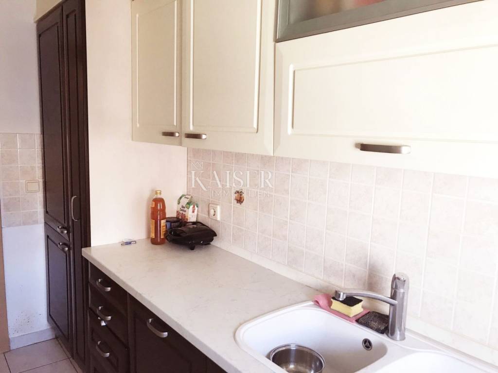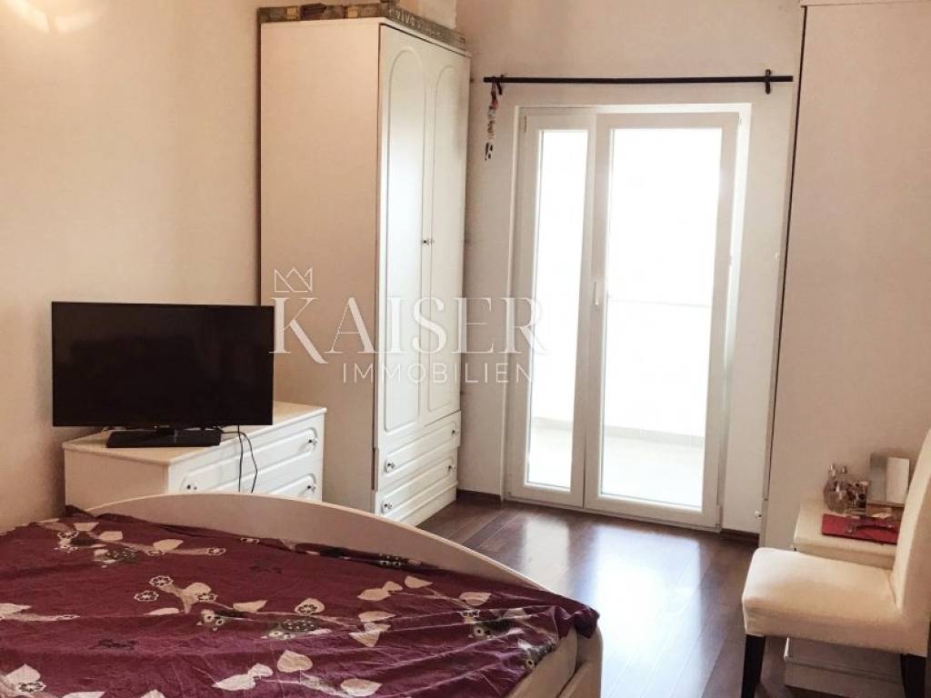 Kaiser Immobilien presenta un bellissimo appartamento con vista sul mare in un quartiere tranquillo a soli 3 chilometri dal centro di Parenzo. L'appartamento è situato in una palazzina residenziale al terzo piano, su complessivi 3 piani. La posizione dell'appartamento è molto, molto attraente e permette di raggiungere in pochi minuti le prime spiagge, il centro città o i grandi centri commerciali nelle vicinanze. La superficie totale dell'appartamento è di 91,63 m2 ed è composto da un ampio soggiorno con sala da pranzo e uscita su un ampio terrazzo coperto, una cucina, due camere da letto e un bagno. Una camera ha accesso ad un ampio terrazzo coperto. Al piano terra dell'edificio si trova un ampio ripostiglio di proprietà dell'appartamento di 8 m2, oltre al parcheggio per 1 veicolo (ufficialmente l'appartamento appartiene a 1 parcheggio, ma c'è la possibilità di parcheggio per 2 veicoli ). L'appartamento ha pavimenti in legno in tutti gli ambienti ad eccezione della cucina e del bagno, dove i pavimenti sono in ceramica. L'appartamento viene venduto senza mobili, si tratta dei mobili che erano precedentemente nell'appartamento, ad eccezione della cucina, che viene realizzata su misura e viene venduta insieme all'appartamento. I condizionatori vengono utilizzati per riscaldare e rinfrescare l'appartamento. L'intero edificio è di alta qualità ed è costruito con materiali di qualità. Se desideri che questo bellissimo appartamento, poco distante dal mare, diventi la tua nuova casa, contatta l'agenzia Kaiser Immobilien.