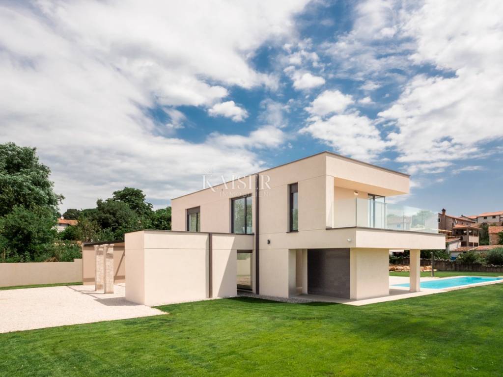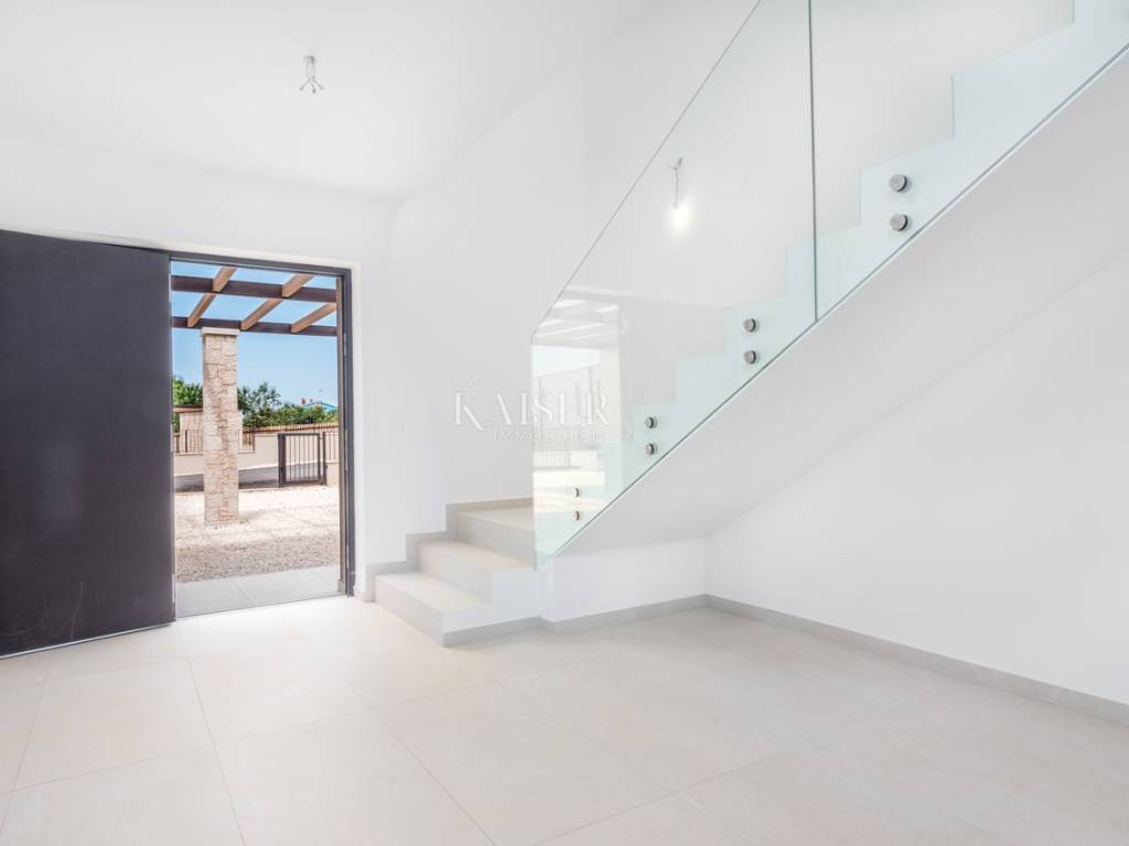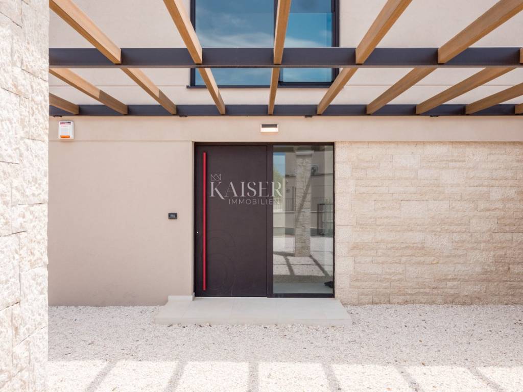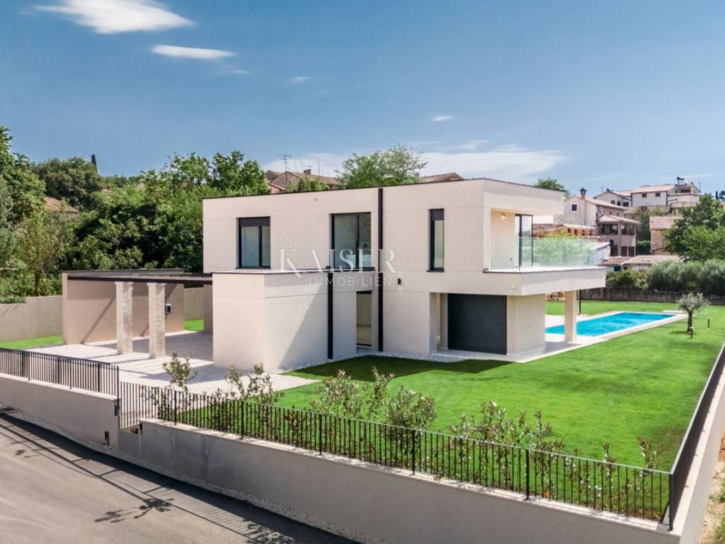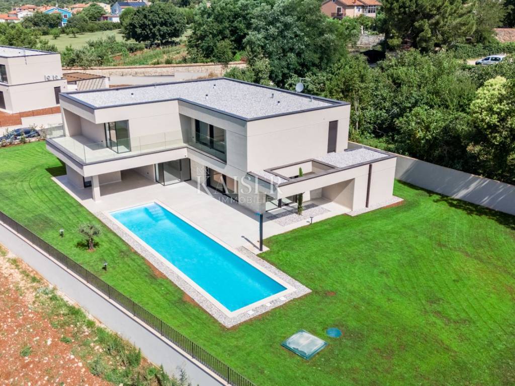 Kaiser Immobilien propone in vendita una villa di lusso di recente costruzione con una meravigliosa vista mare. Sulla costa occidentale dell'Istria, in una posizione invidiabile, circondata da vigneti e uliveti dei migliori viticoltori e olivicoltori istriani, vicino ai produttori locali di prelibatezze istriane autoctone, questa villa unica e lussuosa si trova su un meraviglioso terreno di 1323 metri quadrati. Villa con una superficie lorda di 335 mq, che è di 241 mq netti, si trova a soli 10 km dal centro di Parenzo e dalle spiagge di Parenzo. Tutti i servizi essenziali come supermercato, ristoranti, scuola, asilo, centro sanitario e farmacia si trovano nelle immediate vicinanze della villa. La villa è stata completata quest'anno ed è pronta per essere presentata con orgoglio ai nuovi proprietari. Questa imponente villa è composta da un piano terra e un primo piano, collegati da una scala in cemento armato dal design molto moderno. Al piano terra della villa si trovano: disimpegno, scala, wc, ripostiglio, cantina vini, locale tecnico, cucina e sala da pranzo, soggiorno, sauna, due terrazzi coperti e ripostiglio. Il piano terra della villa ha una superficie netta complessiva di 167,60 mq. Al primo piano della villa si trovano: quattro camere da letto con quattro bagni, un disimpegno, due terrazzi coperti ed uno scoperto. È molto importante sottolineare che l'intera villa è stata costruita con materiali di alta qualità, ed è stata prestata attenzione ad ogni dettaglio che permetterà ai nuovi proprietari di godere di lusso e di un ambiente meraviglioso. È proprio per questo che vi sono state ritrovate ceramiche Lea, sanitari Catalano, rubinetterie Paffoni, facciata Sto, carpenteria in alluminio, climatizzatori Samsung e così via. L'intero concept della villa è pensato con ambienti open space, passaggi molto ampi e aperti con molta luce e, soprattutto, una meravigliosa vista sul mare. La villa è una combinazione di lusso in un piccolo ambiente istriano autoctono. La villa è di pura proprietà e dispone di tutti i permessi. Considerando che il proprietario della villa è soggetto al sistema IVA, l'acquirente è esente dal pagamento dell'imposta del 3% nella Repubblica di Croazia. Distanza dalla proprietà alla città: Parenzo - Aeroporto di Pola, 45 km Parenzo - Lubiana, 162 km Parenzo - Vienna, 544 km Parenzo - Praga, 868 km Parenzo - Monaco di Baviera, 565 km Se state progettando di iniziare la vostra nuova vita in Istria , e stai cercando l'immobile ideale per te, contattaci con fiducia al numero di telefono 00385 923782803, oppure all'indirizzo email: ivana@kaiser-immobilien.hr. La commissione di agenzia è del 3% + IVA.