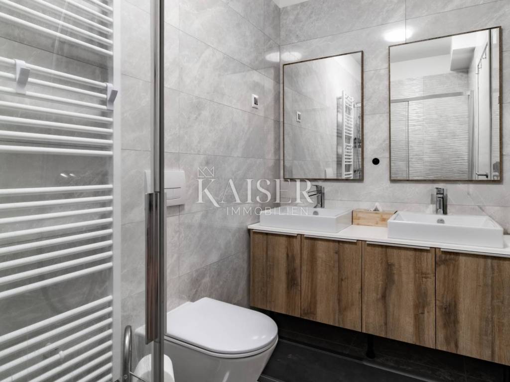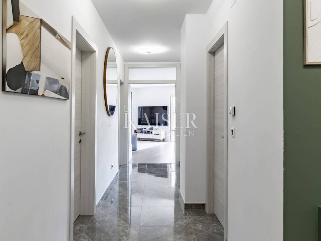 L'agenzia immobiliare Kaiser Immobilien offre uno splendido appartamento di lusso con vista mare: la casa perfetta per una famiglia o come investimento per tutti coloro che cercano un'elevata qualità della vita sulla costa adriatica. Questa proprietà si trova a Fiume, una delle città costiere più importanti della Croazia, nota per la sua ricca storia, le eccellenti infrastrutture e il crescente fascino internazionale. L'appartamento si trova al terzo piano di un moderno e curato palazzo dotato di ascensore, ha una superficie abitabile complessiva di 88 m2 e dispone inoltre di una loggia di 11 m2 con una vista aperta e rilassante sul mare. L'appartamento è composto da tre camere da letto, un bagno, una toilette separata e un ampio soggiorno collegato alla cucina e alla sala da pranzo in un open space. Inoltre, l'appartamento dispone anche di un ripostiglio, adibito a lavanderia, estremamente utile per le attività quotidiane della famiglia. L'intero spazio è arredato con cura e gusto, con mobili di lusso e viene venduto completamente arredato, compresi tutti gli elettrodomestici, rendendolo pronto per essere abitato senza ulteriori investimenti. Il riscaldamento è a gas a pavimento e ogni stanza è dotata di un proprio regolatore di temperatura, che consente il massimo controllo del comfort e l'efficienza energetica in tutti gli ambienti dell'appartamento. L'appartamento è inoltre dotato di due posti auto in garage con una superficie complessiva di 25 m2, nonché di un ripostiglio di 5 m2, che aumenta ulteriormente la funzionalità della vita quotidiana. La posizione dell'appartamento è ideale non solo per gli acquirenti nazionali, ma anche per quelli stranieri: Rijeka dista solo 15 minuti di auto da Abbazia, 20 minuti dall'aeroporto dell'isola di Veglia, mentre l'isola di Cherso, i laghi di Plitvice e altre risorse naturali sono facilmente raggiungibili per gite di un giorno. La città è inoltre ben collegata con le metropoli europee: Lubiana e Trieste sono raggiungibili in un'ora e mezza di macchina, Vienna e Monaco in circa cinque ore e Praga in meno di sette ore. Questa proprietà offre una rara opportunità di acquistare un appartamento lussuoso e completamente arredato sulla costa adriatica, in una città che sta diventando una destinazione sempre più ambita in cui vivere, lavorare o trascorrere le vacanze. Non perdere l'occasione e contattaci per maggiori informazioni o per fissare una visita.