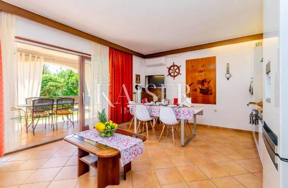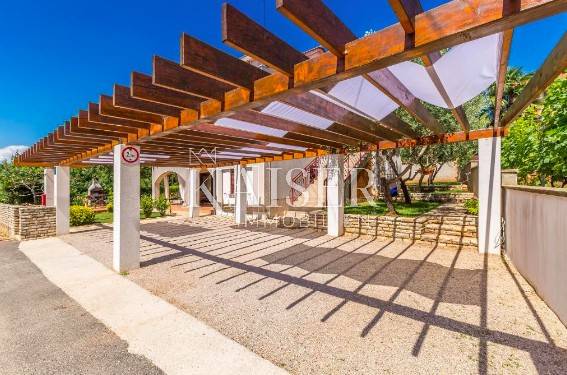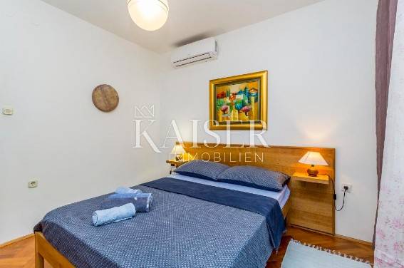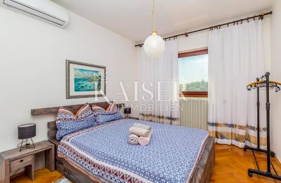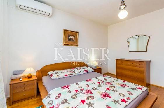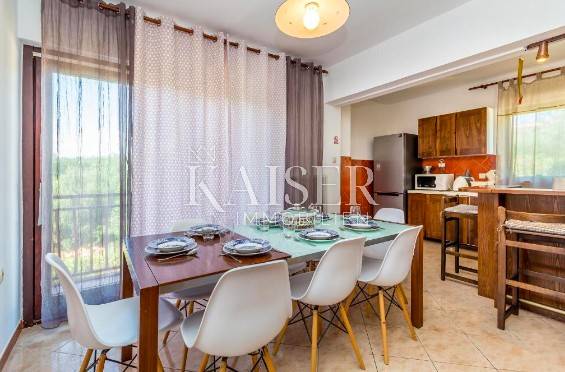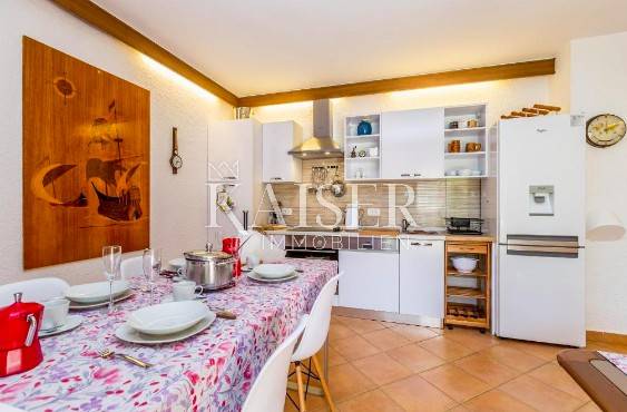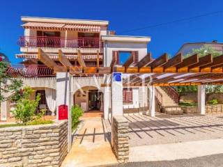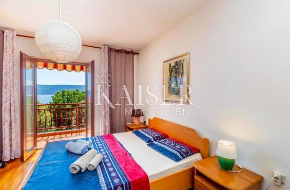 Kaiser immobilien offre una casa indipendente sull'isola di Krk a Pinezići, a 600 m dal mare. La casa è composta da tre appartamenti e un monolocale, ciascuno con ingresso indipendente. Al piano terra c'è un appartamento e un monolocale, mentre al primo e secondo piano della casa c'è un appartamento a due piani. Al piano terra si trova un appartamento con due camere da letto, un soggiorno, un bagno, una cucina con sala da pranzo e un ampio terrazzo. C'è anche un monolocale con bagno al piano terra. Al primo piano della casa ci sono due camere da letto, un bagno, un disimpegno, un ampio soggiorno collegato alla cucina e sala da pranzo, e un terrazzo con vista mare. Al secondo piano ci sono quattro camere da letto, un bagno e un terrazzo con bellissima vista. C'è un camino da giardino nel giardino paesaggistico con varie piante mediterranee e c'è abbastanza spazio per costruire una piscina.