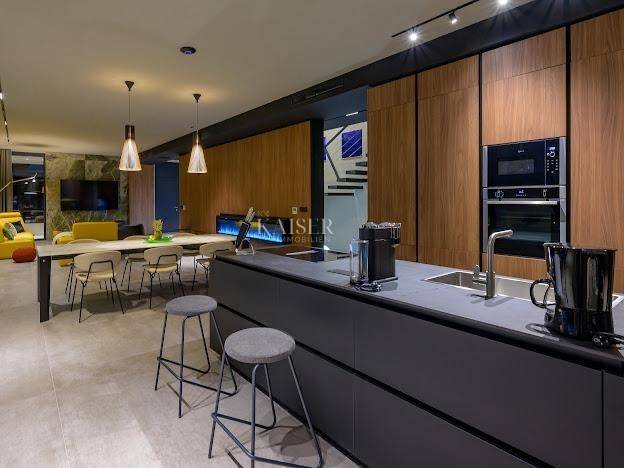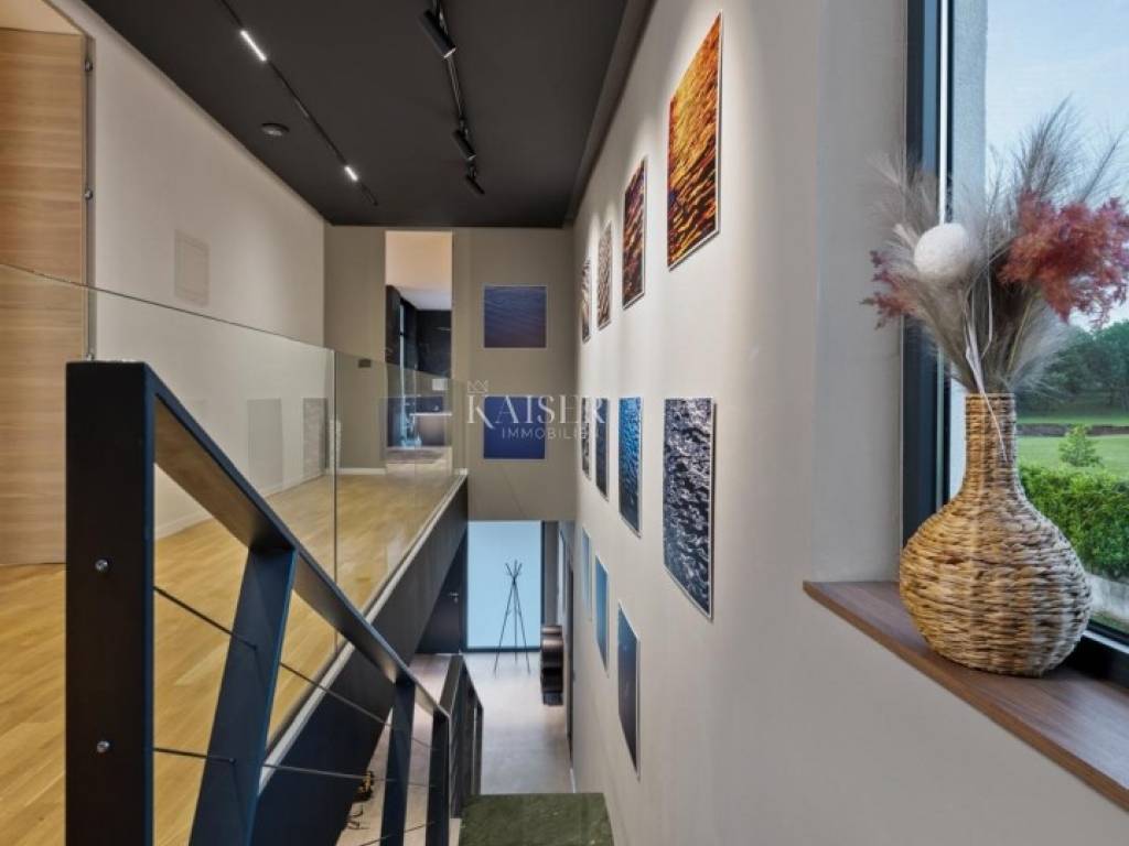 Kaiser Immobilien presenta una bellissima villa di design costruita nel 2024, situata nel tranquillo paesaggio dell'Istria nordoccidentale. La villa offre un rifugio perfetto con vista sulla natura vicino a Grisignana e Oprtlje - due magiche città sulle colline con una ricca scena culturale e un fascino fiabesco. Questa villa di lusso, firmata dal rinomato studio italiano Calligaris e dal team di progetto Studio 92, offre lusso e comfort contemporanei su 2.169 m2 di ampio terreno con la possibilità di costruzione aggiuntiva di un edificio più piccolo o di un garage. Le principali caratteristiche della villa: Superficie totale: 682 m2 (300 m2 di spazio interno + 222 m2 di terrazze coperte + 160 m2 di terrazze scoperte) Esterno: Ampia terrazza, zona solarium e piscina (61 m2), ideale per godersi il sole relax diurno e serale Interni: Ampio ingresso con guardaroba, wc, lavanderia, locale tecnico, ripostiglio e ampio soggiorno open space soggiorno con cucina e sala da pranzo Soggiorno: mobili di alta qualità, apparecchiature audiovisive, camino ambientale con cambio di colore, che fornisce calore nelle giornate più fredde Cucina: dotata di marchi premium come Neff, Rosenthal e Bosch Layout e design di camere da letto: Al primo piano si trovano tre ampie camere da letto, ciascuna con bagno privato dotate di riscaldamento a pavimento e materiali di prima qualità. Ogni camera offre l'accesso ad una terrazza privata con un'incantevole vista sulla natura istriana. Le camere sono dotate del programma Hespo 5* e tutti gli elementi in ceramica provengono dal marchio italiano Florim Bologna. Attrezzature e design al top: Illuminazione: Guzzini, Artemide, Ticino Bagni: Serrature Philippe Starck, Hans Grohe, attrezzature Axor Mobili: Calligaris Italia, B&B Italia, Kartell Italia, Dondi Salotti Cucina: Global, Rosenthal, Liebherr, Bosch, Mono A, Napoleon Soggiorno: caminetti Deco Maribor, aria condizionata Mitsubishi per riscaldamento e raffreddamento Posizione: La villa si trova vicino a Grisignana, il centro culturale e artistico dell'Istria, e alla pittoresca Oprtalj, con le sue numerose strade affascinanti e paesaggio idilliaco. Tutte le strutture per godersi lo stile di vita istriano sono disponibili a pochi minuti di macchina in un ambiente naturale. Ogni dettaglio è stato scelto con cura per creare un ambiente sofisticato ed esclusivo che si integra perfettamente con l'ambiente lussuoso e l'estetica dello spazio. La villa rappresenta una perfetta combinazione di stile eccezionale e comfort. Questa proprietà di lusso offre un'opportunità unica per godere del design di alto livello e della natura tranquilla in una delle regioni più ambite dell'Istria. Distanza della proprietà dalle città dell'UE: Trieste 49 km Lubiana 125 km Monaco di Baviera 544 km Vienna/Wien 506 km Budapest 572 km Distanza della proprietà dagli aeroporti: Aeroporto di Pola 80 km Aeroporto di Trieste 90 km Contattaci al +385 915404646 per ulteriori informazioni e per programmare un tour. Kaiser Immobilien – Il vostro partner per immobili di lusso in Istria.