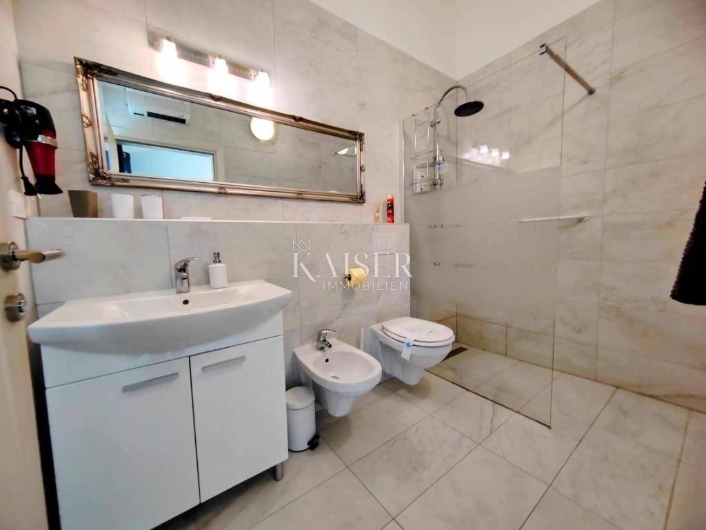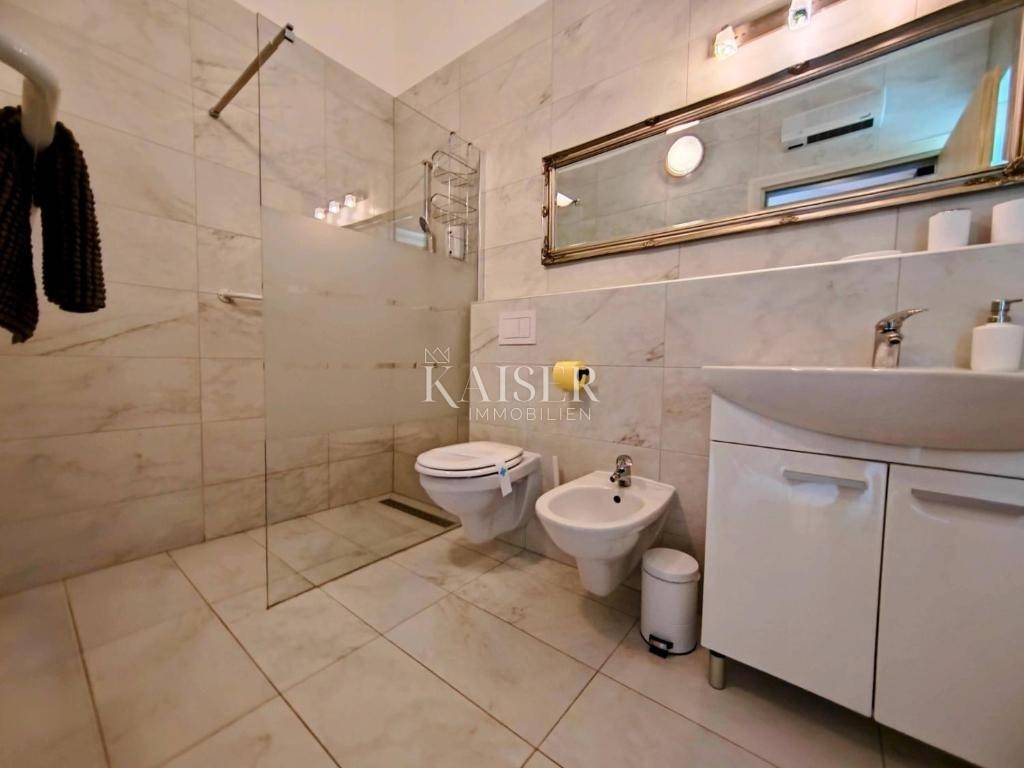 In vendita – Affascinante casa con privacy e giardino sull'isola di Krk. Kaiser Immobilien è orgogliosa di presentare questa incantevole casa, situata su un ampio e riservato terreno di 1.700 m² a Kras, nel cuore dell'isola di Krk. Immersa nella natura incontaminata e ai margini della zona edificabile, questa proprietà offre completa privacy e tranquillità, perfetta per chi cerca una fuga dal trambusto cittadino e dallo stress quotidiano. La casa di circa 100 m² è stata progettata con cura e arredata con gusto, con particolare attenzione al comfort e all'armonia con l'ambiente. L'ampio soggiorno con camino a legna è collegato alla cucina e alla sala da pranzo in un open space, rendendo il centro della casa ideale per il relax durante tutto l'anno. La zona giorno conduce a una terrazza coperta di 40 m², esposta a sud, dove si trovano anche una zona barbecue con vista sul lussureggiante giardino paesaggistico e una vasca idromassaggio integrata nell'ambiente naturale. La casa dispone di due camere da letto, ciascuna con il proprio bagno, e una di esse ha un soppalco aggiuntivo, ideale per leggere, lavorare o aggiungere un letto. All'ingresso si trova anche un bagno per gli ospiti, mentre la lavanderia e il ripostiglio offrono ulteriore funzionalità. Il cortile, simile a un piccolo giardino botanico, è stato progettato con cura e ricco di piante autoctone mediterranee che riempiono l'aria di inebrianti profumi naturali. Ogni angolo del giardino offre un luogo tranquillo dove sedersi, all'ombra del bosco o al sole, perfetto per un vero riposo e relax. Sul retro della casa si trova un'altra terrazza per godersi le ore serali in compagnia dei suoni della natura. Tutti gli ambienti della casa sono climatizzati e un ulteriore comfort è garantito dalla TV satellitare in ogni stanza, dalla videosorveglianza con otto telecamere esterne, da un sistema di allarme e da un impianto solare che copre l'intero fabbisogno elettrico dell'edificio. La casa viene venduta completamente arredata, ad eccezione degli effetti personali e di alcune opere d'arte, ed è pronta per essere abitata senza ulteriori investimenti. L'isola di Veglia, nota anche come "l'isola d'oro", coniuga perfettamente bellezze naturali, patrimonio culturale e uno stile di vita moderno. Lungo tutta l'isola si snodano sentieri e piste ciclabili che attraversano pinete, vigneti, uliveti e costeggiano il mare, fino a raggiungere spiagge nascoste e città storiche. Carso, tranquillo insediamento nell'entroterra dell'isola, offre una posizione ideale per vivere o trascorrere le vacanze. Veglia è una delle isole più accessibili dell'Adriatico grazie al ponte che la collega alla terraferma. L'accessibilità della posizione ne aumenta ulteriormente il valore: Lubiana - 160 km (circa 2 ore di auto) Zagabria - 180 km (circa 2 ore di auto) Fiume - 50 km (circa 45 minuti) Trieste - 130 km (circa 2 ore) Graz - 280 km (circa 3,5 ore) Vienna - 440 km (circa 5 ore) Monaco di Baviera - 550 km (circa 6 ore) Budapest - 430 km (circa 5 ore) L'aeroporto di Fiume (Omišalj), situato sull'isola stessa, consente un facile arrivo da altri paesi durante tutto l'anno. Per maggiori informazioni o per fissare un appuntamento per una visita, contattare: Nelica Arsenijević 091/925 4809 nelica@kaiser-immobilien.hr Questa casa offre più di una semplice abitazione: offre uno stile di vita in completa armonia con la natura.