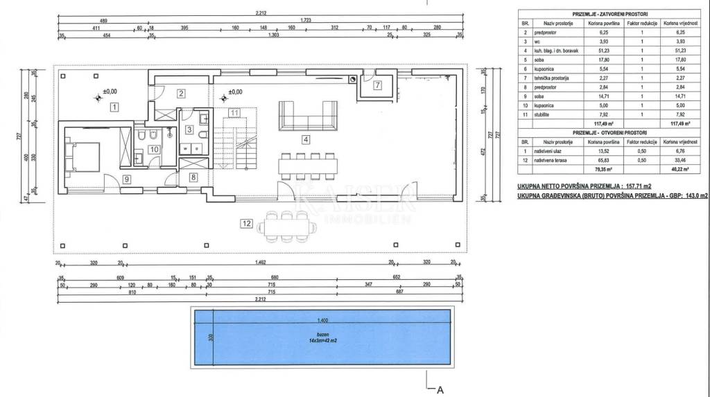 Rakalj è un incantevole villaggio istriano situato sulla costa orientale della penisola. Circondato da una natura incontaminata, verdi colline e dalle acque cristalline del Mar Adriatico, Rakalj offre pace, autenticità e un'atmosfera autenticamente mediterranea. Il luogo è noto per la sua ricca storia, l'architettura tradizionale, i resti di un antico castello e la chiesa di Sant'Agnese, che offre una vista spettacolare sul mare e sull'isola di Cherso. È la scelta ideale per chi cerca pace, privacy e la vicinanza alle bellezze naturali dell'Istria. Kaiser Immobilien vi presenta una villa di 290,85 m², situata in una posizione unica e assolutamente riservata a Rakalj, immersa nella natura incontaminata, che di per sé rappresenta il lusso più raro al giorno d'oggi. Il terreno offre un'incantevole vista ininterrotta sul mare e sul verde, che è mozzafiato e garantisce completa tranquillità e privacy. La villa è distribuita su due piani, piano terra e primo piano, ed è progettata con particolare attenzione al lusso contemporaneo, ai toni naturali e all'elegante semplicità. L'ingresso della casa si apre su una terrazza coperta di 13,52 m², dove si viene accolti da un'imponente porta alta 2,50 m, che introduce in un interno raffinato. Subito all'ingresso, il disimpegno di 6,25 m² offre spazio per armadi a muro, mentre sulla destra si trova un bagno per gli ospiti con spazio per una lavatrice. La parte centrale del piano terra è una lussuosa zona giorno di 74,57 m², inondata di luce naturale grazie alle ampie vetrate che aprono completamente lo spazio verso l'ambiente circostante. Il soggiorno è dotato di un camino che crea un'atmosfera ancora più suggestiva, mentre un lussuoso divano in pelle di bufalo imbottito con piume e una poltrona Moroso cucita a mano conferiscono all'ambiente un carattere e un comfort speciali. La cucina su misura nei toni dell'oliva, con piano di lavoro in pietra calcarea San Pietro, incarna una combinazione di qualità ed estetica. Gli elettrodomestici di alta qualità integrati dei marchi Bosch e Miele si integrano perfettamente nel design: piano cottura a induzione, forno, microonde, scaldavivande, lavastoviglie, il tutto accuratamente coordinato con il concept della villa. Il piano terra ospita inoltre un'ampia camera da letto (14,71 m²) con bagno privato (5 m²) e accesso diretto alla piscina e alla terrazza coperta. Una scala in legno conduce al primo piano, dove si trovano altre due lussuose camere da letto con vista mare. La prima (23,01 m²) con bagno privato (6,12 m²) si trova sul lato destro del corridoio, mentre la seconda (25,20 m²) con bagno (6,10 m²) si trova sul lato sinistro. Entrambe le camere hanno accesso a un'ampia terrazza di 158,11 m² dalla quale si gode di una vista panoramica sul mare, sull'isola di Cherso e sul verde circostante, una vista che non può essere ostruita, poiché di fronte alla casa e al terreno si trovano foreste croate protette. Sulla terrazza è inoltre presente lo spazio per una vasca idromassaggio, che accresce ulteriormente l'esclusività dell'offerta. L'intera villa è dotata di riscaldamento a pavimento tramite pompa di calore, infissi in alluminio di alta qualità con triplo vetro e pareti vetrate alzanti-scorrevoli. L'isolamento della facciata è di 10 cm, così come quello del tetto piano. Gli interni e gli esterni sono rivestiti con ceramiche italiane di alta qualità e la sicurezza è garantita da un sistema di telecamere e allarme. Sul terreno di 1.400 m² si trova un'imponente piscina di 42 m² (14x3 m) con funzione idromassaggio e dispositivo per il nuoto controcorrente. È inoltre presente una cucina estiva completamente attrezzata con barbecue, ideale per godersi e socializzare nelle calde serate estive. Un sistema di irrigazione automatico si prende cura delle piante mediterranee che circondano il terreno e l'intera proprietà è recintata, ulteriormente evidenziata da un muro a secco costruito a mano che unisce tradizione e natura. Il valore speciale di questa proprietà è dato dalla sua posizione: privacy garantita e una vista libera che non verrà mai persa. La prima spiaggia è a soli 10 minuti a piedi, un negozio e un ristorante sono a tre minuti di auto, mentre Stari Rakalj, uno dei luoghi più belli della zona, è facilmente raggiungibile. Questa villa rappresenta un'opportunità estremamente rara sul mercato: un perfetto mix di lusso, natura, atmosfera mediterranea e superba architettura, ideale per coloro che cercano più di una semplice casa: cercano un vero stile di vita. Vicinanza ai servizi: Ristorante - 1,4 km Bar - 1,4 km Negozio - 1,3 km Mare/spiaggia - 1,1 km Centro storico di Rakalj - 3 km Krnica - 4 km Pola - 26 km Aeroporto - 20 km Distanza dalle principali città: Rakalj - Lubiana: 190 km Rakalj - Vienna: 590 km Rakalj - Budapest: 601 km Rakalj - Praga: 815 km Rakalj - Monaco di Baviera: 610 km Rakalj - Zagabria: 260 km La commissione di agenzia per l'acquirente è del 3% + IVA e viene pagata in caso di acquisto di un immobile, al momento della conclusione del primo atto legale. Gli acquirenti interessati possono visionare l'immobile solo previa firma di un contratto di mediazione immobiliare. CODICE ID: 127-154 Se desideri visitare personalmente l'immobile, contatta: Jennifer Hofmann E-mail: jennifer@kaiser-immobilien.hr Tel: +385-91-515-0887 http://kaiser-immobilien.hr/
