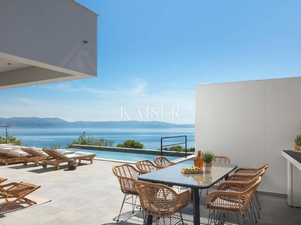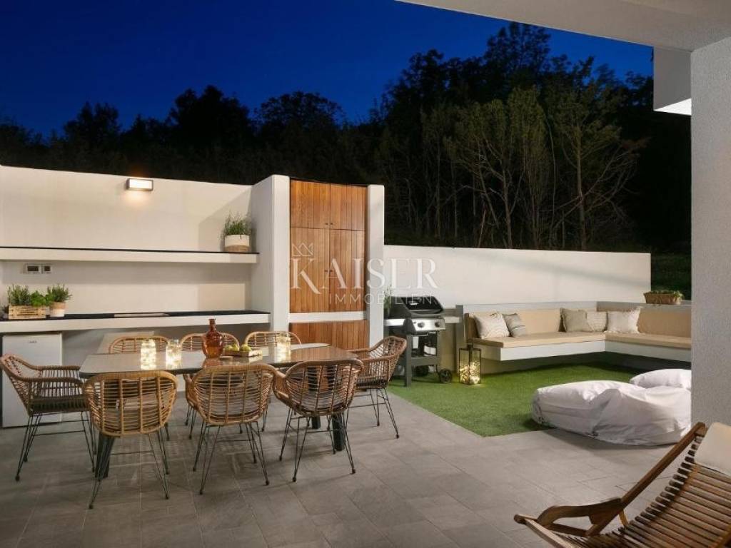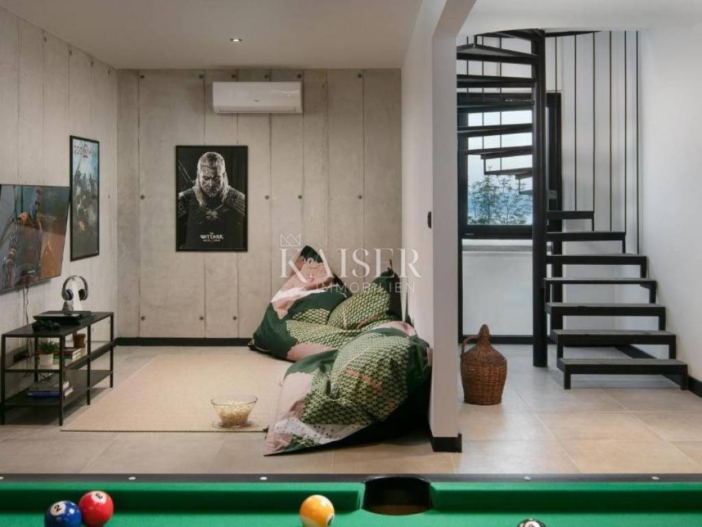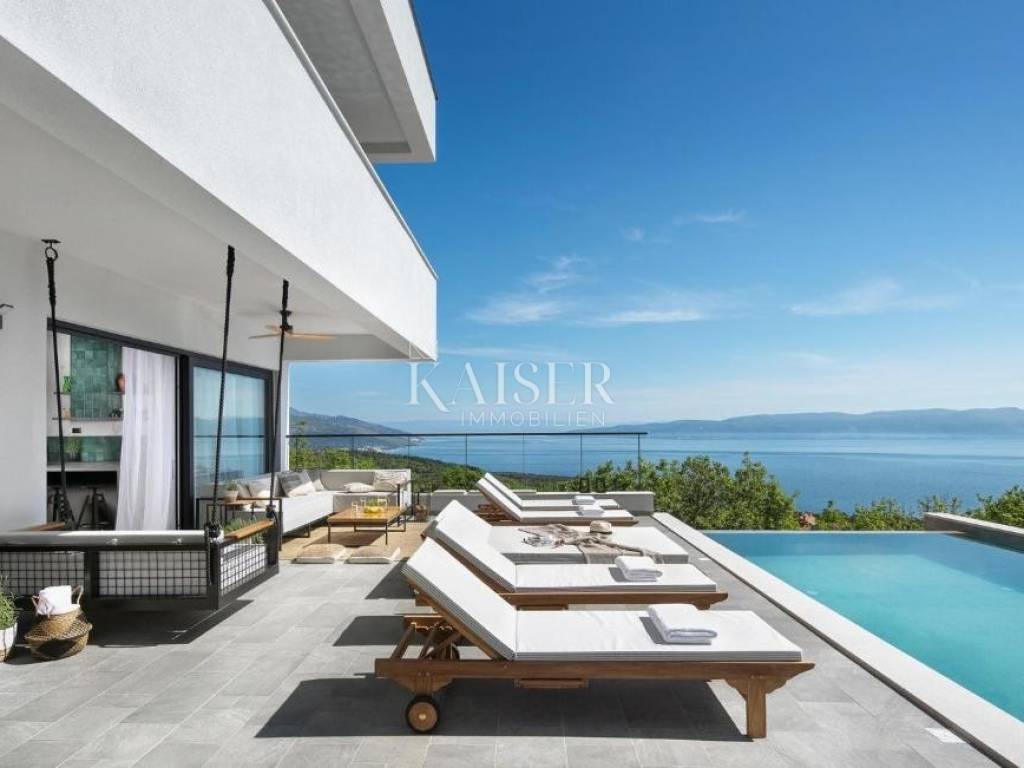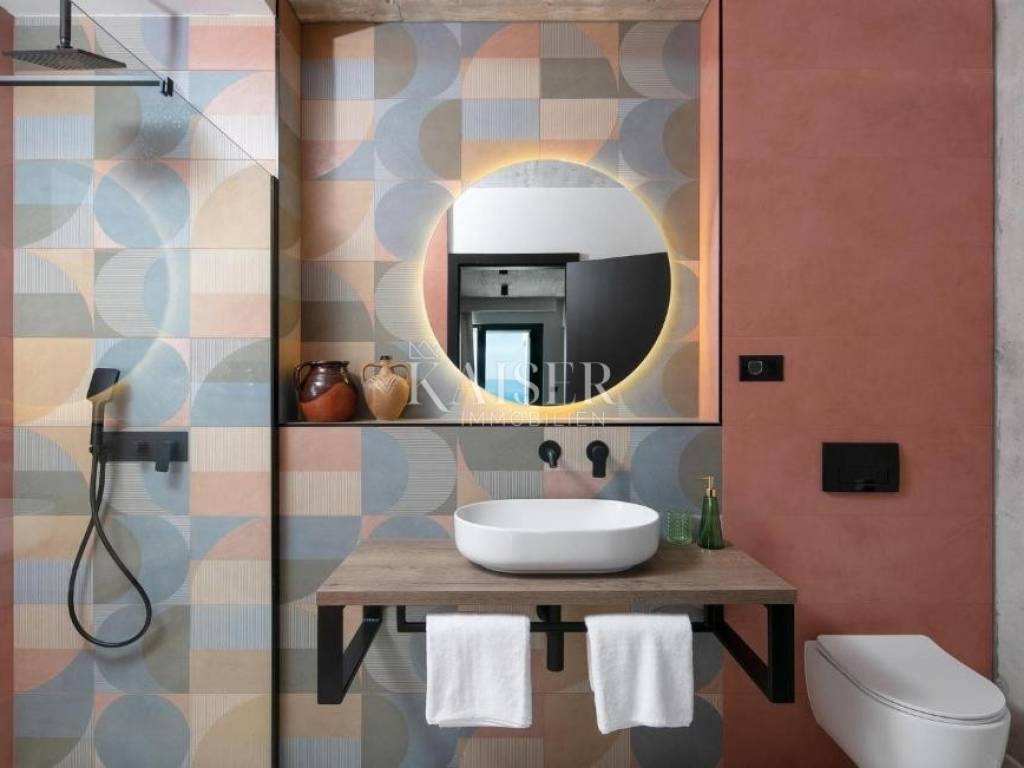 Kaiser Immobilien presenta una villa di design con vista panoramica sul mare. Situata sulla costa orientale dell'Istria, in una zona tranquilla vicino alla città di Albona, è il rifugio perfetto per chi cerca qualità, privacy e vicinanza al mare. Questa proprietà dal design moderno è stata costruita con particolare attenzione a materiali e dettagli di alta qualità, offrendo una combinazione di stile contemporaneo e comfort. Costruita in cemento armato con elevata resistenza antisismica, è dotata di rivestimenti per pareti e pavimenti in ceramica italiana di alta qualità. La villa si trova su un terreno di 827 m² e offre 396 m² di superficie utile netta distribuiti tra seminterrato, piano terra e primo piano. Il seminterrato ospita una sauna, un'area benessere, una sala relax, attrezzature per la piscina e ulteriore spazio di stoccaggio. Il piano terra offre un ampio open space per socializzare e, con le sue ampie vetrate, offre una vista panoramica ininterrotta sul mare, sulle isole e sull'intero Quarnero, uno scenario che diventa parte della vita quotidiana. Offre inoltre una spaziosa camera da letto con bagno e terrazza e un ulteriore bagno per gli ospiti. Al piano superiore si trovano tre spaziose camere da letto con bagno privato e terrazze con vista sul mare. La camera da letto principale ha una superficie totale di 39 m² e offre un comfort di classe alberghiera grazie alla sua spaziosità. L'aria condizionata è disponibile in ogni stanza, mentre i bagni sono dotati di riscaldamento elettrico a pavimento. Il giardino è stato attentamente progettato per offrire il massimo comfort, privacy e un'esperienza visiva che rimarrà impressa nella memoria. Ogni angolo dello spazio esterno è stato progettato con cura, con particolare attenzione all'atmosfera mediterranea, alla funzionalità e alle viste spettacolari. Offre un'ampia piscina con area prendisole e una terrazza coperta, ed è orientato per garantire la massima luce solare durante il giorno fino a tarda sera. Offre parcheggio per diverse auto e dispone anche di una stazione di ricarica per veicoli elettrici. La connessione Internet Starlink garantisce un'elevata sicurezza e un segnale Wi-Fi di qualità su tutti i piani. La proprietà viene venduta completamente arredata e pronta per essere abitata. A soli 3 minuti di auto si trovano le acque cristalline del Mar Adriatico e la prima spiaggia, mentre il centro storico di Albona è a soli 10 minuti di distanza, con una ricca offerta culturale e gastronomica. La famosa destinazione turistica di Rabac è raggiungibile in 15 minuti di auto. Numerose spiagge e calette nascoste saranno a portata di mano. La posizione è nota per la sua natura incontaminata, le spiagge selvagge, le passeggiate sul lungomare e i numerosi sentieri escursionistici. Tutti i servizi essenziali, come un medico, una scuola, negozi e ristoranti, sono raggiungibili in 10 minuti di auto. La città di Pola e l'aeroporto più vicino sono raggiungibili in 45 minuti di auto. Per ulteriori informazioni, contattare l'agente. Mario Pintar mario@kaiser-immobilien.hr +385 91 543 2750