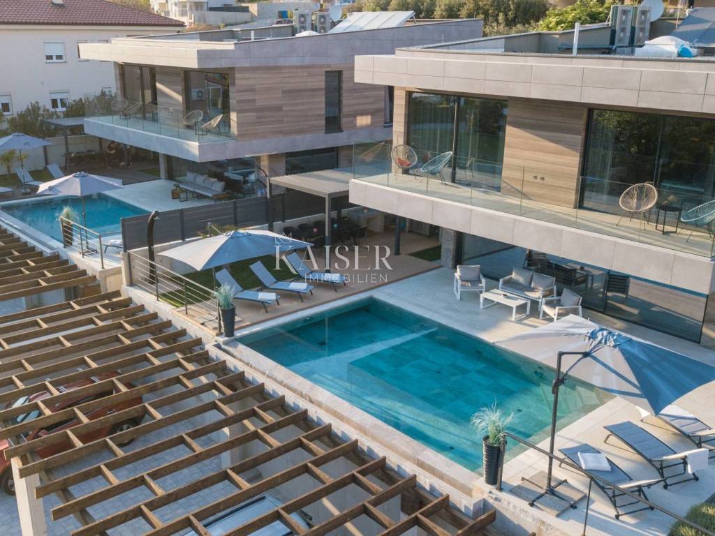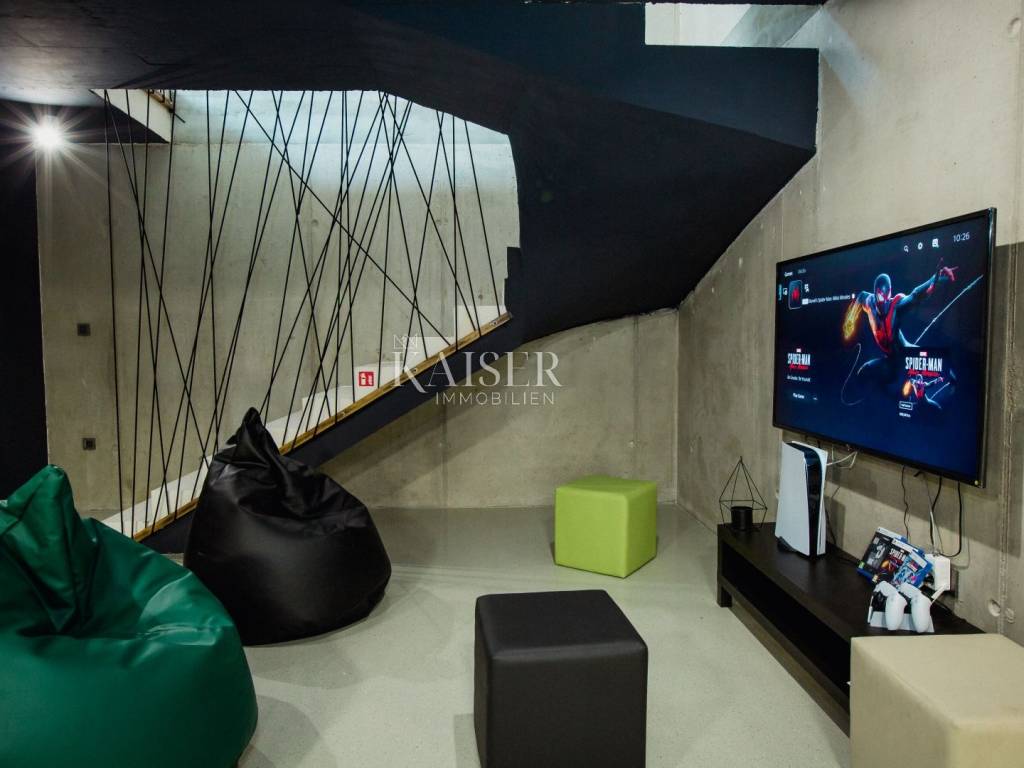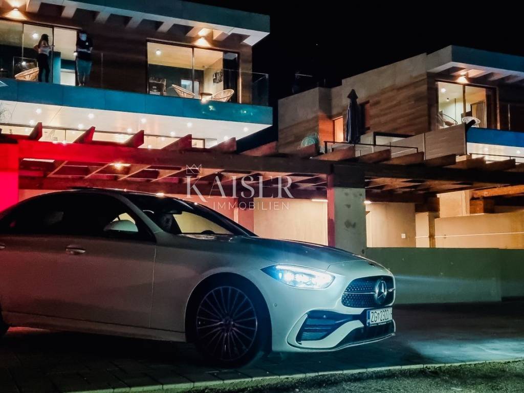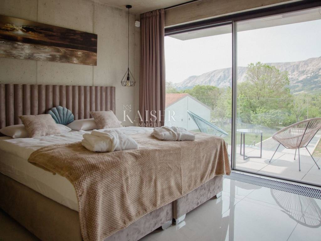 Kaiser immobilien offre un'esclusiva villa con piscina a Baška sull'isola di Krk, a 500 m dal mare. La villa è circondata da uno splendido scenario, una combinazione unica delle montagne che sovrastano Baška e del mare blu a portata di mano. Questa proprietà con una superficie totale di 240 m2 si distingue per il suo eccezionale stile di decorazione e dettagli di design. Il piano terra è composto da un ampio soggiorno illuminato da pareti di vetro, che comprende soggiorno, sala da pranzo e cucina, oltre a servizi igienici e una bella scala che collega tutti e tre i piani di questa villa: seminterrato, piano terra e primo piano . Al piano superiore abbiamo 4 camere da letto, ognuna con il proprio bagno. Le camere si aprono su un'ampia terrazza vetrata con vista sul mare. Nel seminterrato, che è la vera gemma nascosta di questa proprietà, abbiamo una sala benessere con sauna e jacuzzi, una sala sociale e una sala macchine, un ripostiglio e una lavanderia. Nella costruzione della villa sono stati utilizzati materiali di prima qualità. Nell'isolamento sono installati uno strato di lana di roccia di 12 cm, facciata autoventilante, pannelli solari, falegnameria di alta qualità, sistema di riscaldamento e raffrescamento a pavimento, ventilconvettori, che insieme si traducono in un consumo energetico estremamente basso della casa A++ . Una piscina riscaldata di 40 m2 si trova in un giardino armoniosamente organizzato e meticolosamente curato di 485 m2 circondato da piante e alberi mediterranei. C'è anche una cucina estiva con grill a gas e uno spazio per socializzare e giocare. All'ingresso della proprietà sono inoltre presenti 4 posti auto e un garage, dal quale si accede direttamente al piano interrato. Sentiti libero di contattare il tuo agente per qualsiasi domanda riguardante questa proprietà unica. Ristoranti: 200 m Negozio: 200 m Spiaggia: 500 m Aeroporto: 45 km