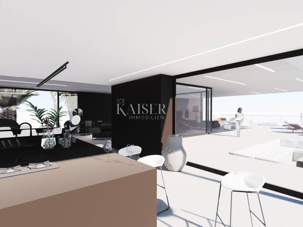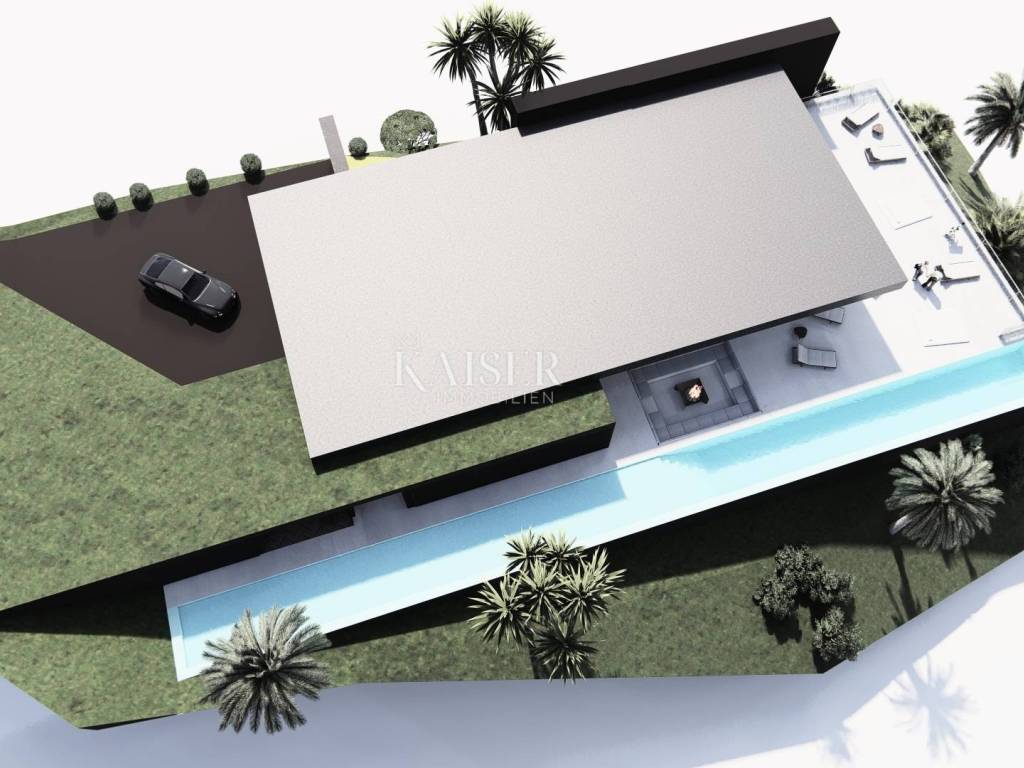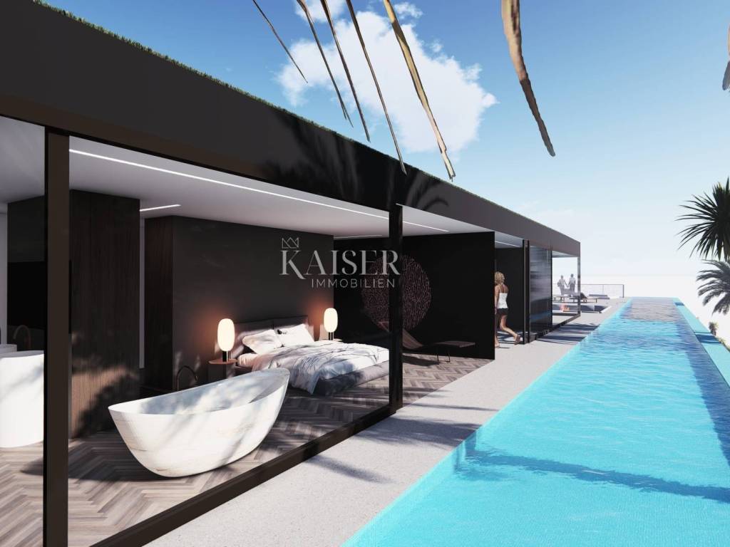Kaiser Immobilien presenta un esclusivo terreno edificabile di 1822 m2 con l'attuale processo di ottenimento del permesso di costruire. Il terreno è situato in posizione ideale a soli 100 m dal mare, ideale per costruire un'imponente villa con una bellissima vista sul mare e sul Quarnero, di forma rettangolare, con orientamento a sud che garantisce un ambiente soleggiato per tutto il giorno. Il progetto principale prevede una villa con un totale di 618 m2 di superficie abitabile netta e ulteriori 411 m2 di spazio esterno, comprese zone prendisole, terrazzi e terrazzi coperti. La villa è stata progettata per l'affitto turistico ed è composta da cinque ampie camere, ciascuna con il proprio bagno, e da una serie di altri locali funzionali. Sottolineiamo in particolare le grandi pareti di vetro sulla parte anteriore della villa, che forniscono all'edificio molta luce naturale e una bellissima vista sul mare e sul Quarnero. Per maggiori informazioni o per un tour non esitate a contattarci!