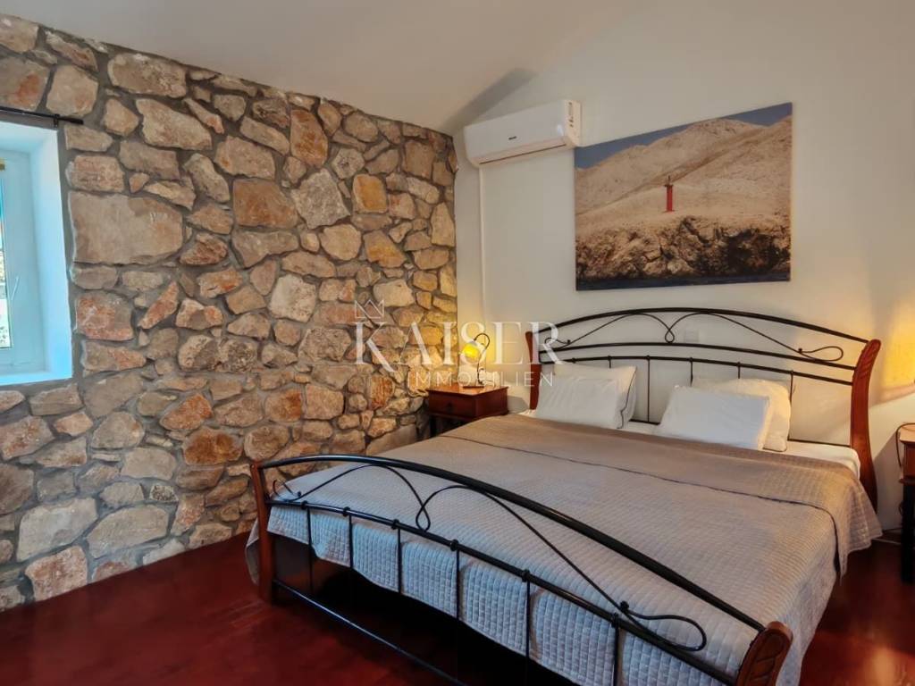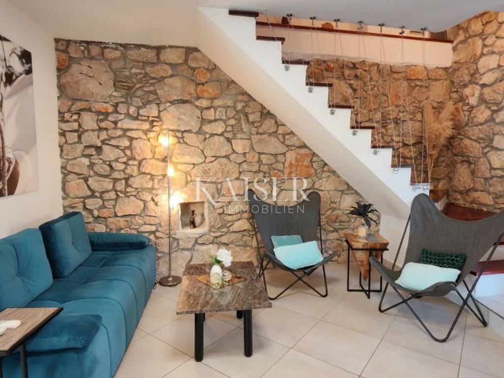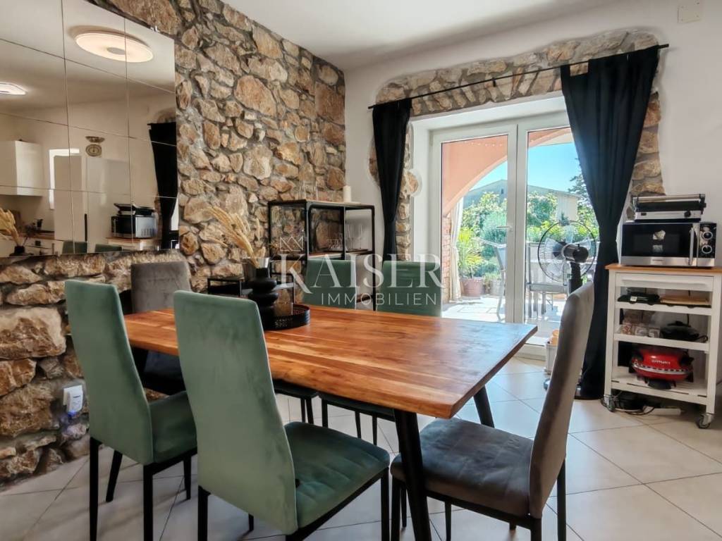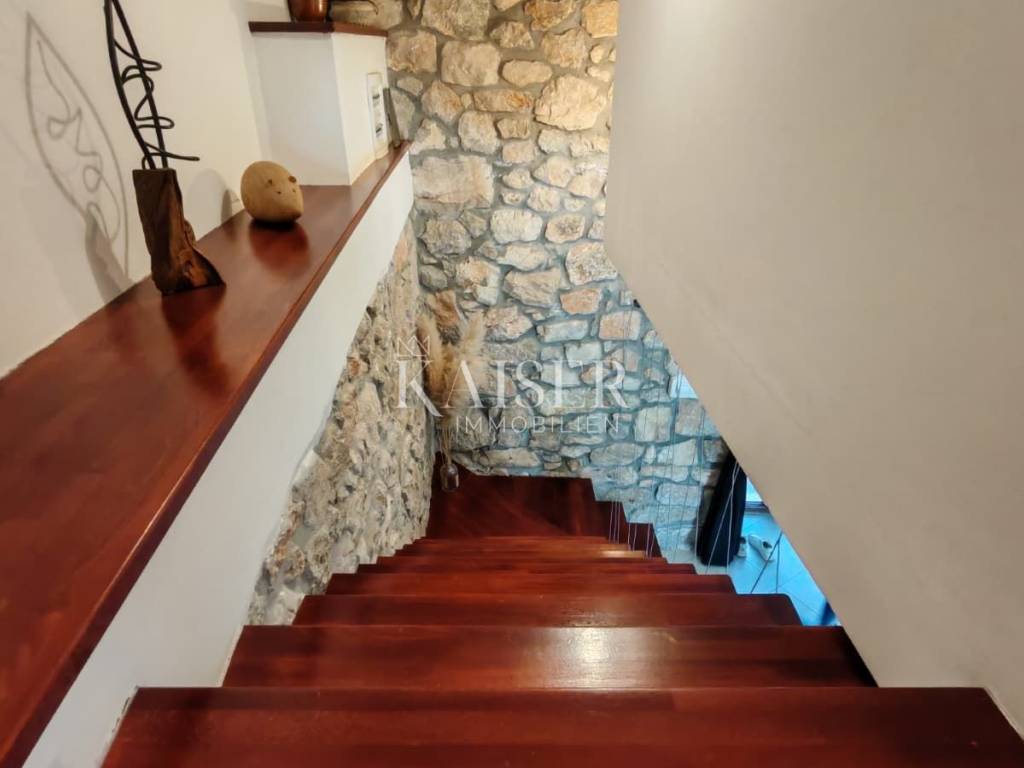 Il comune di Dobrinj si trova nella parte nord-orientale dell'isola di Krk ed è uno dei comuni insulari più antichi, ricco di storia e patrimonio culturale. Il centro del comune, l'omonimo insediamento Dobrinj, è un luogo pittoresco situato su una collina con una splendida vista sul paesaggio circostante. Il comune comprende diversi insediamenti, alcuni dei quali si trovano in riva al mare, come Šilo e Čižići, mentre altri si trovano nell'entroterra dell'isola, circondati da una natura incontaminata. Kaiser Immobilien presenta una graziosa casa in pietra di 105 m², situata su un terreno di 425 m², con piscina e giardino paesaggistico. Questa splendida proprietà si trova in una posizione estremamente tranquilla, in una strada chiusa vicino alla foresta, offrendo la perfetta armonia tra privacy e ambiente naturale. La casa è progettata su due piani, collegati da una scala interna, mentre il piano terra costituisce il cuore della casa. L'ingresso conduce ad un ampio soggiorno, armoniosamente collegato alla sala da pranzo, mentre la moderna cucina si trova in uno spazio separato, ma funzionalmente collegato. La cucina è completamente attrezzata con un nuovo frigorifero Candy, forno e piano cottura Bosch e lavastoviglie, offrendo tutte le condizioni necessarie per un'esperienza culinaria. Su questo piano si trova anche il primo bagno, dotato di doccia e WC, di uno scaldabagno Končar e di una lavatrice Siemens. Una scala interna conduce al primo piano, dove si trovano due spaziose camere da letto e un grande bagno di 7 m². Il bagno è dotato di vasca da bagno e WC, di uno scaldabagno Ariston da 80 litri e di riscaldamento a pavimento che garantisce un comfort particolare. Un ulteriore vantaggio di questo piano è l'accesso ad un'ampia terrazza, ideale per rilassarsi e godersi il silenzio della natura. Le camere sono spaziose e luminose: una si affaccia sul cortile e sul parcheggio, mentre l'altra ha accesso a una terrazza con vista sulla natura e sulla piscina. Dalla sala da pranzo al piano terra si accede ad una terrazza coperta di 10 m², dalla quale si accede direttamente alla piscina di 8 x 4 metri e profonda 1,50 metri, dotata di sistema di nuoto controcorrente. L'intero giardino è dotato di un impianto di irrigazione automatico, garantendo un ambiente esterno sempre pulito e curato. Davanti alla casa c'è un parcheggio per due auto, mentre la zona coperta consente di riporre moto, biciclette o anche di avere un tavolo e delle sedie per godersi l'ombra. Questa casa ha lo status di bene culturale ed è stata completamente ristrutturata nel 2009, con un ampliamento nello stile tradizionale in pietra, secondo le norme della Direzione per la tutela del patrimonio culturale. Le pareti spesse da 40 a 60 centimetri garantiscono un ottimo isolamento, mentre su una parte della casa è installata una facciata. Il tetto è realizzato in lastre di cemento ed è in ottime condizioni. Il riscaldamento della casa è garantito da stufe a legna al piano terra e al piano superiore. Attualmente la casa è dotata di una fossa settica di 3 x 4 metri, che finora non ha avuto bisogno di essere svuotata. Inoltre, l'immobile può essere connesso a una rete internet ottica veloce, che consente di lavorare e comunicare senza interruzioni. Questa graziosa casa in pietra è perfetta per chi cerca una tranquilla casa di famiglia, una casa per le vacanze o un investimento in affitti turistici, poiché la casa è già classificata e viene già affittata. La combinazione di architettura tradizionale, comfort moderni e posizione eccezionale lo rende una vera rarità sul mercato. Vicinanza ai servizi: Malinska: 3 km Negozio: 150 m Ristorante: 1,4 km Spiaggia: 4 km Parco giochi: 100 m Punto panoramico: 600 m Pista ciclabile: 150 m Krk: 14 km Aeroporto: 16 km Dobrinj- Lubiana: 150 km Dobrinj- Budapest: 500 km Dobrinj- Monaco di Baviera: 550 km Dobrinj- Vienna: 520 km Dobrinj- Praga: 850 km La commissione d'agenzia per l'acquirente è del 3% + IVA e viene pagata in caso di acquisto di un immobile, al momento della conclusione del primo atto legale. Gli acquirenti interessati potranno visionare l'immobile solo dopo aver firmato un contratto di intermediazione immobiliare. CODICE ID: 127-082 Se desideri visitare personalmente la proprietà, contatta: Jennifer Hofmann E-mail: jennifer@kaiser-immobilien.hr Tel: +385-91-515-0887 http://kaiser-immobilien.hr/