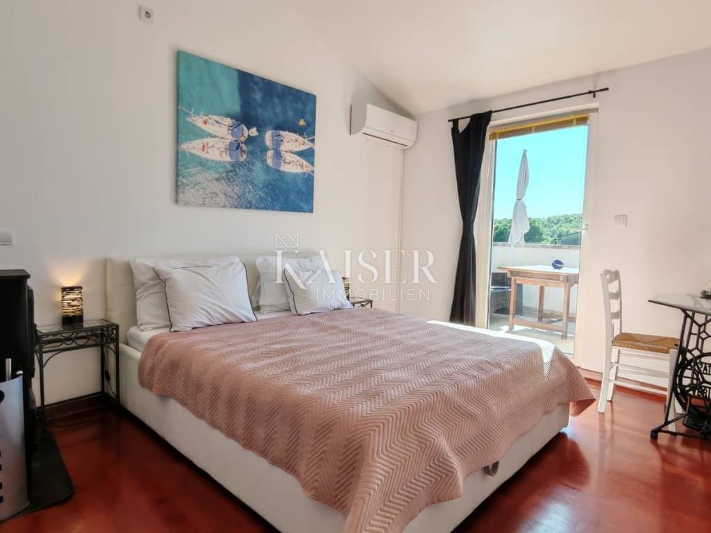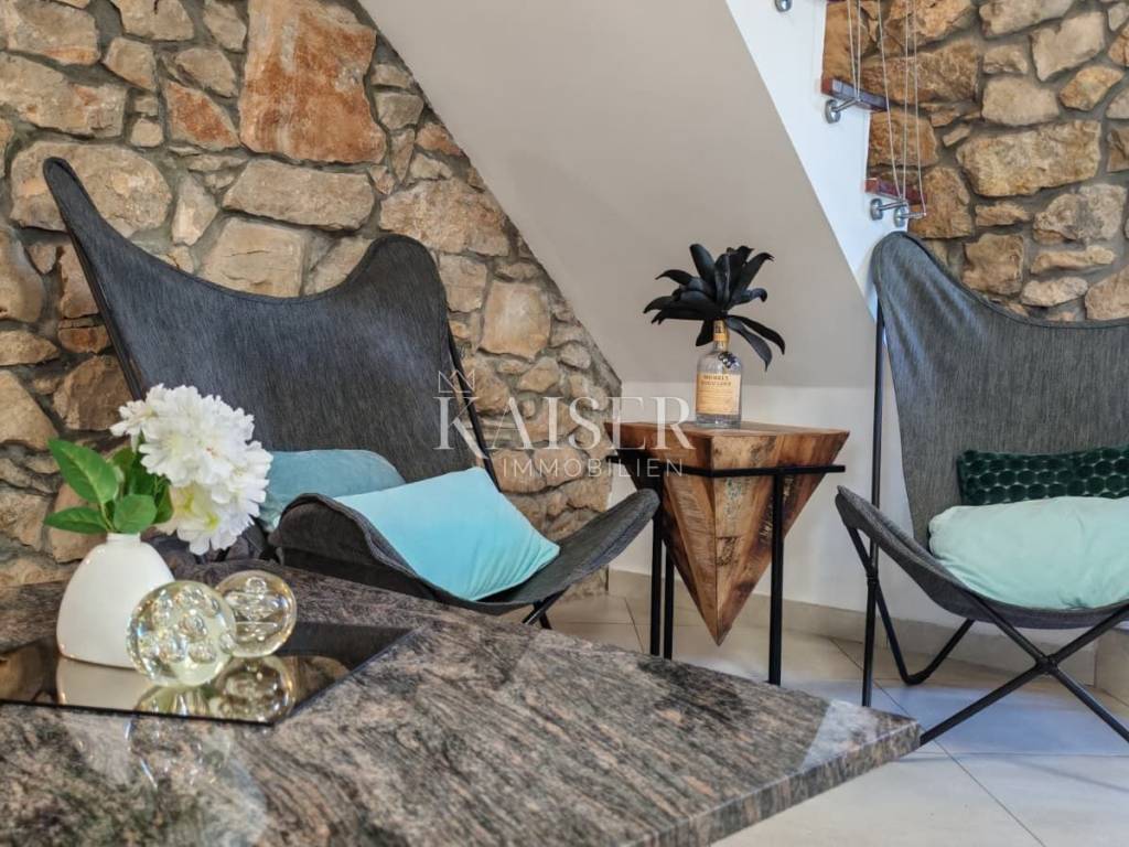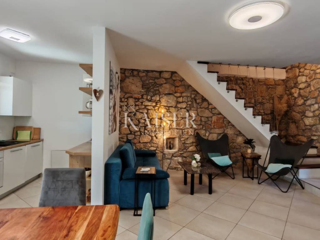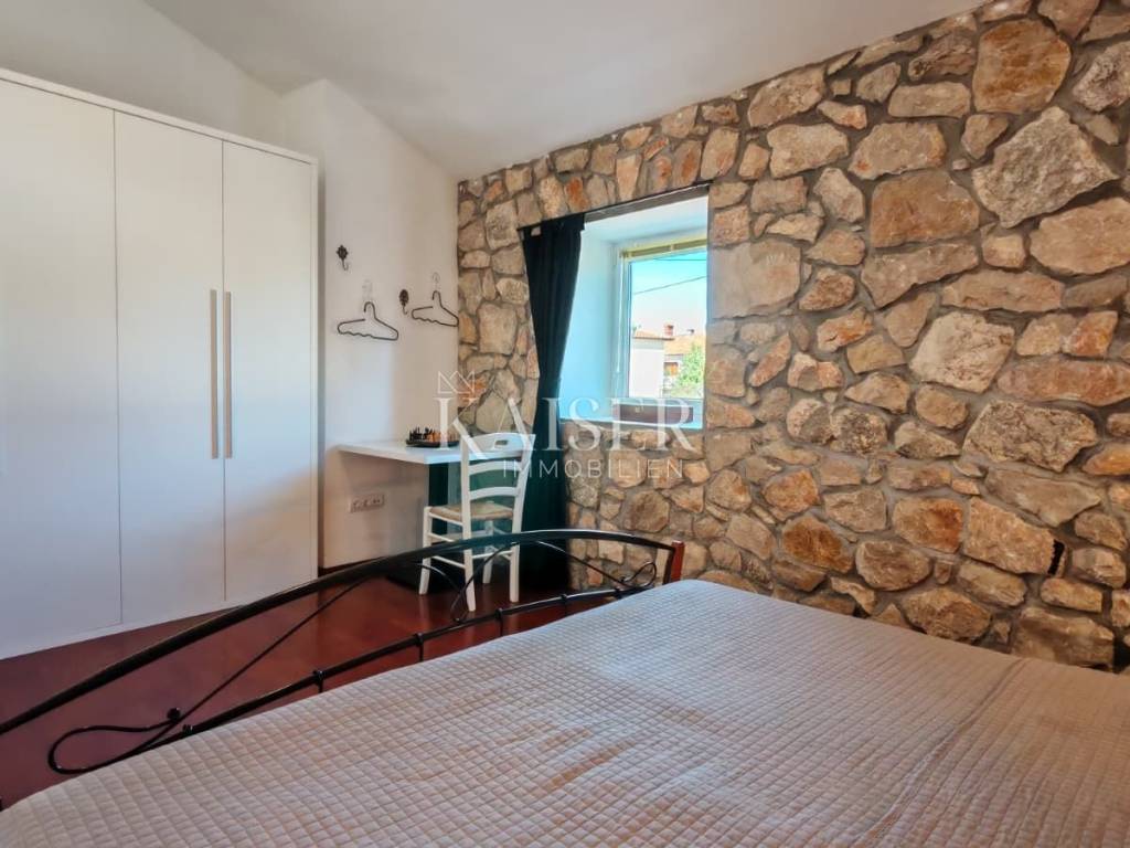 Il comune di Dobrinj si trova nella parte nord-orientale dell'isola di Krk ed è uno dei comuni insulari più antichi, ricco di storia e patrimonio culturale. Il centro del comune, l'omonimo insediamento Dobrinj, è un luogo pittoresco situato su una collina con una splendida vista sul paesaggio circostante. Il comune comprende diversi insediamenti, alcuni dei quali si trovano in riva al mare, come Šilo e Čižići, mentre altri si trovano nell'entroterra dell'isola, circondati da una natura incontaminata. Kaiser Immobilien presenta una graziosa casa in pietra di 105 m², situata su un terreno di 425 m², con piscina e giardino paesaggistico. Questa splendida proprietà si trova in una posizione estremamente tranquilla, in una strada chiusa vicino alla foresta, offrendo la perfetta armonia tra privacy e ambiente naturale. La casa è progettata su due piani, collegati da una scala interna, mentre il piano terra costituisce il cuore della casa. L'ingresso conduce ad un ampio soggiorno, armoniosamente collegato alla sala da pranzo, mentre la moderna cucina si trova in uno spazio separato, ma funzionalmente collegato. La cucina è completamente attrezzata con un nuovo frigorifero Candy, forno e piano cottura Bosch e lavastoviglie, offrendo tutte le condizioni necessarie per un'esperienza culinaria. Su questo piano si trova anche il primo bagno, dotato di doccia e WC, di uno scaldabagno Končar e di una lavatrice Siemens. Una scala interna conduce al primo piano, dove si trovano due spaziose camere da letto e un grande bagno di 7 m². Il bagno è dotato di vasca da bagno e WC, di uno scaldabagno Ariston da 80 litri e di riscaldamento a pavimento che garantisce un comfort particolare. Un ulteriore vantaggio di questo piano è l'accesso ad un'ampia terrazza, ideale per rilassarsi e godersi il silenzio della natura. Le camere sono spaziose e luminose: una si affaccia sul cortile e sul parcheggio, mentre l'altra ha accesso a una terrazza con vista sulla natura e sulla piscina. Dalla sala da pranzo al piano terra si accede ad una terrazza coperta di 10 m², dalla quale si accede direttamente alla piscina di 8 x 4 metri e profonda 1,50 metri, dotata di sistema di nuoto controcorrente. L'intero giardino è dotato di un impianto di irrigazione automatico, garantendo un ambiente esterno sempre pulito e curato. Davanti alla casa c'è un parcheggio per due auto, mentre la zona coperta consente di riporre moto, biciclette o anche di avere un tavolo e delle sedie per godersi l'ombra. Questa casa ha lo status di bene culturale ed è stata completamente ristrutturata nel 2009, con un ampliamento nello stile tradizionale in pietra, secondo le norme della Direzione per la tutela del patrimonio culturale. Le pareti spesse da 40 a 60 centimetri garantiscono un ottimo isolamento, mentre su una parte della casa è installata una facciata. Il tetto è realizzato in lastre di cemento ed è in ottime condizioni. Il riscaldamento della casa è garantito da stufe a legna al piano terra e al piano superiore. Attualmente la casa è dotata di una fossa settica di 3 x 4 metri, che finora non ha avuto bisogno di essere svuotata. Inoltre, l'immobile può essere connesso a una rete internet ottica veloce, che consente di lavorare e comunicare senza interruzioni. Questa graziosa casa in pietra è perfetta per chi cerca una tranquilla casa di famiglia, una casa per le vacanze o un investimento in affitti turistici, poiché la casa è già classificata e viene già affittata. La combinazione di architettura tradizionale, comfort moderni e posizione eccezionale lo rende una vera rarità sul mercato. Vicinanza ai servizi: Malinska: 3 km Negozio: 150 m Ristorante: 1,4 km Spiaggia: 4 km Parco giochi: 100 m Punto panoramico: 600 m Pista ciclabile: 150 m Krk: 14 km Aeroporto: 16 km Dobrinj- Lubiana: 150 km Dobrinj- Budapest: 500 km Dobrinj- Monaco di Baviera: 550 km Dobrinj- Vienna: 520 km Dobrinj- Praga: 850 km La commissione d'agenzia per l'acquirente è del 3% + IVA e viene pagata in caso di acquisto di un immobile, al momento della conclusione del primo atto legale. Gli acquirenti interessati potranno visionare l'immobile solo dopo aver firmato un contratto di intermediazione immobiliare. CODICE ID: 127-082 Se desideri visitare personalmente la proprietà, contatta: Jennifer Hofmann E-mail: jennifer@kaiser-immobilien.hr Tel: +385-91-515-0887 http://kaiser-immobilien.hr/
