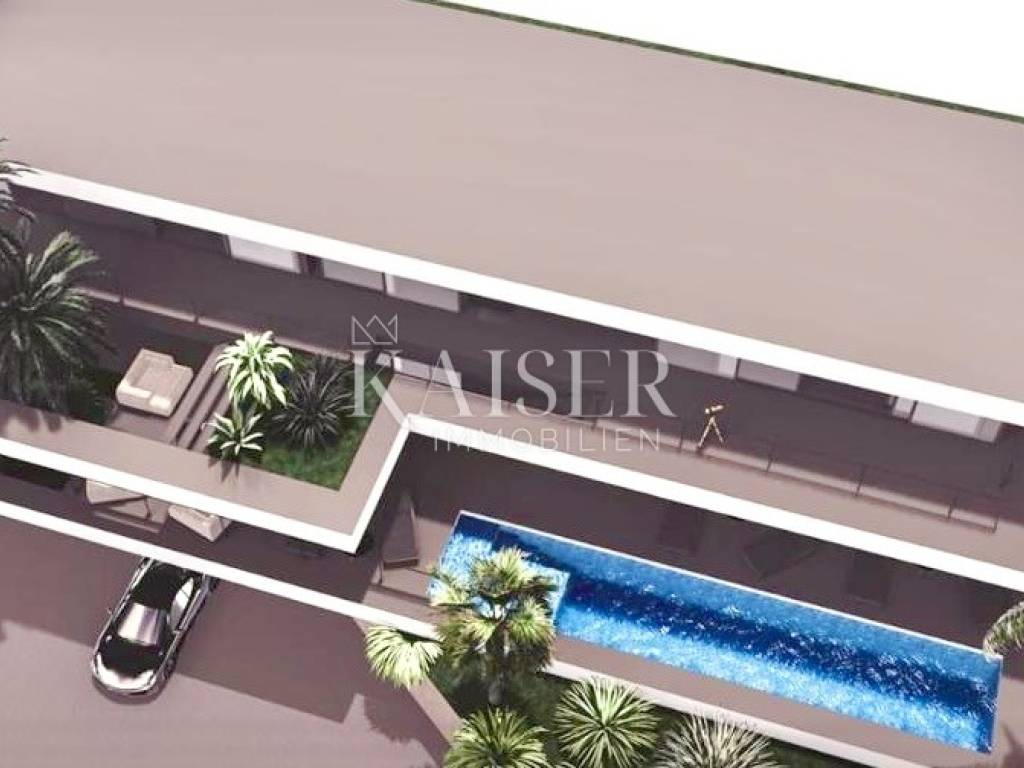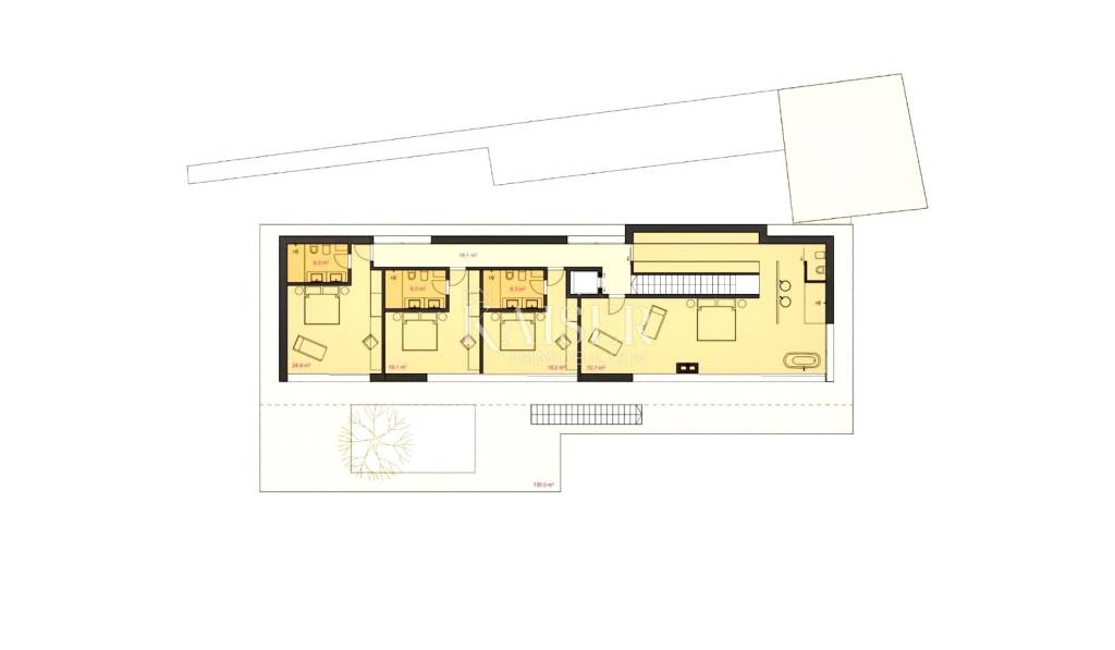 Il profilo del terreno circostante è relativamente ripido, il che garantisce alla futura villa una vista panoramica aperta. In primo piano si trova il centro di Abbazia, in particolare la sua parte più bella, da Lido a Slatina, e poi l'intera Riviera a sud con le isole del Quarnero.