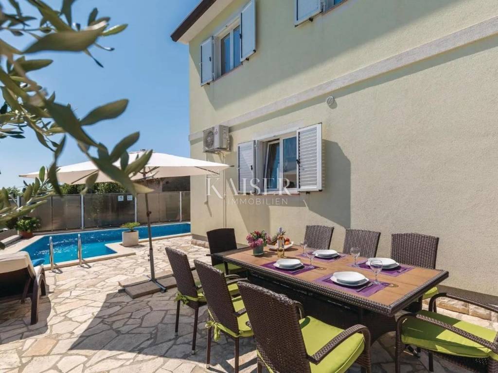 Kaiser Immobilien presenta una casa indipendente con piscina e vista mare. In vendita una casa ben progettata su due piani con una superficie abitabile totale di 199 m², situata su un terreno paesaggistico e completamente recintato di 678 m². La proprietà è composta da due unità abitative separate, ideali per la vita familiare, le vacanze o come investimento in affitto turistico. L'unità abitativa più piccola si sviluppa su due piani. Al piano terra si trova un ampio soggiorno collegato alla sala da pranzo e alla cucina, e un bagno. Al primo piano si trovano due comode camere da letto con accesso a un balcone. L'unità abitativa più grande è anch'essa composta da un piano terra e un piano superiore. Al piano terra si trova un soggiorno con sala da pranzo, una cucina con dispensa e un bagno. Al primo piano si trovano due camere da letto, un bagno in comune e un balcone con una splendida vista sul mare e sulla natura circostante. Entrambe le unità sono collegate da un'area comune per la socializzazione, che comprende una taverna tradizionale con camino e un'area per l'intrattenimento e la socializzazione. Offre inoltre una piscina di 27 m² con area solarium. Il cortile è completamente recintato e offre parcheggio per diverse auto. È progettato per rendere la manutenzione il più semplice possibile. La proprietà si trova sulla penisola di Skitača, a soli 700 metri dal mare e dalle prime spiagge. La posizione offre numerose spiagge e calette selvagge, sentieri escursionistici e montani e punti panoramici con vista sull'intero Quarnero. Il centro di Albona è raggiungibile in 15 minuti di auto, dove troverete tutti i servizi necessari e varie attività. Per ulteriori informazioni, contattare l'agente. Mario Pintar +385 91 5432 750 mario@kaiser-immobilien.hr