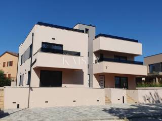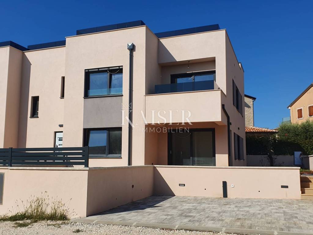 Splendidi appartamenti in un nuovo edificio - una posizione prestigiosa a Parenzo Kaiser Immobilien propone in vendita appartamenti di lusso in un moderno edificio di nuova costruzione, situato in una delle zone più ambite e prestigiose di Parenzo. Il progetto comprende due eleganti edifici, ciascuno con un totale di quattro unità abitative, accuratamente progettati per offrire comfort, funzionalità e alta qualità della vita. Gli edifici si trovano in una zona tranquilla e di nuova costruzione del villaggio, circondata da nuovi edifici e infrastrutture moderne, il che rende questa posizione particolarmente attraente sia per la vita familiare che per gli investimenti in affitti turistici. Disposizione degli appartamenti negli edifici Gli appartamenti al piano terra dispongono di giardini privati che offrono privacy e la possibilità di godersi l'aria aperta. Gli appartamenti al primo piano dispongono di ampie terrazze sul tetto, ideali per rilassarsi o socializzare con vista sui dintorni. Appartamento B - PIANO In vendita l'appartamento B, situato al primo piano. Superficie appartamento: 137 m² netti Posti auto: 2 posti auto privati Disposizione degli spazi: - ampio corridoio, - tre camere da letto, - due bagni con WC, - cantina/ripostiglio, - due scale, - due terrazze, una terrazza sul tetto verde Qualità della costruzione e delle attrezzature: L'appartamento sarà dotato dei più alti standard: - riscaldamento a pavimento tramite pompa di calore, - prima fase di aria condizionata installata, - parquet di alta qualità in soggiorno e camere da letto, - piastrelle in ceramica di alta qualità in bagni e cucina. Questo appartamento al primo piano rappresenta la perfetta combinazione di design moderno, praticità e lusso. Grazie alla sua posizione tranquilla e alla vicinanza a tutti i servizi, è ideale come casa di famiglia o come investimento con un grande potenziale per l'affitto a lungo termine e turistico. Con l'acquisto di questo appartamento, l'acquirente non paga l'imposta sul trasferimento immobiliare. Gentili clienti, è possibile visionare l'immobile solo con un contratto di mediazione firmato, che costituisce la base per ulteriori azioni relative all'acquisto e alla vendita e per la riscossione delle provvigioni, il tutto in conformità con la legge sull'intermediazione immobiliare. L'agenzia KAISER IMMOBILIEN, in qualità di agente immobiliare autorizzato, addebita all'acquirente e al venditore una commissione di intermediazione del 3% + IVA al momento della stipula del Contratto Preliminare o del Contratto di Compravendita. Telefono: 00385923782803 Indirizzo e-mail: ivana@kaiser-immobilien.hr. Venditore: Ivana Gašparini.