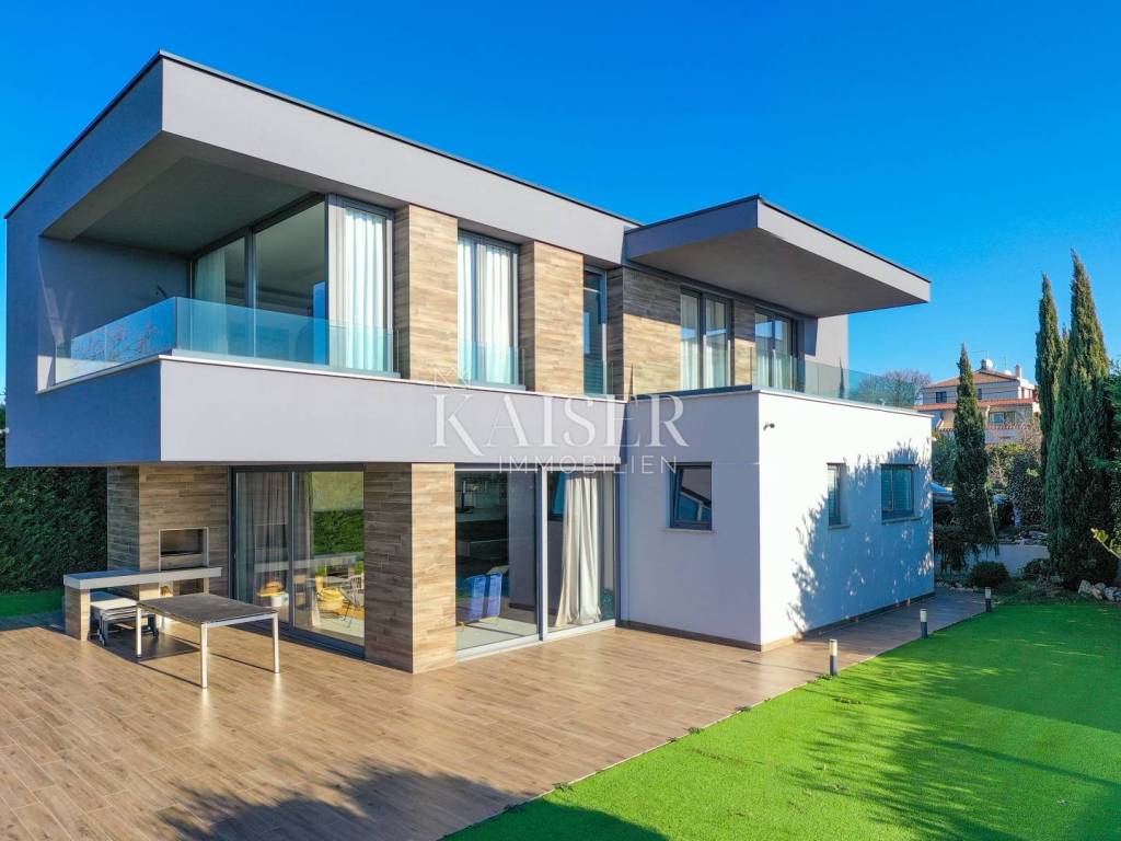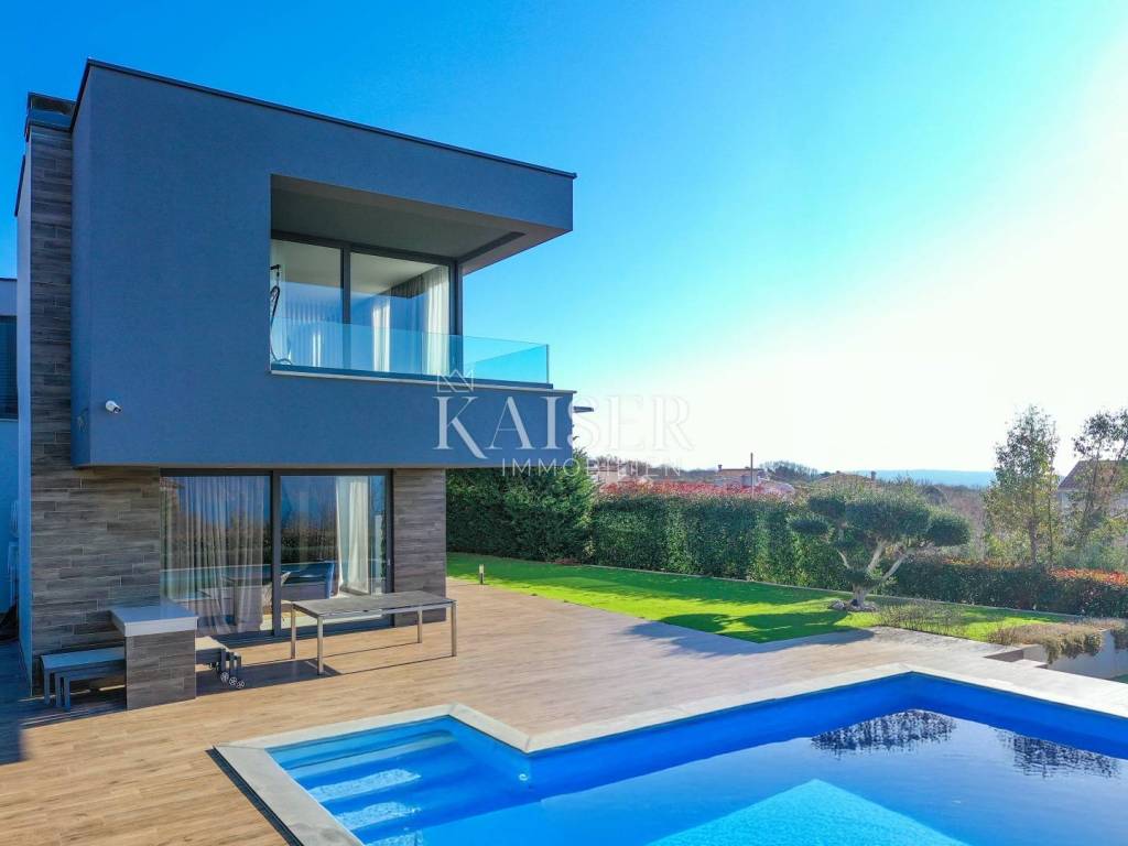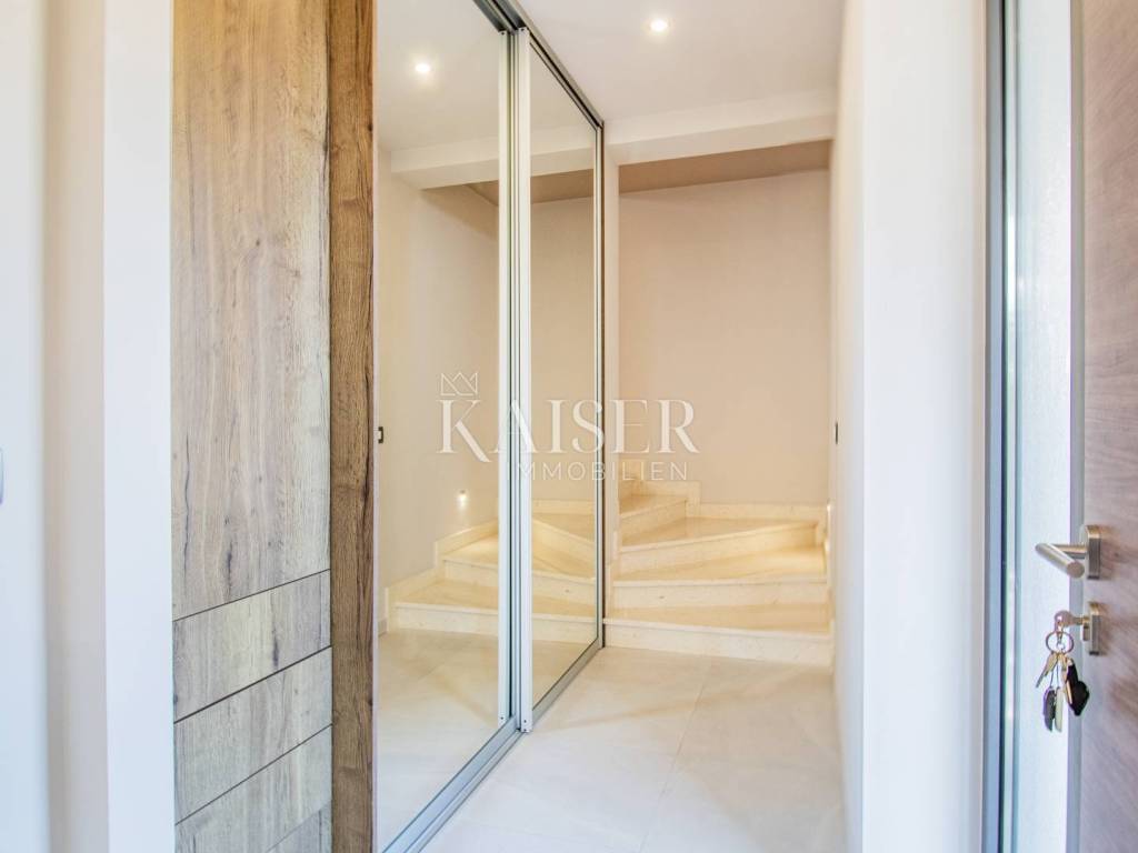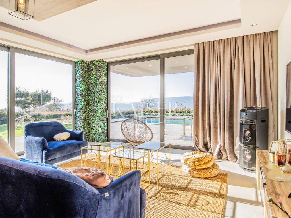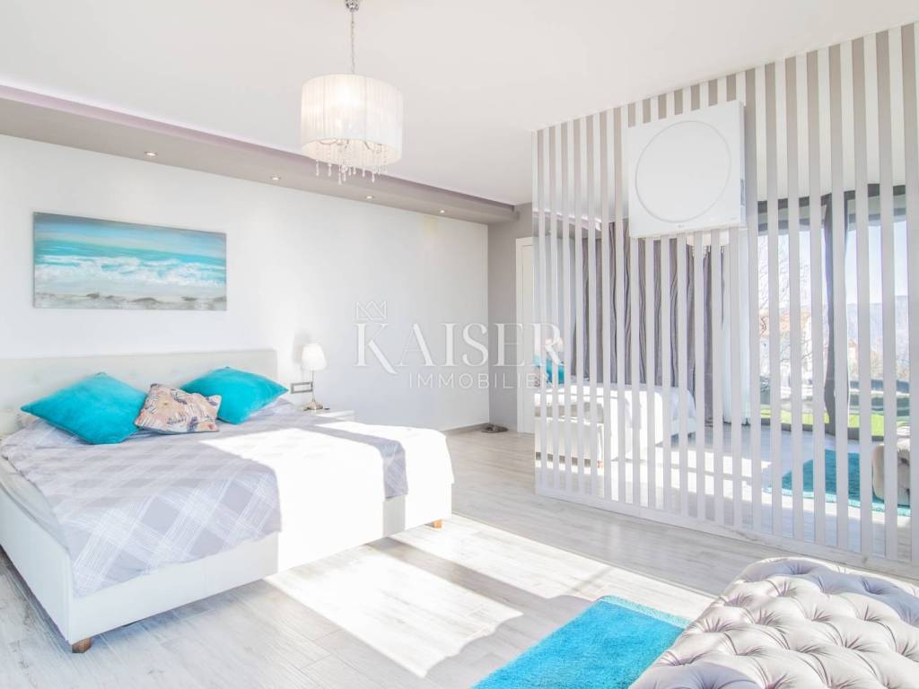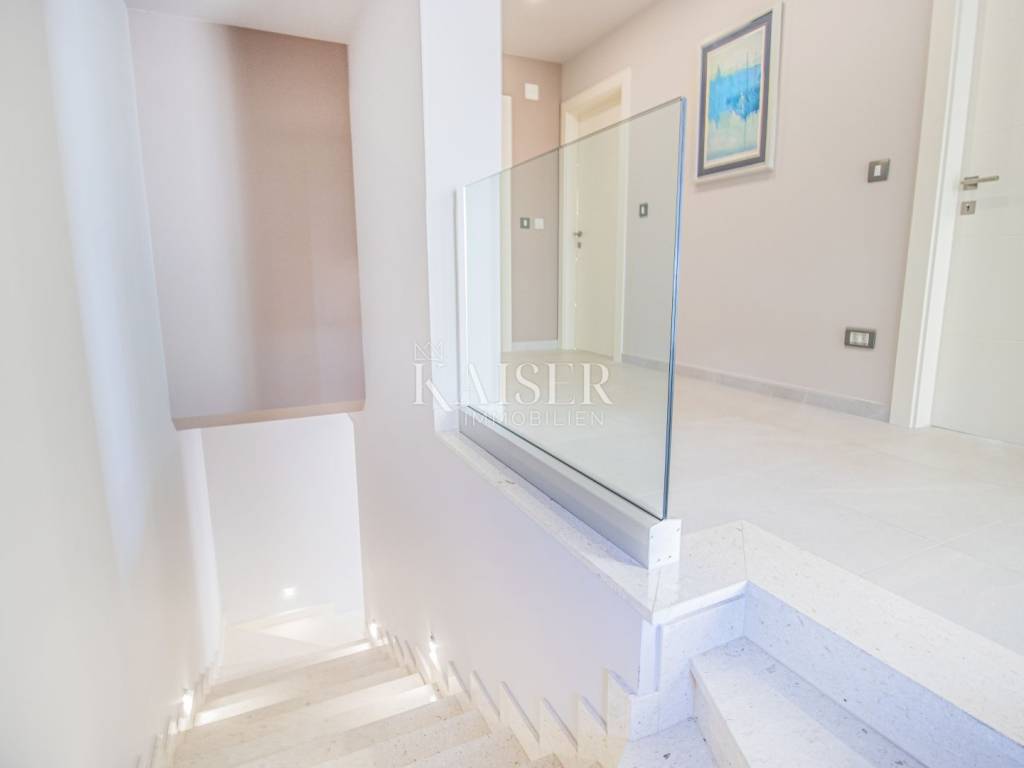 Kaiser immobilien è mediatore nella vendita di splendide ville moderne in una posizione eccezionale vicino alla città di Krk. La posizione vicino a uliveti secolari, l'orientamento a sud e la vista panoramica sul mare di questa lussuosa proprietà vi incanteranno. La villa ha una superficie lorda abitabile complessiva di 185 m2 ed è suddivisa in due piani. Al piano terra, il corridoio conduce a uno spazioso "open space" che comprende soggiorno, cucina e sala da pranzo, con accesso a una terrazza coperta che enfatizza ulteriormente la vista panoramica sul mare dal piano terra di questa proprietà. Nel complesso, si tratta di uno spazio abitativo eccezionalmente arioso, soleggiato, piacevole e spazioso, con un camino esterno e un barbecue sulla terrazza. Al piano terra si trovano anche una camera da letto con bagno privato, un ripostiglio e un bagno per gli ospiti. Una scala interna conduce al primo piano, composto da un disimpegno, tre camere da letto e due bagni; tutte le stanze hanno accesso a terrazze coperte con una splendida vista sul mare e sulle isole. L'arredamento e la costruzione di questa proprietà sono di prima classe e tutte le attrezzature e i materiali utilizzati sono di altissima qualità. La struttura è dotata di riscaldamento a pavimento e tutte le stanze sono dotate di aria condizionata inverter. Nel giardino paesaggistico si trova una piscina di 40 m² con zona solarium e un parcheggio pavimentato. La provvigione dell'agenzia per l'acquirente è pari al 3% + IVA e viene corrisposta, in caso di acquisto di un immobile, alla conclusione del primo atto legale. CODICE ID 105-282