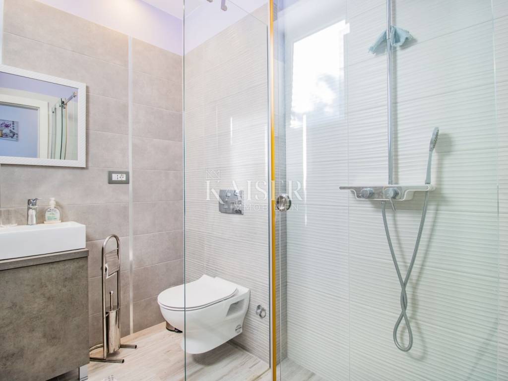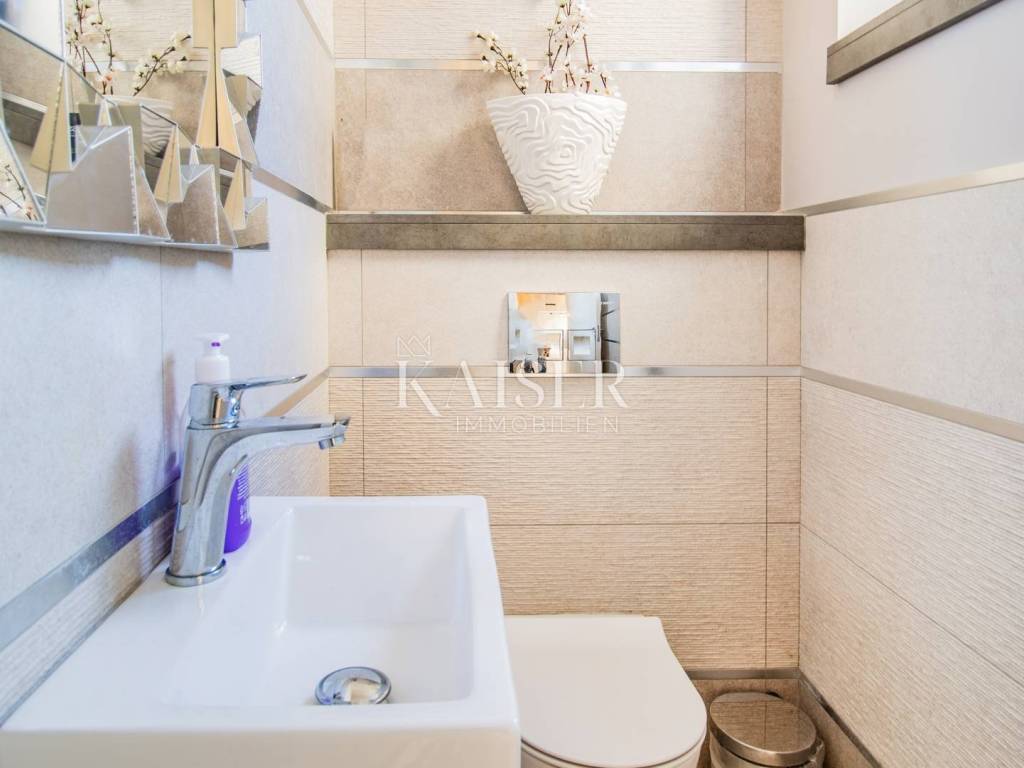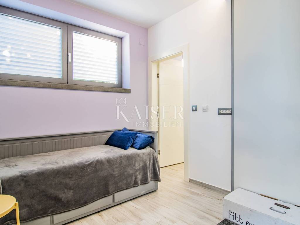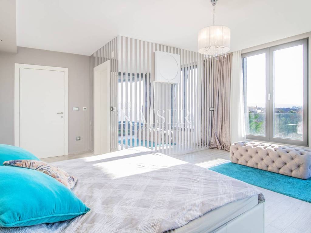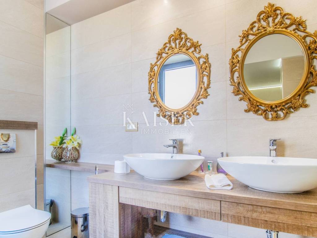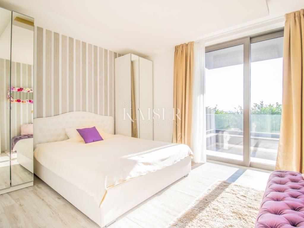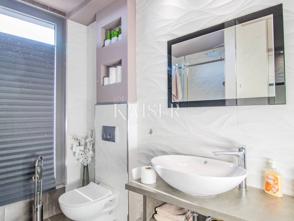 Kaiser immobilien è mediatore nella vendita di splendide ville moderne in una posizione eccezionale vicino alla città di Krk. La posizione vicino a uliveti secolari, l'orientamento a sud e la vista panoramica sul mare di questa lussuosa proprietà vi incanteranno. La villa ha una superficie lorda abitabile complessiva di 185 m2 ed è suddivisa in due piani. Al piano terra, il corridoio conduce a uno spazioso "open space" che comprende soggiorno, cucina e sala da pranzo, con accesso a una terrazza coperta che enfatizza ulteriormente la vista panoramica sul mare dal piano terra di questa proprietà. Nel complesso, si tratta di uno spazio abitativo eccezionalmente arioso, soleggiato, piacevole e spazioso, con un camino esterno e un barbecue sulla terrazza. Al piano terra si trovano anche una camera da letto con bagno privato, un ripostiglio e un bagno per gli ospiti. Una scala interna conduce al primo piano, composto da un disimpegno, tre camere da letto e due bagni; tutte le stanze hanno accesso a terrazze coperte con una splendida vista sul mare e sulle isole. L'arredamento e la costruzione di questa proprietà sono di prima classe e tutte le attrezzature e i materiali utilizzati sono di altissima qualità. La struttura è dotata di riscaldamento a pavimento e tutte le stanze sono dotate di aria condizionata inverter. Nel giardino paesaggistico si trova una piscina di 40 m² con zona solarium e un parcheggio pavimentato. La provvigione dell'agenzia per l'acquirente è pari al 3% + IVA e viene corrisposta, in caso di acquisto di un immobile, alla conclusione del primo atto legale. CODICE ID 105-282