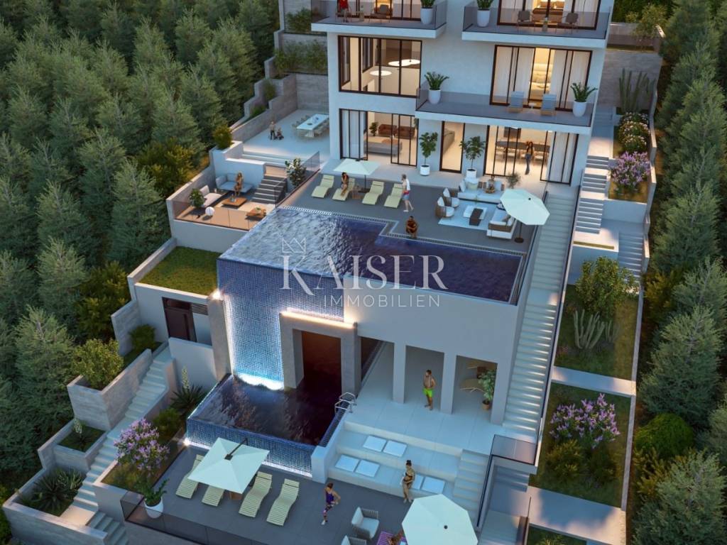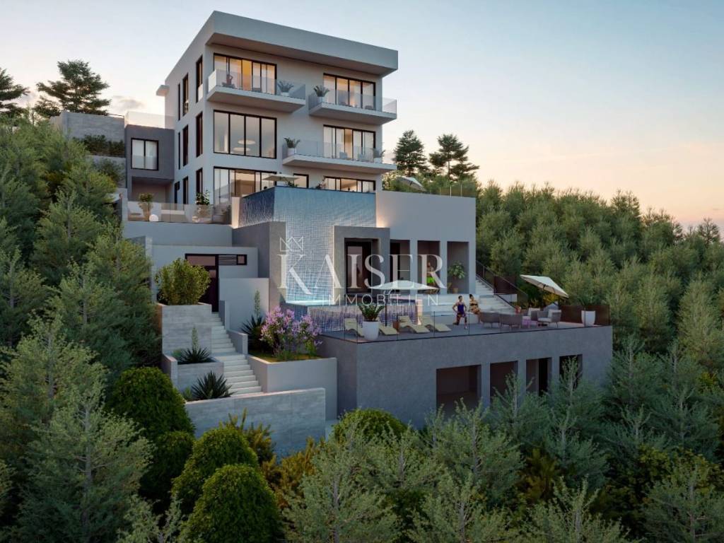 L'agenzia immobiliare Kaiser immobilien di Abbazia offre sul mercato un terreno estremamente attraente con una superficie totale di 1.686 m², situato in una posizione eccezionalmente tranquilla, con un'ottima esposizione a sud-est e una vista davvero fantastica sul mare, a soli 750 metri in linea d'aria.