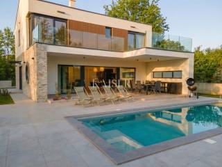 Kaiser Immobilien presenta un'opportunità unica nella tranquilla zona di Labin, a pochi minuti di auto dalla prima spiaggia. È in vendita una villa indipendente modernamente arredata con una superficie abitabile totale di 218 m², situata su un terreno di 600 m², completamente recintato e curato nei dettagli. Questo nuovo edificio combina design contemporaneo, comfort e funzionalità, creando l'ambiente perfetto per la vita familiare, le vacanze o gli affitti turistici. La villa si sviluppa su due piani ed è composta da quattro ampie camere da letto, ciascuna con il proprio bagno. Al piano terra si trova un ampio soggiorno collegato alla cucina e alla sala da pranzo, con un ulteriore bagno di servizio. Ha inoltre accesso a una terrazza coperta con cucina estiva, solarium e piscina (37 m²), un luogo ideale per rilassarsi e socializzare nelle giornate calde. Viene venduta completamente attrezzata e arredata, con mobili accuratamente selezionati e attrezzature di qualità sia all'interno che all'esterno. Inoltre, è dotata di un sistema di ventilazione con ventilazione, riscaldamento a pavimento nei bagni, condizionatori d'aria in ogni stanza e una canna fumaria che consente il riscaldamento tramite camino o stufa. Le pareti sono inoltre isolate con uno strato di lana di vetro, che contribuisce a migliorare il comfort termico e acustico. Il cortile è curato e recintato, con spazio sufficiente per diversi posti auto, mentre la posizione della proprietà offre una splendida vista sul Parco Naturale del Monte Maggiore. La villa si trova a soli 15 minuti di auto dal mare e dalle spiagge di Rabac, offrendo la perfetta combinazione di pace, privacy e vicinanza a tutti i servizi necessari. Il centro di Albona è a soli dieci minuti di auto. Per ulteriori informazioni, contattare l'agente. Mario Pintar mario@kaiser-immobilien.hr +385 91 543 2750