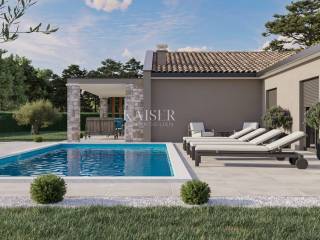 Kaiser Immobilien presenta: Pisino, Rakotule - Terreno edificabile con progetto per una casa con piscina In vendita interessante terreno con progetto e permesso di costruire a Močitad (Rakotule), situato nello splendido paesaggio istriano, vicino a Pisino. Il terreno è costituito da due lotti, di cui il lotto edificabile è di 1446 m2. È stato realizzato un progetto per una casa unifamiliare con una superficie lorda di 252 m2. L'acqua è a 150 metri di distanza, mentre l'elettricità è nelle vicinanze. Le utenze e il contributo per l'acqua sono stati pagati. La casa è stata progettata ponendo l'accento sul comfort e sull'autenticità dell'architettura istriana. Nel soggiorno, vicino al muro della terrazza, si trova un camino incassato con doppia canna fumaria, dotato anche di un camino all'esterno della terrazza. La parete frontale, dove si trova la porta d'ingresso, sarebbe rivestita in pietra, mentre la terrazza avrebbe travi in legno. Le camere sono dotate di porte-finestre che consentono l'accesso diretto alla piscina, creando una perfetta connessione tra l'interno e l'esterno. Il riscaldamento e il raffreddamento sono garantiti tramite pompe di calore, garantendo efficienza energetica e comfort durante tutto l'anno. Il terreno si trova nel cuore dell'Istria, con ottimi collegamenti di trasporto: Pisino: 15 km Parenzo: 25 km Cittanova: 30 km Rovigno: 45 km Pola (aeroporto): 65 km La distanza dal mare è di circa 25 km, mentre nelle immediate vicinanze ci sono numerose attrazioni di Rakotuli, come cantine vinicole, tradizionali taverne istriane, siti storici e bellissimi sentieri escursionistici e ciclabili. Questa proprietà offre l'opportunità perfetta per coloro che cercano un ambiente istriano tranquillo e autentico, con tutti i comfort della vita moderna. Per qualsiasi informazione e visita, contattateci con fiducia. Telefono: 00385992510230 E-mail: marijana.papic@kaiser-immobilien.hr
