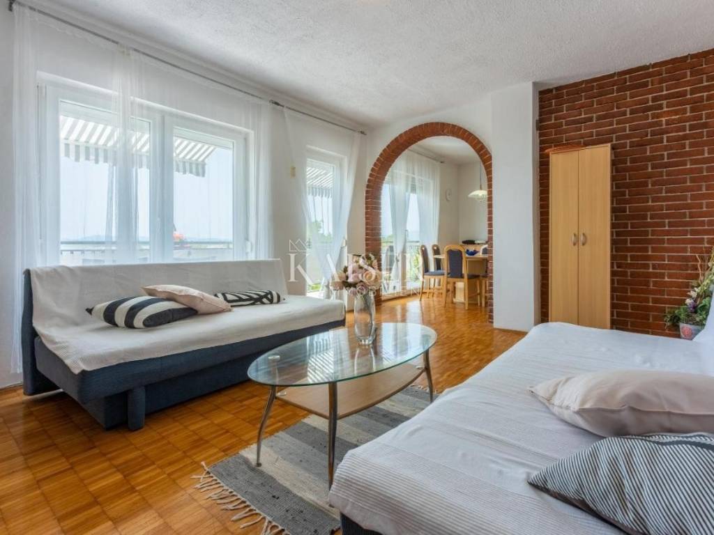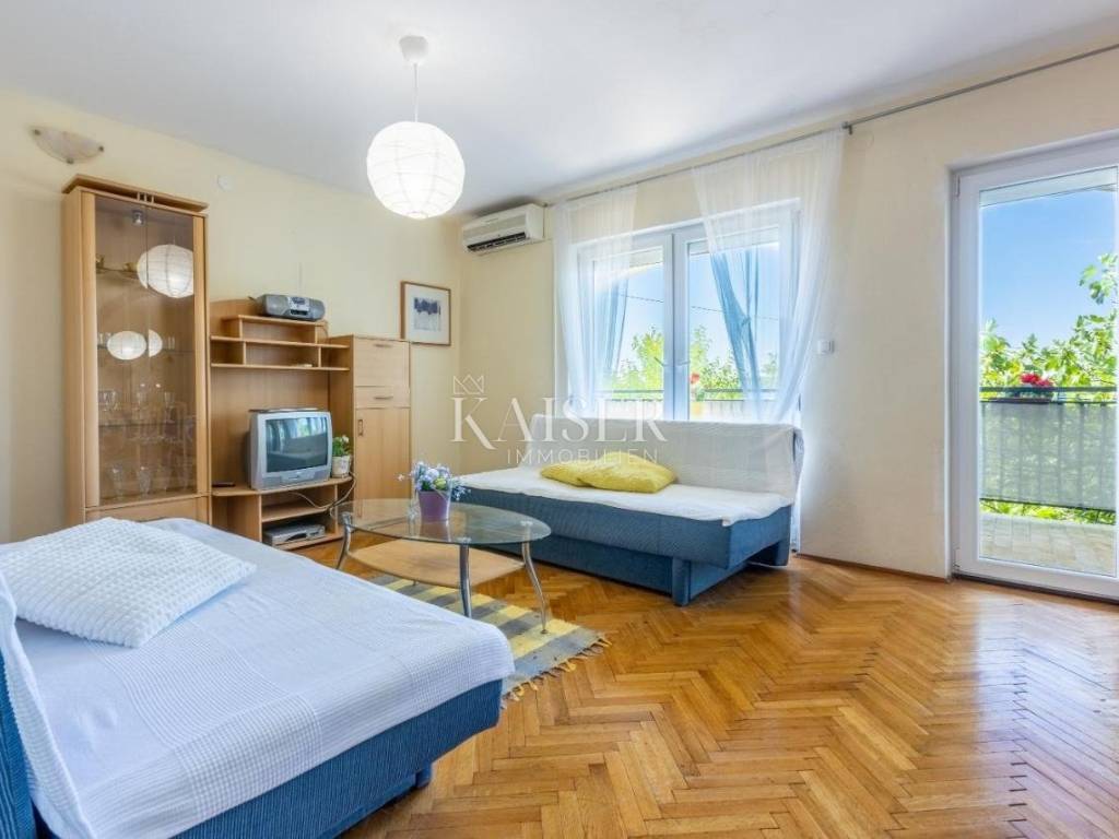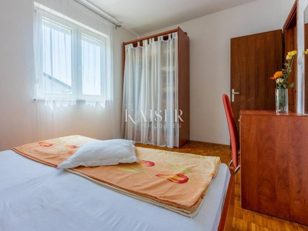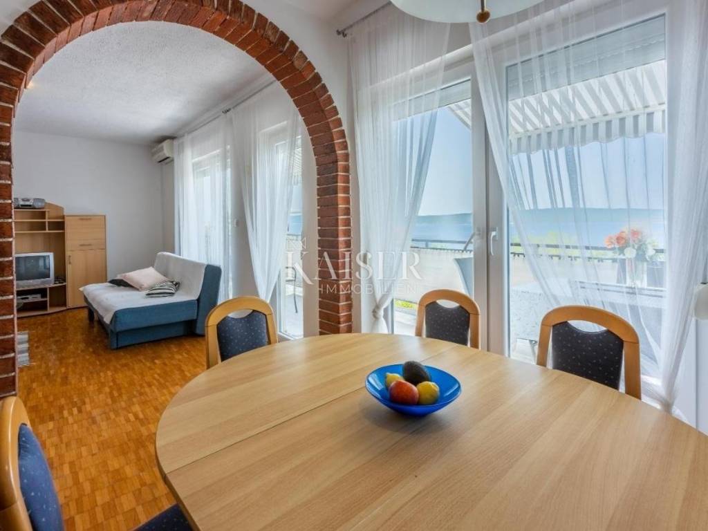 SOLO CON NOI! Kaiser Immobilien presenta un bellissimo appartamento con due camere da letto a Dramalj, Crikvenica. L'appartamento si trova al secondo piano ed è composto da ingresso, due camere da letto, bagno, cucina con sala da pranzo, ampio soggiorno con accesso a una terrazza semi-coperta di 8,46 m² con vista mare. L'appartamento ha una superficie abitabile totale di 62,95 m². L'appartamento dispone di un condizionatore d'aria in soggiorno. L'appartamento ha finestre in PVC, ma l'interno dell'appartamento necessita di ristrutturazione. Nel seminterrato si trova un garage di 22 m² come posto auto, dotato di elettricità e acqua. L'edificio ha un totale di 5 unità abitative. L'esterno dell'immobile non ha una facciata, ma si sta valutando la riqualificazione energetica. Gli appartamenti sono collegati da una scala esterna. L'immobile si trova in prima fila sul mare e di fronte si trova un bosco che rientra nel demanio marittimo e non è edificabile. Il mare è a 80 m in linea d'aria, ma bisogna fare una deviazione e camminare per circa 200-300 m. Immobile adatto per vivere o affittare per turismo! Distanze dalla proprietà: Bribir - 4 km Novi Vinodolski - 7 km Fiume - 35 km Zagabria - 160 km Mare - 200 m Centro di Crikvenica - 1 km Per qualsiasi domanda, si prega di contattare l'agente: Davor Piškulić davor@kaiser-immobilien.hr +00 385 95 583 8240 WhatsApp, Viber