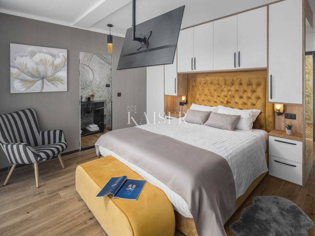 Questa imponente villa si trova in una zona tranquilla di Funtana, vicino al mare, a negozi e ristoranti, offrendo il perfetto equilibrio tra privacy e praticità. La proprietà è stata progettata con cura per combinare interni lussuosi, funzionalità e materiali di alta qualità, offrendo tutto il necessario per una vita confortevole o una vacanza esclusiva.